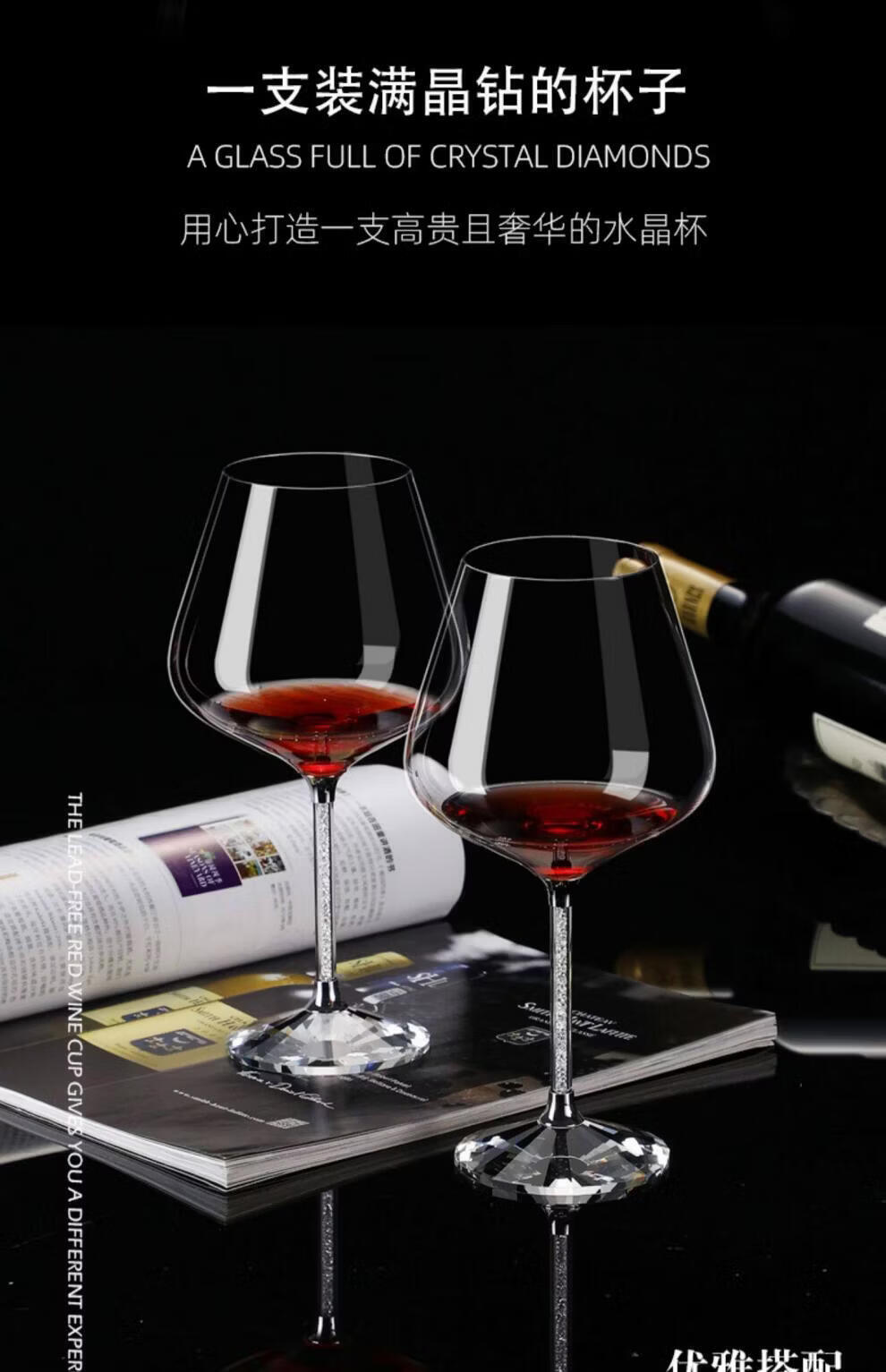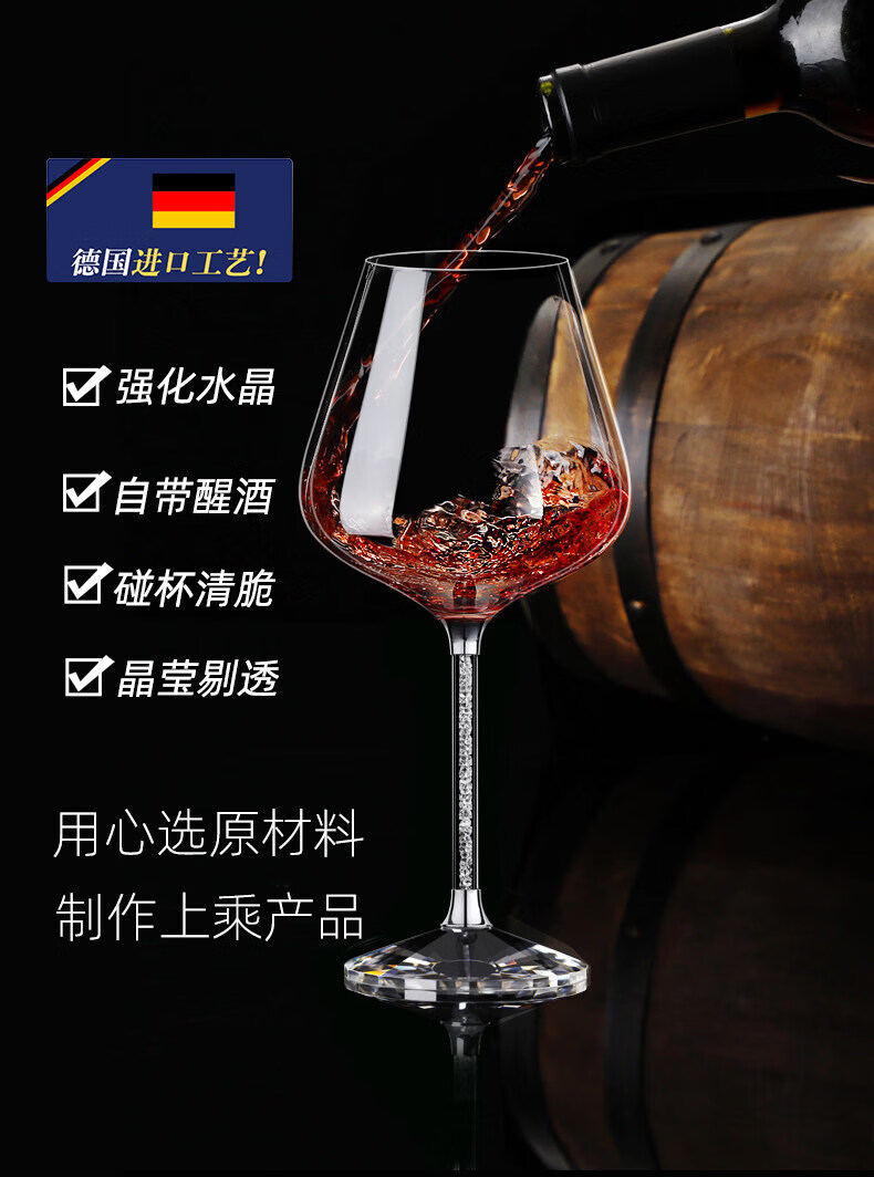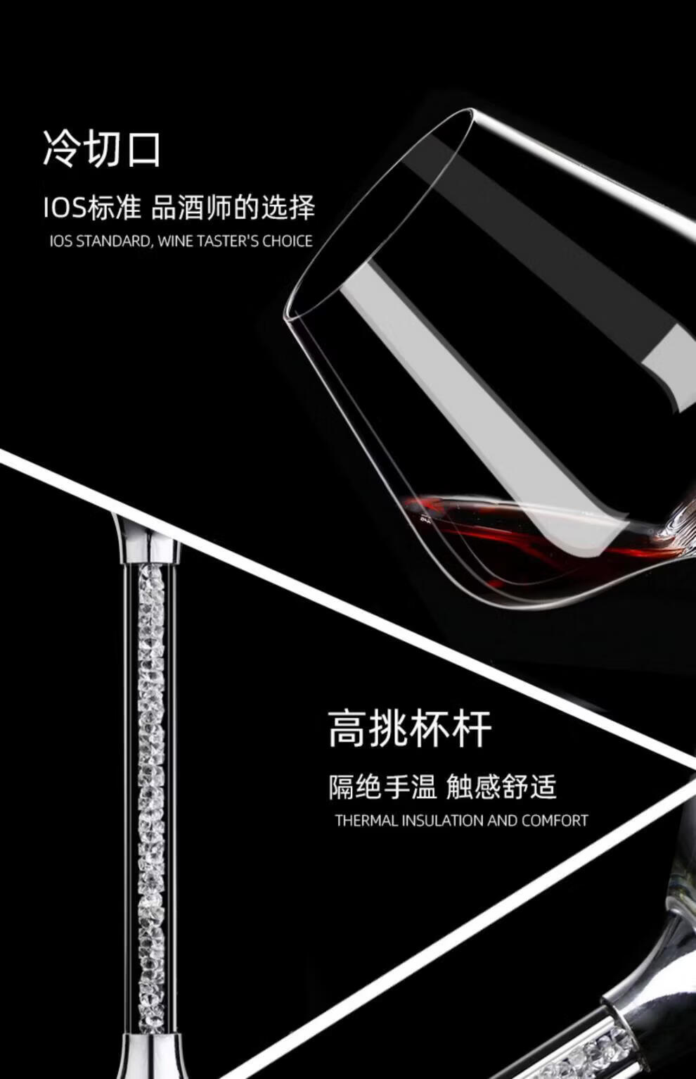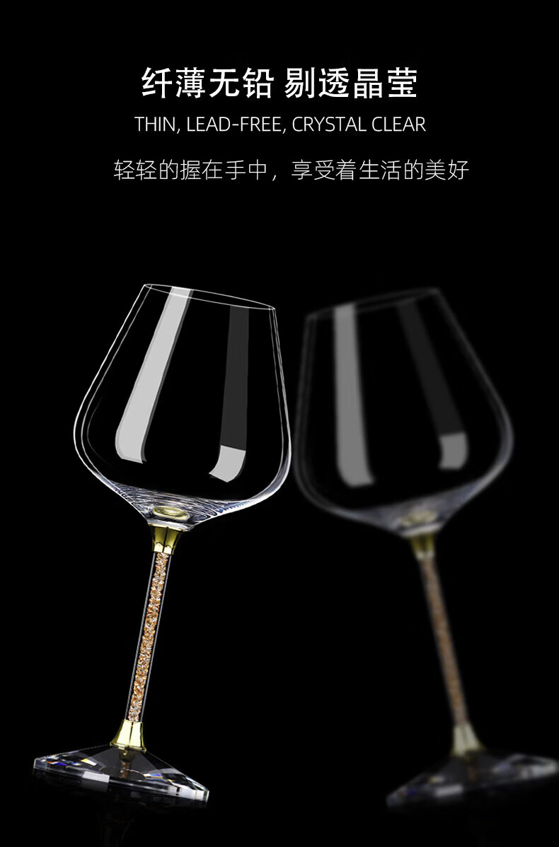 Goli Creative Crystal Glass Gold Foil Red Wine Glass Diamond Wine Glass Burgundy Goblet Wine Set 6 white diamond 600ml red wine glasses + U-shaped decanter + cup holder