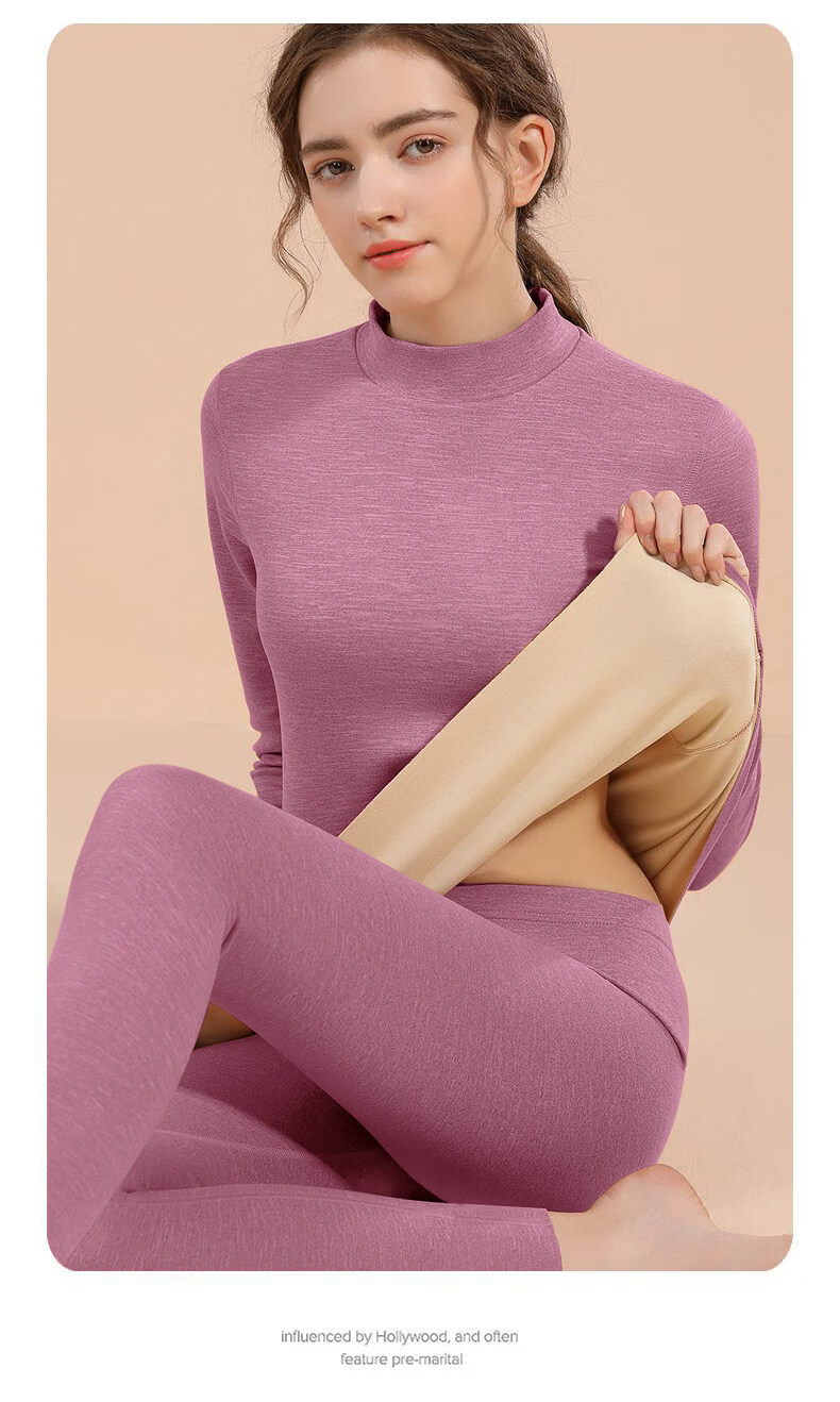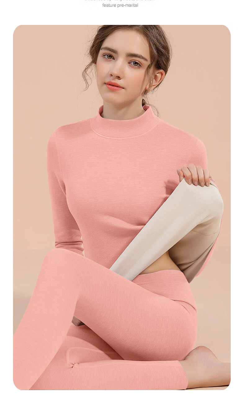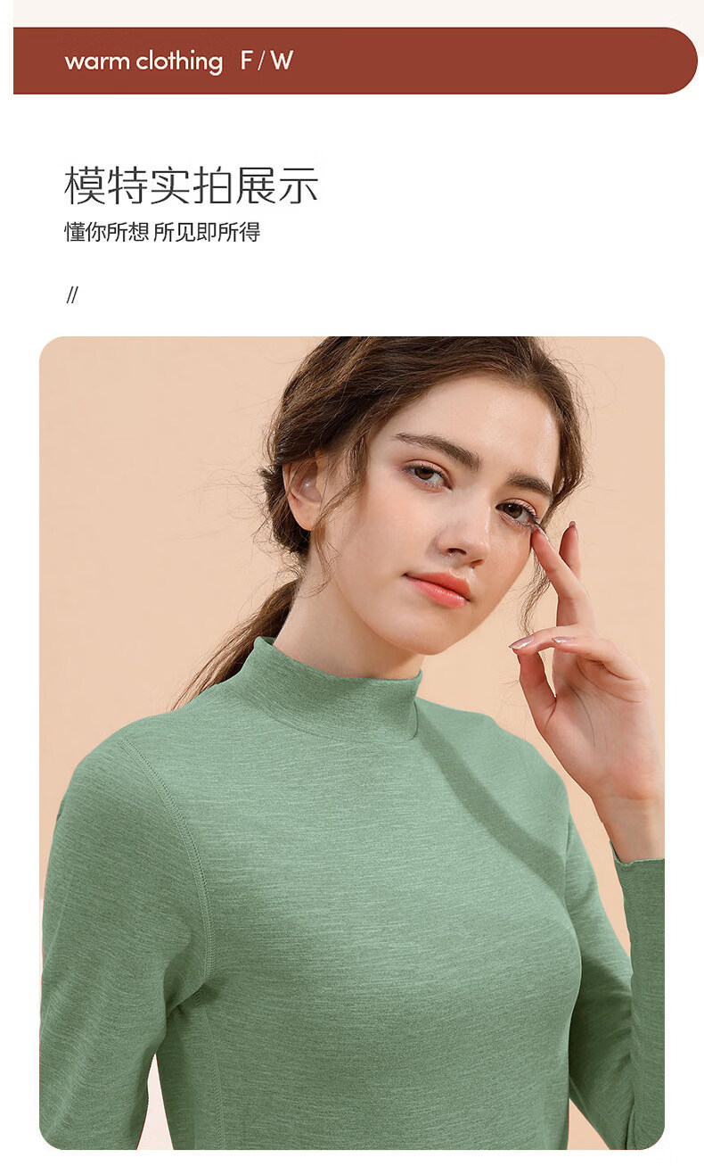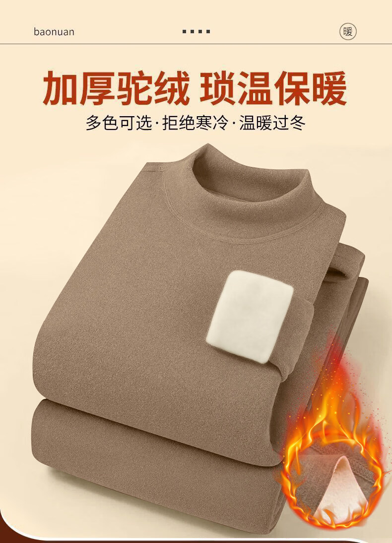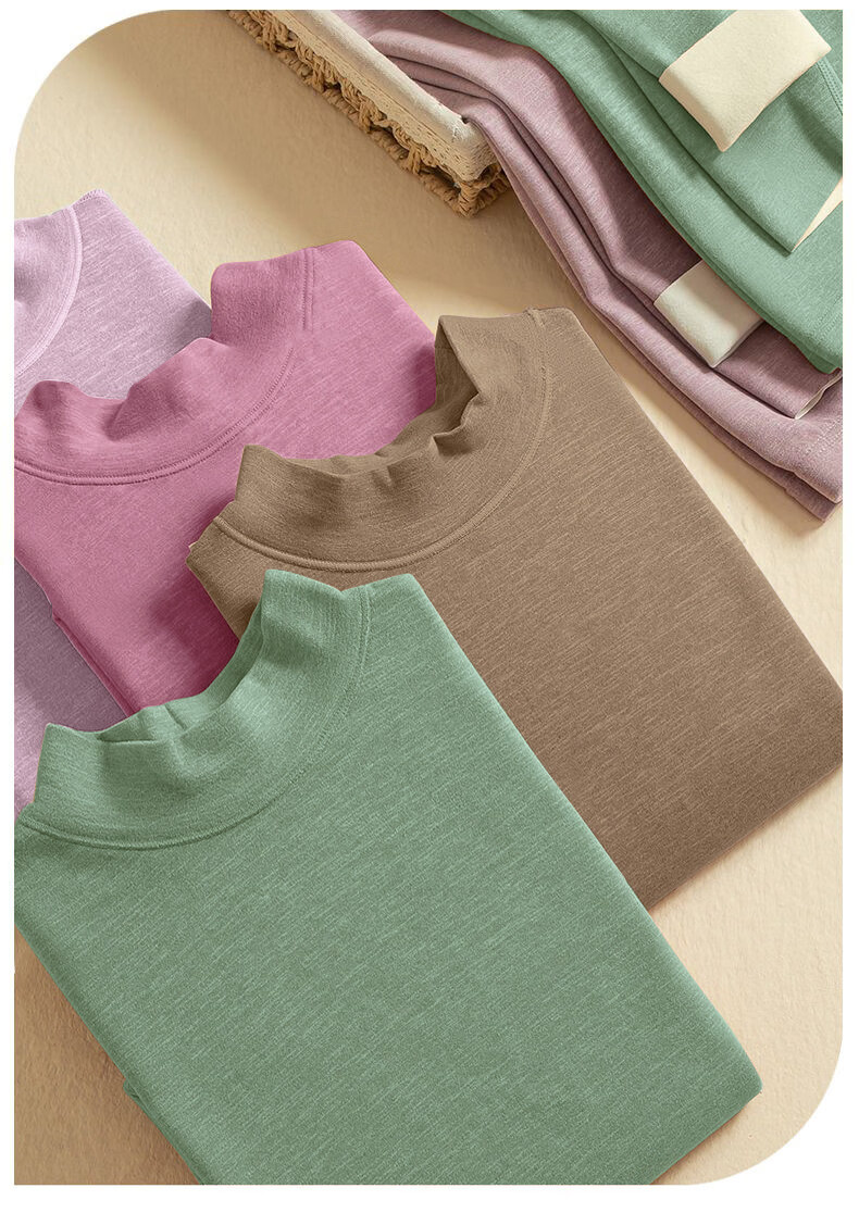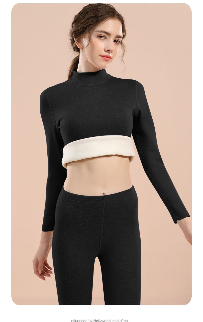 Yalu mid-high collar warm and close-fitting women's thickened velvet double-sided German velvet middle-aged and elderly autumn clothing and trousers inner wear bottom shirt anti-brand black Z1095 top 2XL recommended 130-145Jin Jin equals 0.5 kg