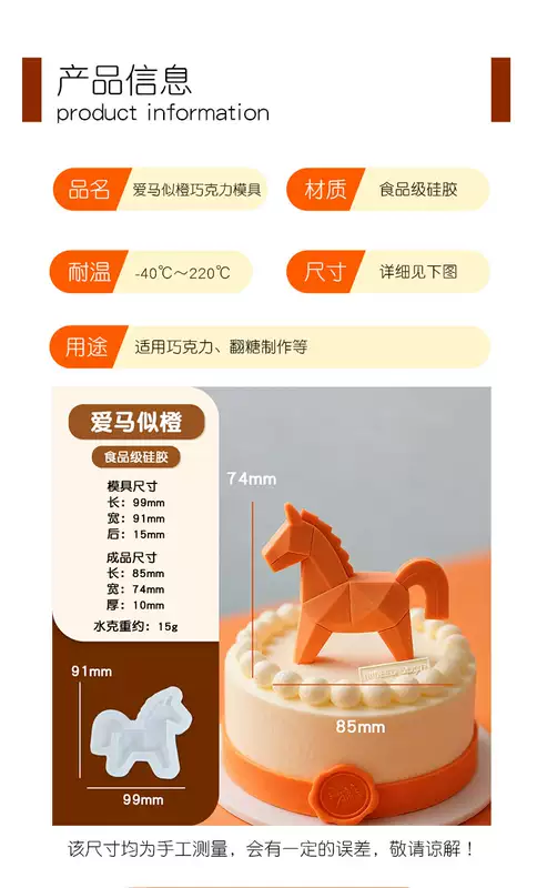 Yusen Recalls the Year of the Horse Mold Geometric Pony Silicone Chocolate New Year Cake Baking Ornament Insert Decorative Food Grade Abrasive Tool 1 Style 1 1g