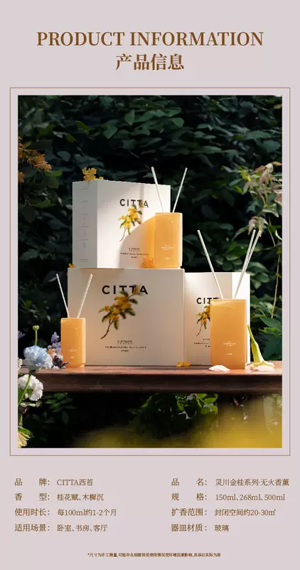Yusenyi New Product Launch CITTA Western Moss Lingchuan Golden Osmanthus Fireless Aromatherapy Osmanthus Fragrance Home Indoor Premium Gift Osmanthus Fu 150ml Osmanthus Fu 150ml