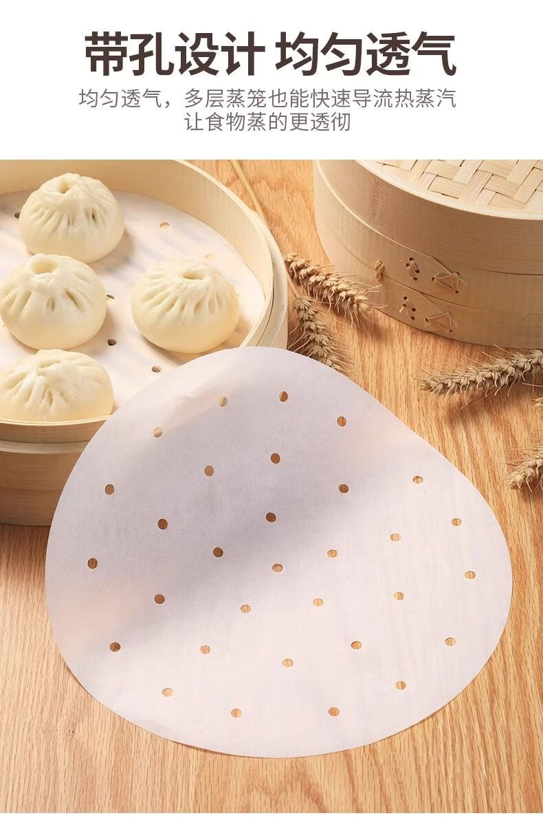 Fantasy steamer paper steamed buns steamer pad paper steamer cloth steamed bun oil paper pad non-stick large quantity and good price diameter 34cm 500 sheets