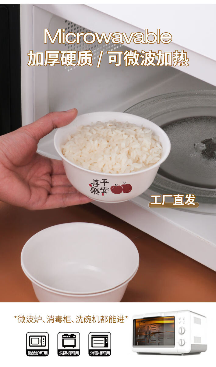 Fantasy Bowl Rice Bowl Hard Tableware Set Housewarming Tableware Small Bowl Peaceful Joy 350ml White Bowl 500 + Carbonized Chopsticks 500