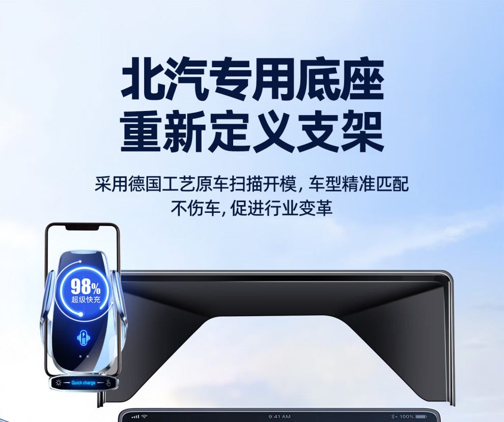 Bozi is suitable for Beijing off-road BJ40e extended range special car mobile phone holder wireless charger navigation fixed support a21-24 Beijing bj40 (10.25 inches) smart phone