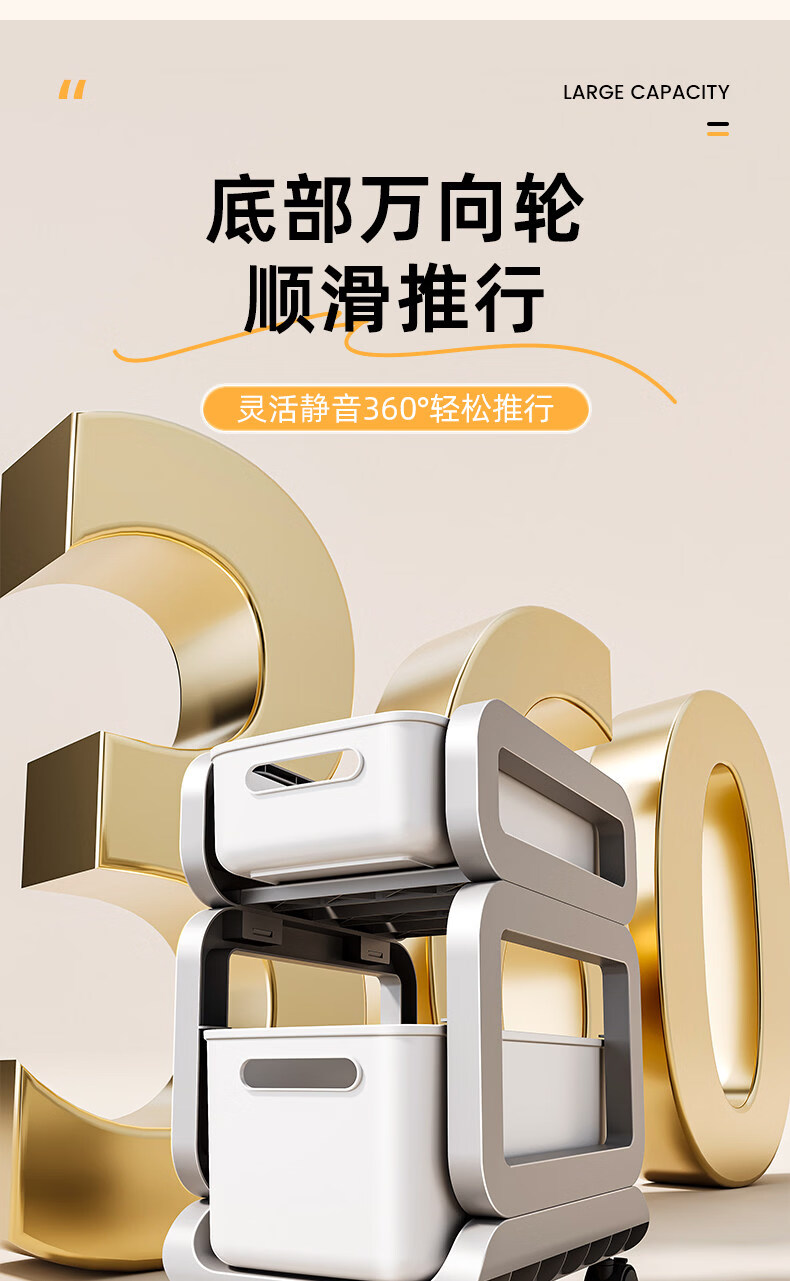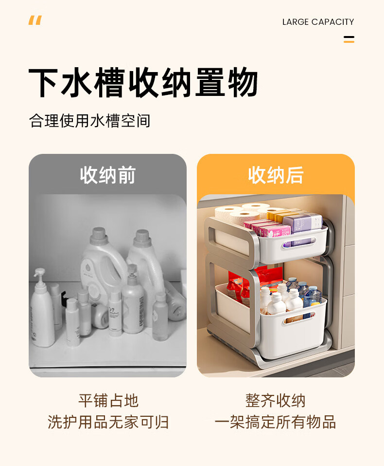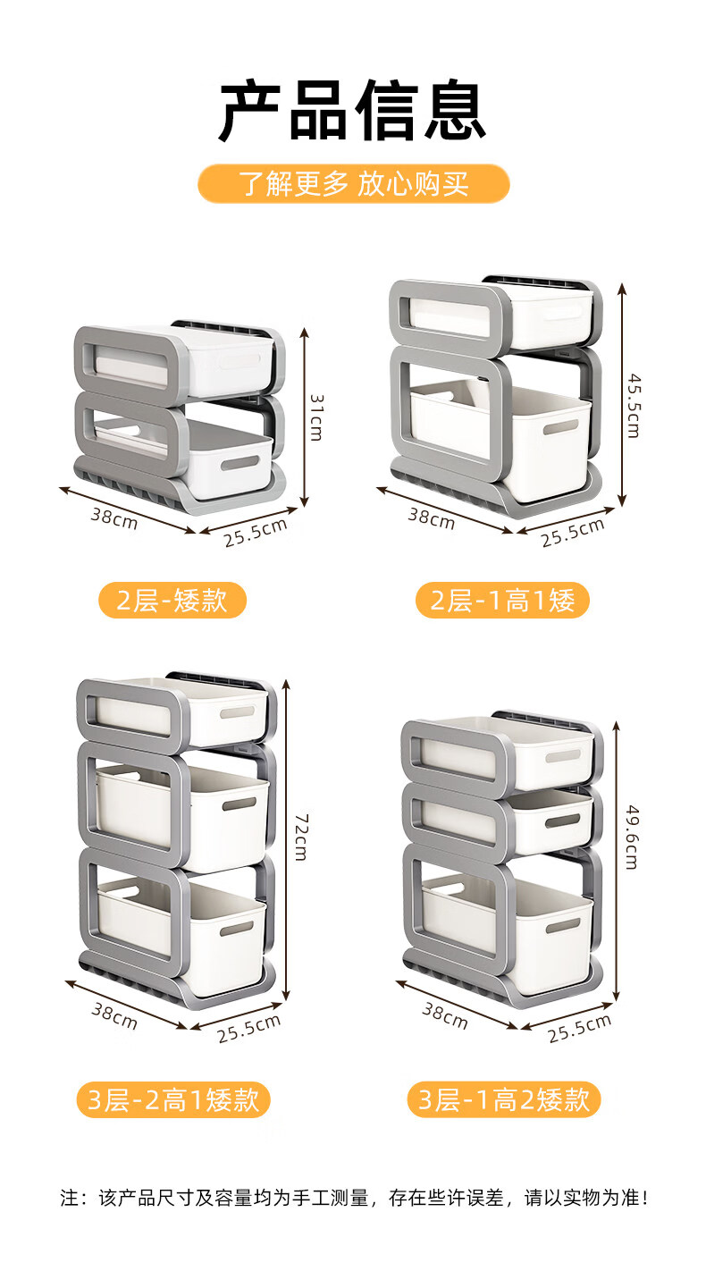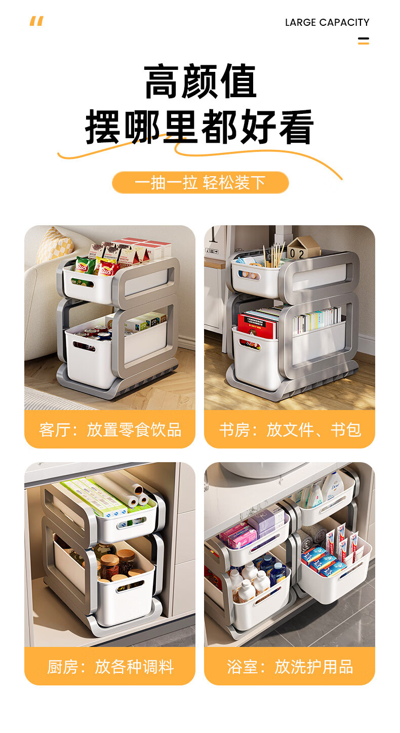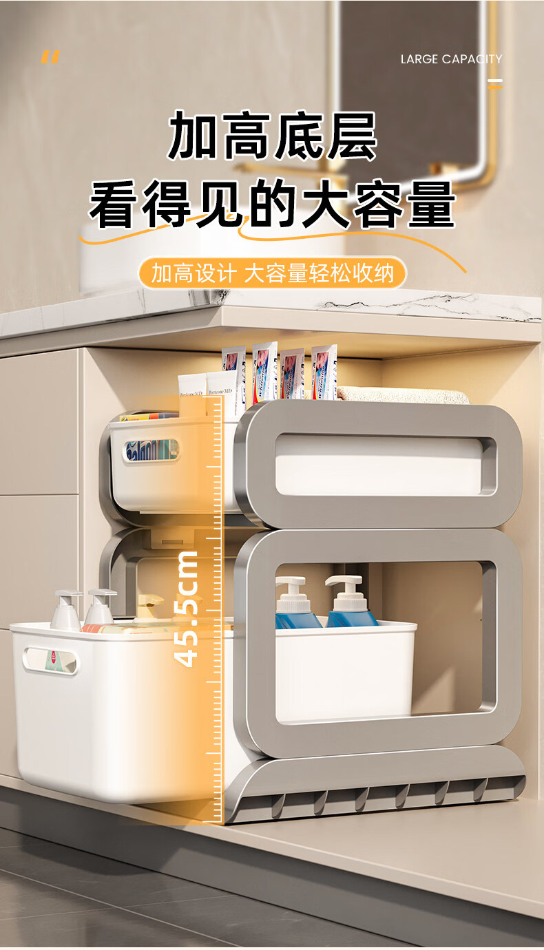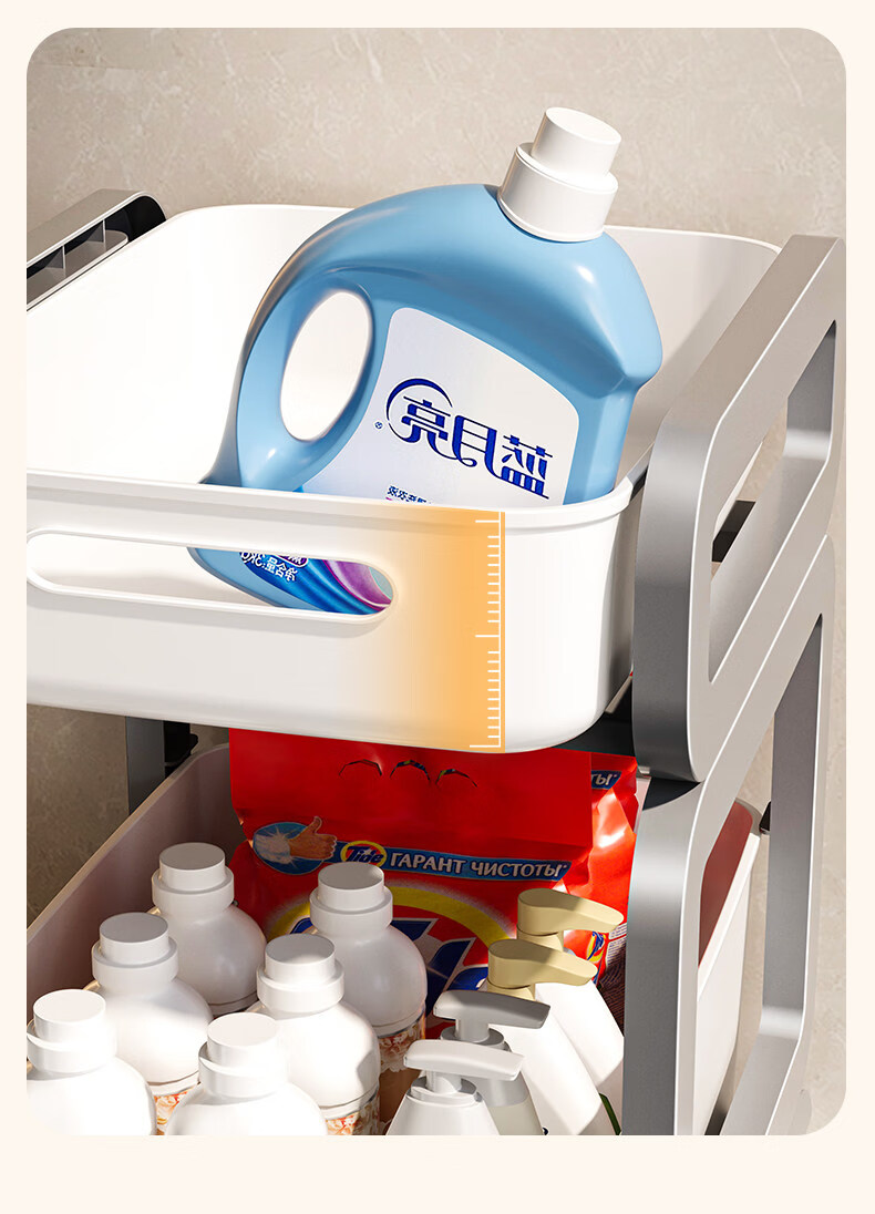 Tuojin imported high-quality pull-out sink storage rack from Germany, simple style bathroom storage rack, widely popular with micro-business, milky white, 3 layers, two short + one high + pulley