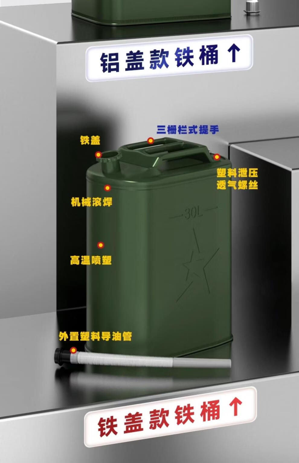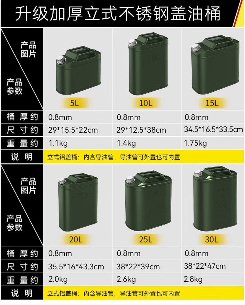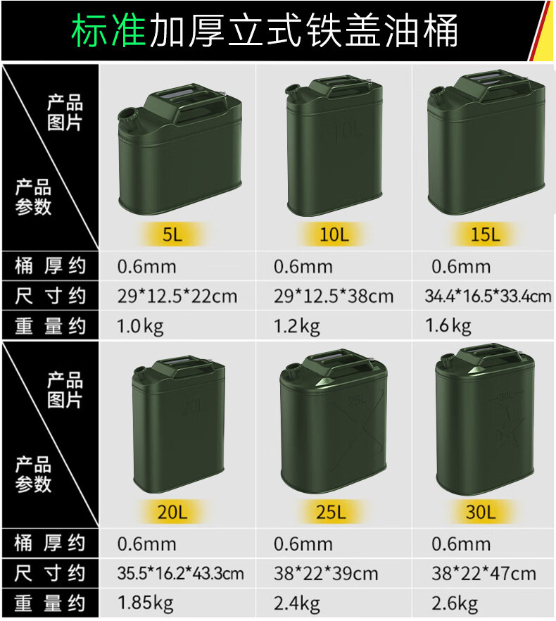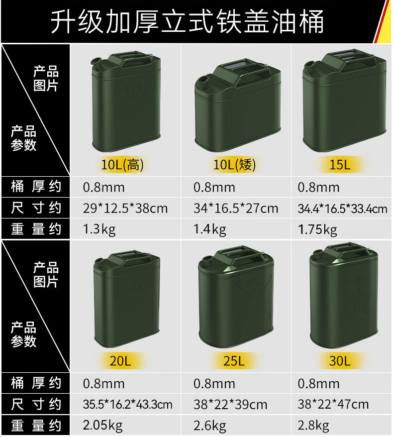 Work horse thickened iron oil barrel gasoline barrel 30 liters 20 liters 10 liters 5l diesel barrel spare locomotive fuel tank gasoline special barrel standard thickened horizontal iron cover 3L (carrying ring) + oil pipe