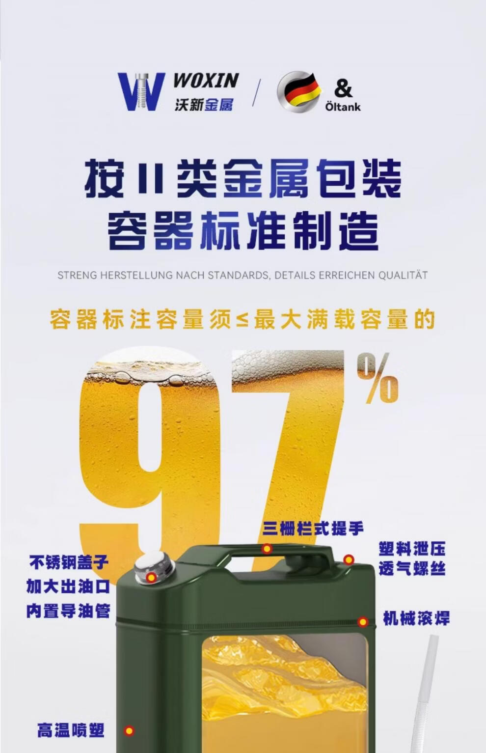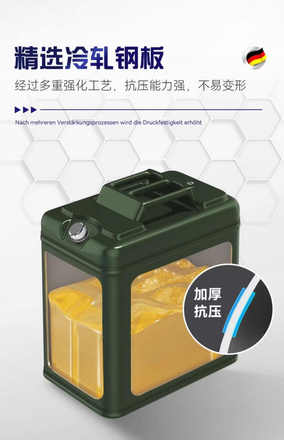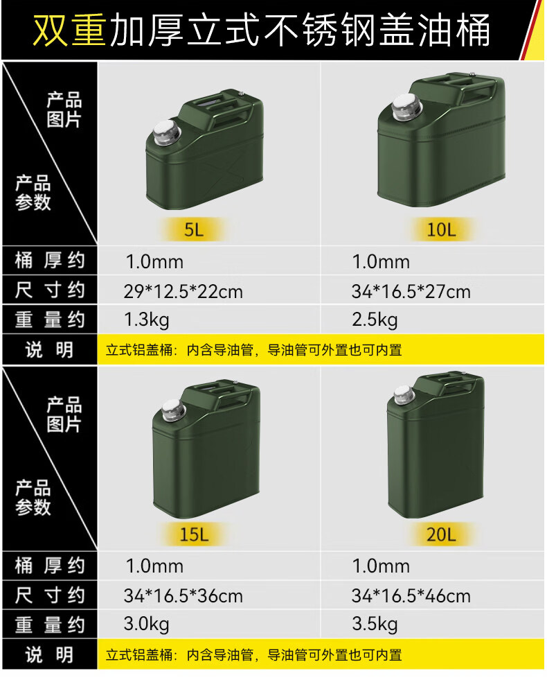 Work horse thickened iron oil barrel gasoline barrel 30 liters 20 liters 10 liters 5l diesel barrel spare locomotive fuel tank gasoline special barrel standard thickened horizontal iron cover 3L (carrying ring) + oil pipe