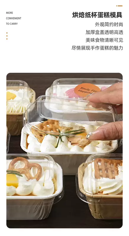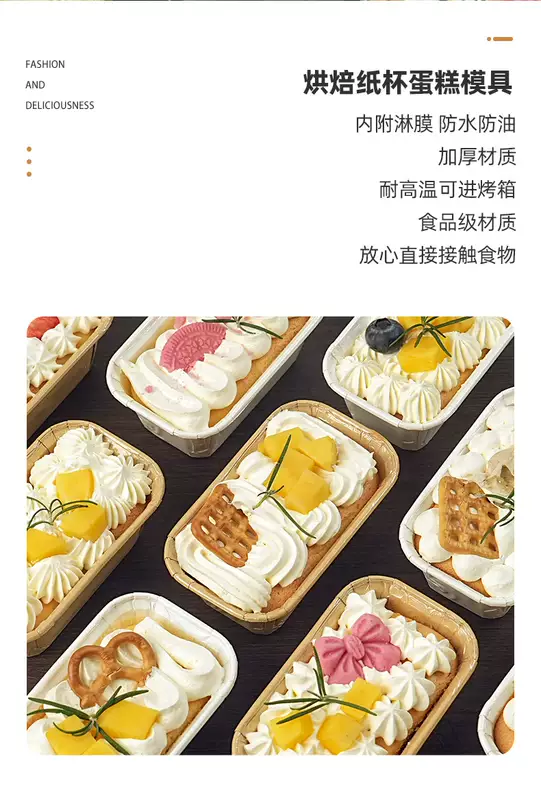 Yusenyi baked rectangular cupcake mold baked jujube cake paper holder with lid cup disposable oven high temperature resistant packaging (50 pcs) cowhide color rectangle 50 pcs (50 pcs) cowhide color rectangle