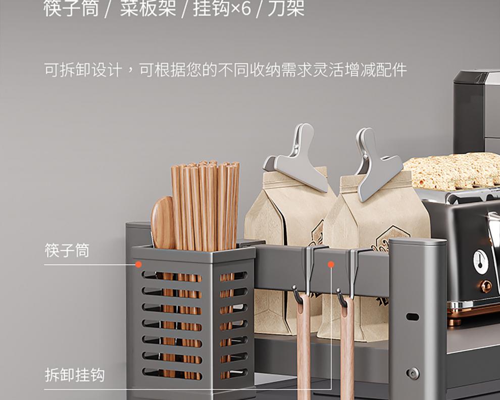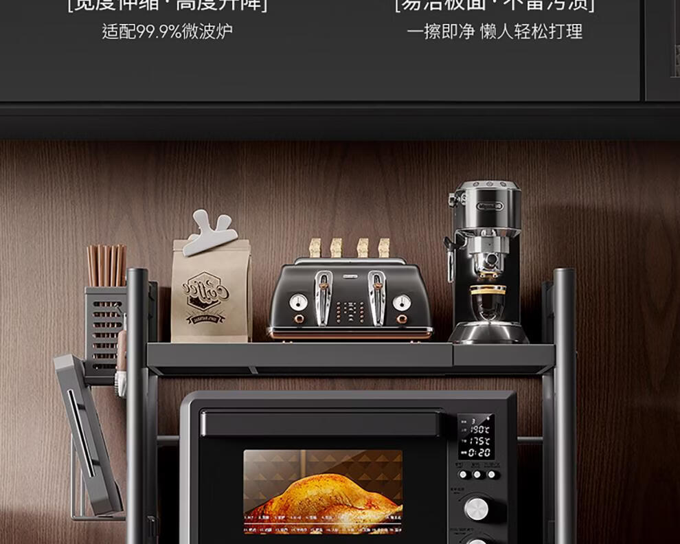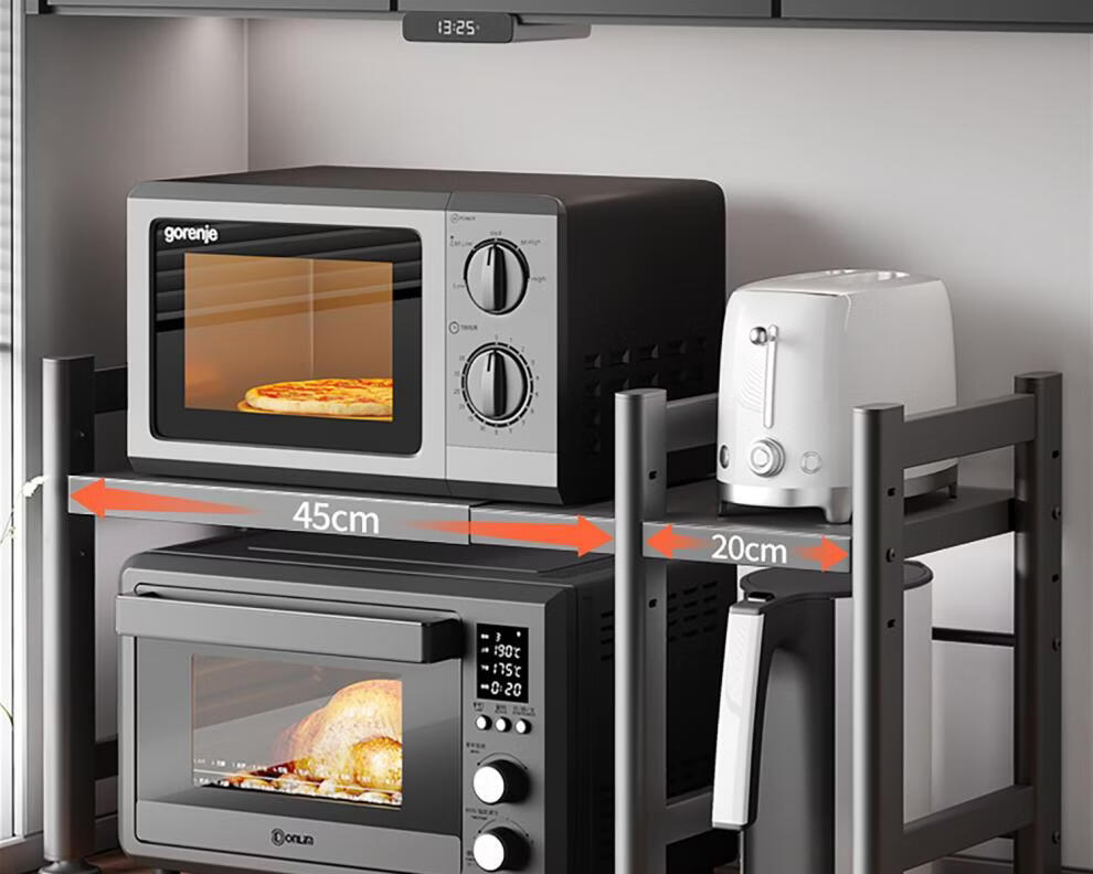 Tuojin German imported quality kitchen microwave oven shelf rack multi-function bracket multi-layer household oven countertop appliance Haoyue white extra thick and stable 40mm double layer 53cm+6 hooks