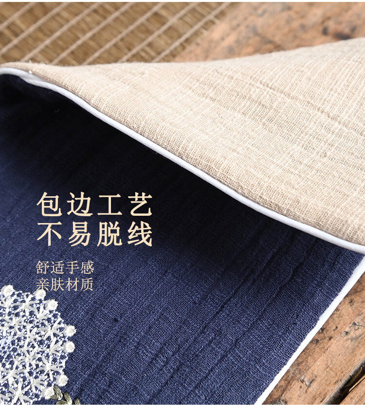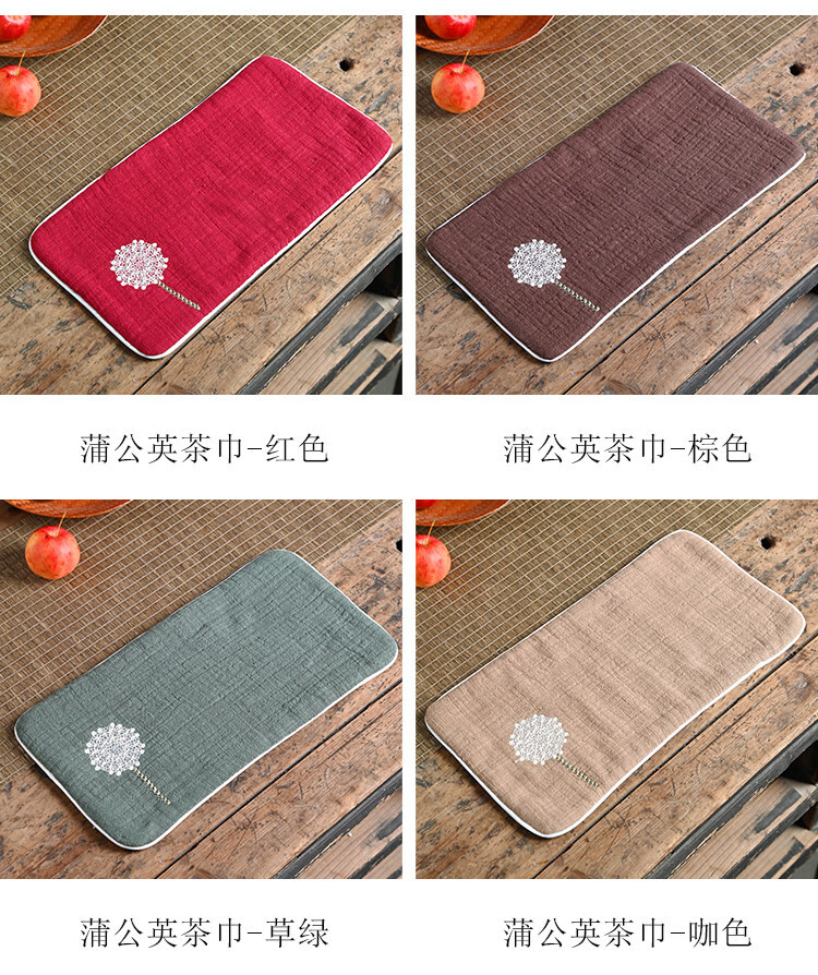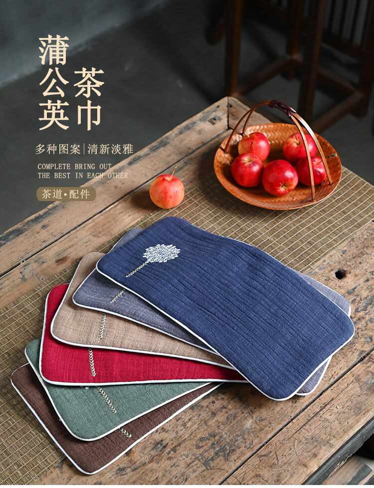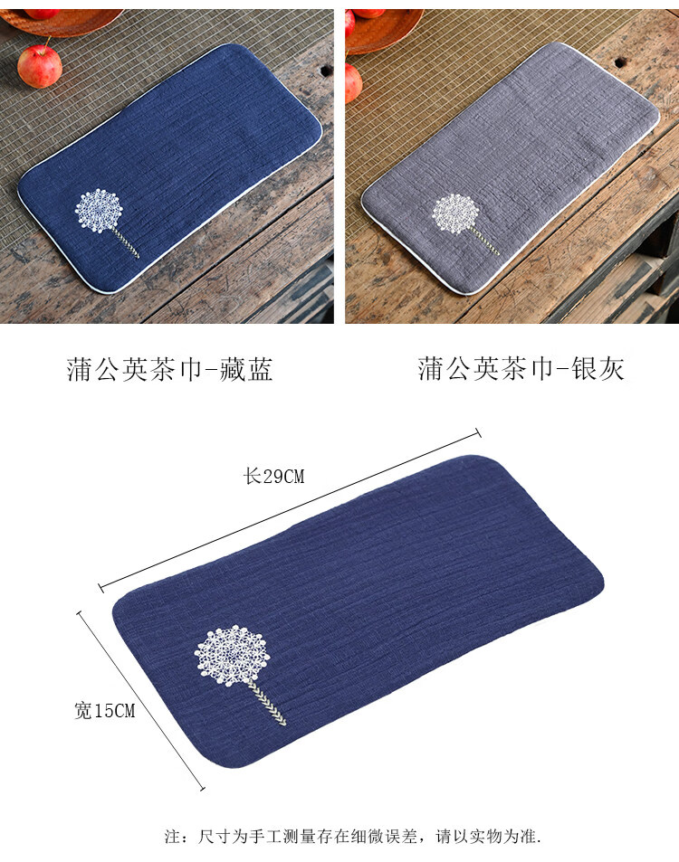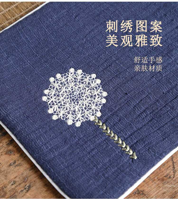 Guangyi cotton and linen thickened tea towel tea tablecloth waterproof tea ceremony mat Chinese style Zen Kung Fu tea ceremony embroidery travel tablecloth Navy/Dandelion (length 29CM width 15CM)