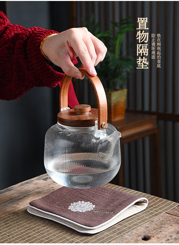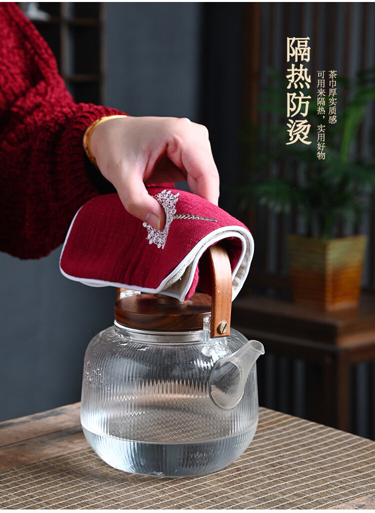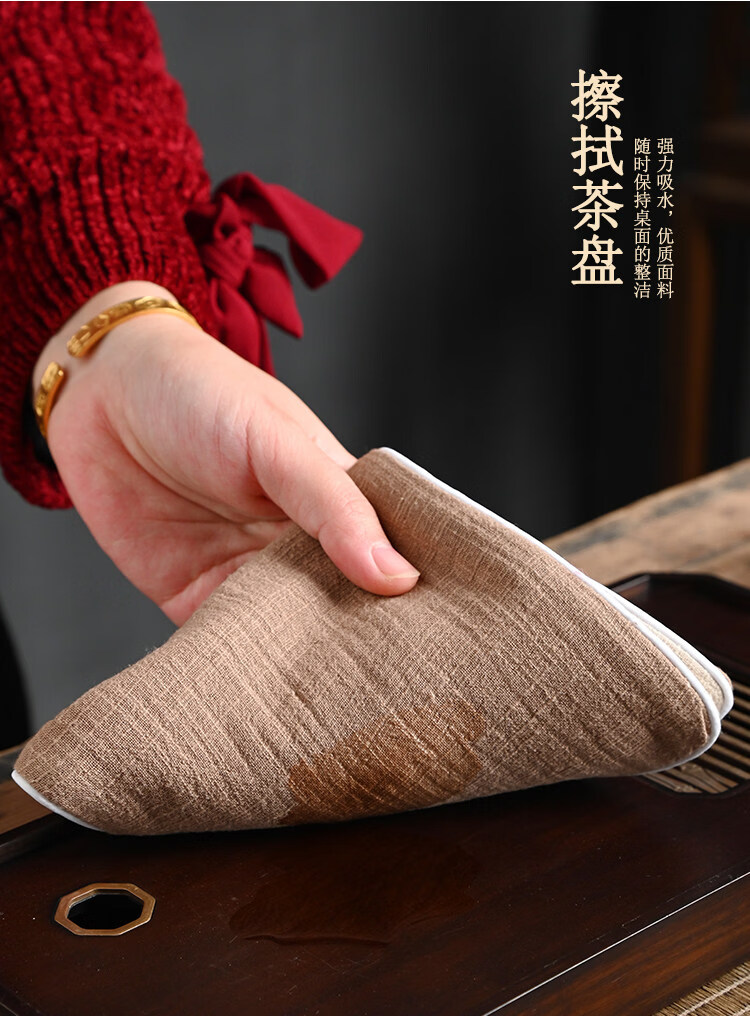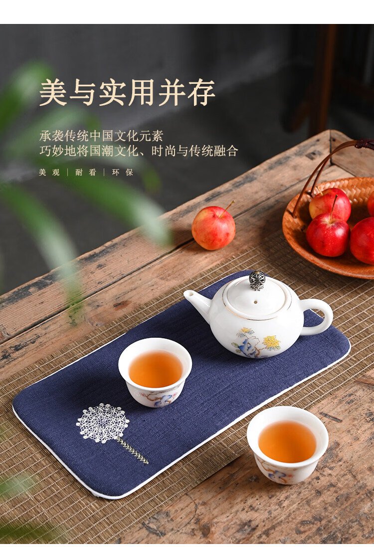 Guangyi cotton and linen thickened tea towel tea tablecloth waterproof tea ceremony mat Chinese style Zen Kung Fu tea ceremony embroidery travel tablecloth Navy/Dandelion (length 29CM width 15CM)