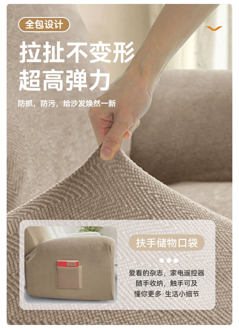 The Phantom Sofa Cover High Weight Elastic Cabin Cover Dark Gray Three-Seater Left-side Concubine (8-piece Set)