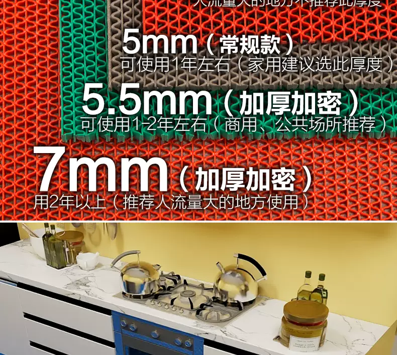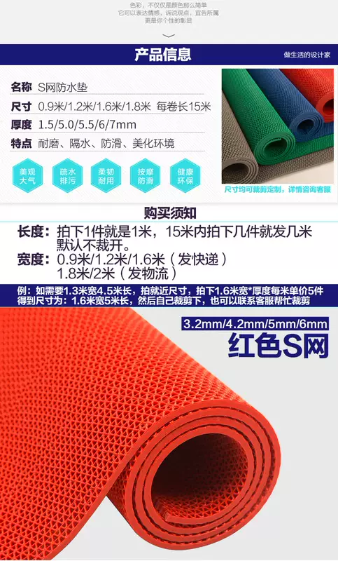 Yusenyi Jinning PVC non-slip mat bathroom toilet powder room bathhouse kitchen commercial door plastic hollow anti-cooked glue extra thick 7.0 red encryption 60x150CM