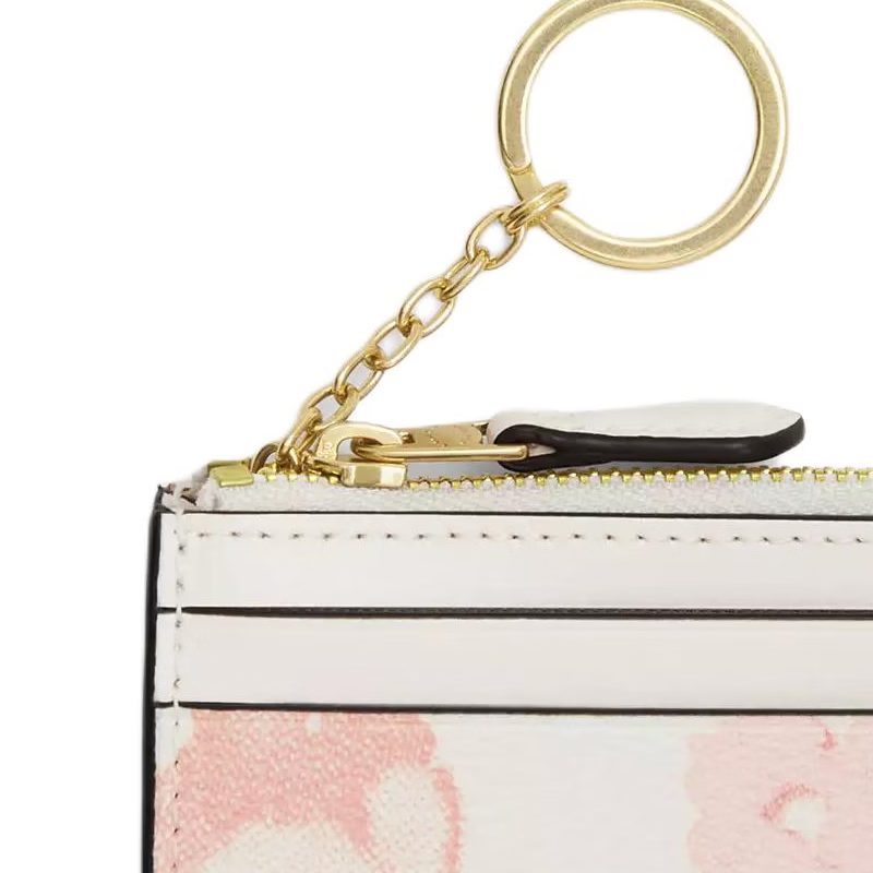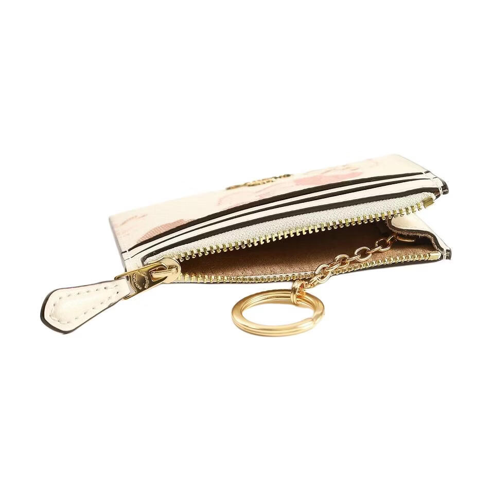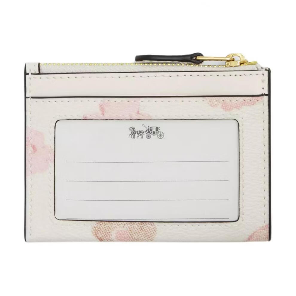 COACH Skinny Id Case 11 Printed Design Top Zipper Coated Canvas Wallet Mini Unisex White 1 White 2