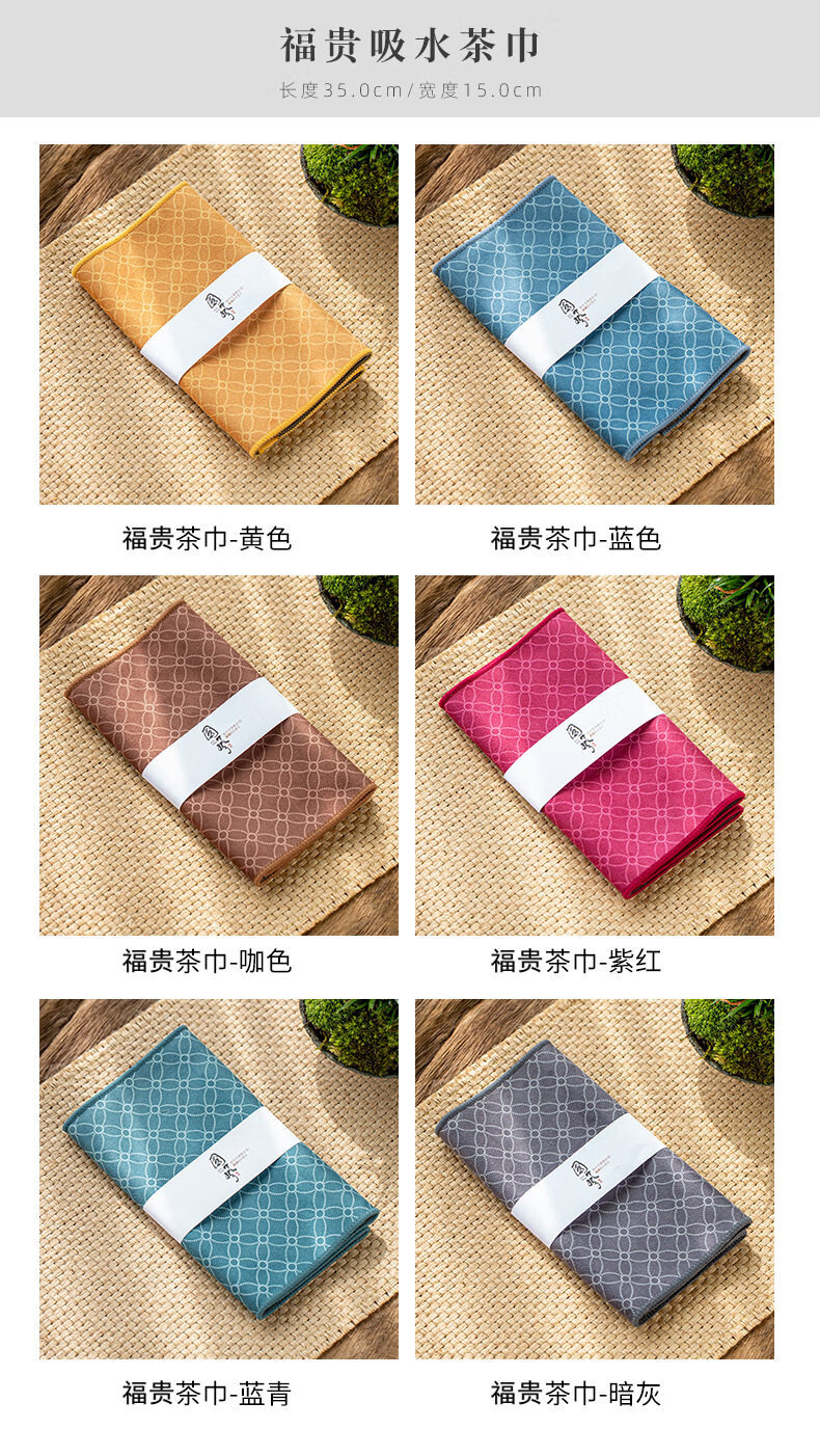 Guangyi thickened tea towel, tea cloth, absorbent tea tablecloth, Chinese Kung Fu tea set, tea ceremony accessories, towel, tea mat, rag mat, Fugui tea towel - coffee color 35*15cm