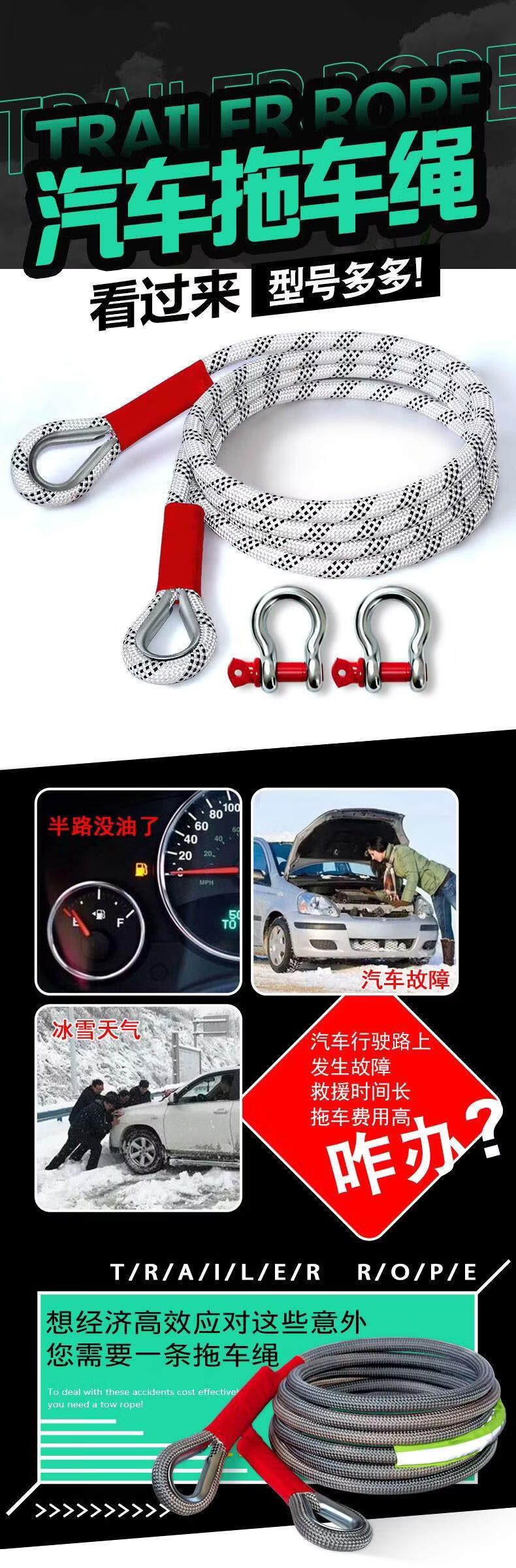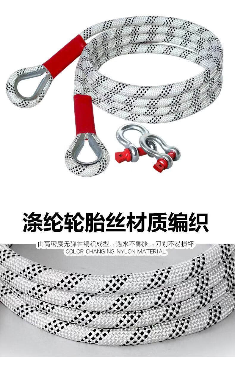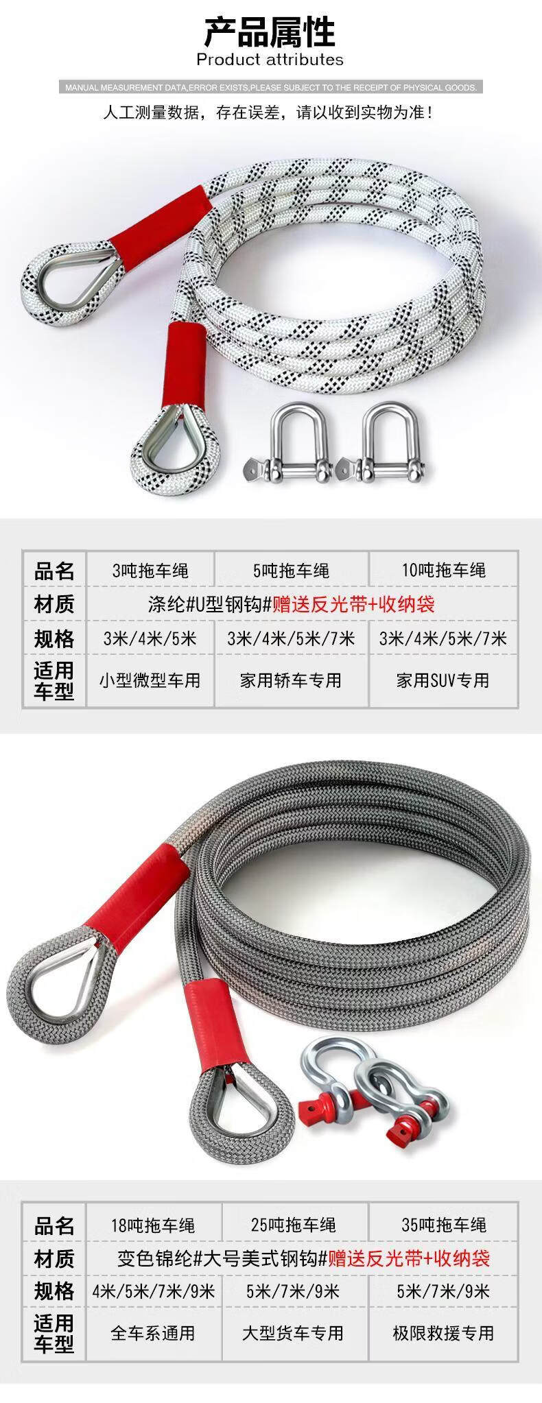 Gongma car tow rope 20 tons 25 tons anti-bump rescue thickened trailer pull rope off-road special heavy-duty wear-resistant 3 meters 3 tons small U-shaped hook + reflective tape + storage bag special for small and micro vehicles