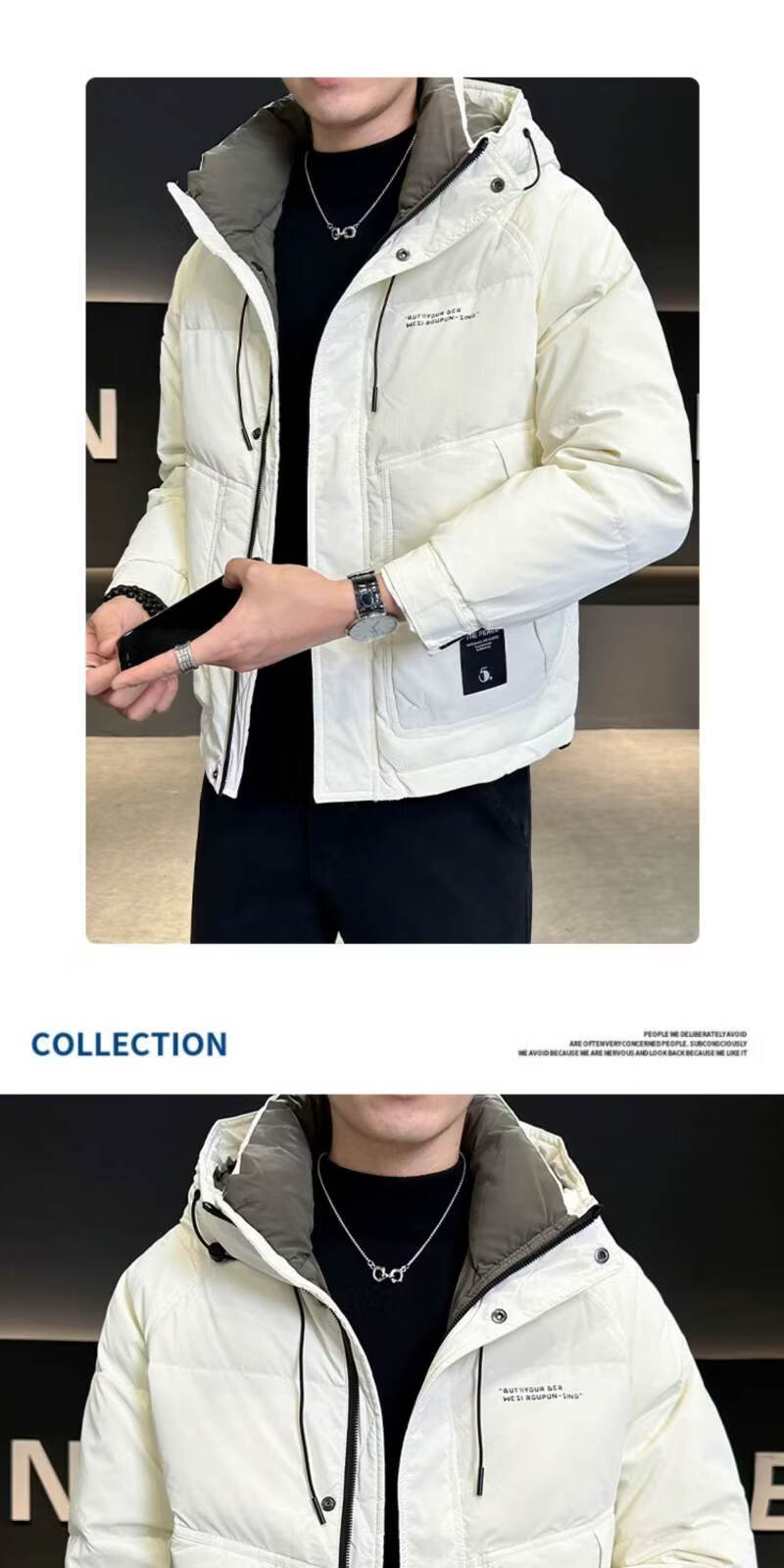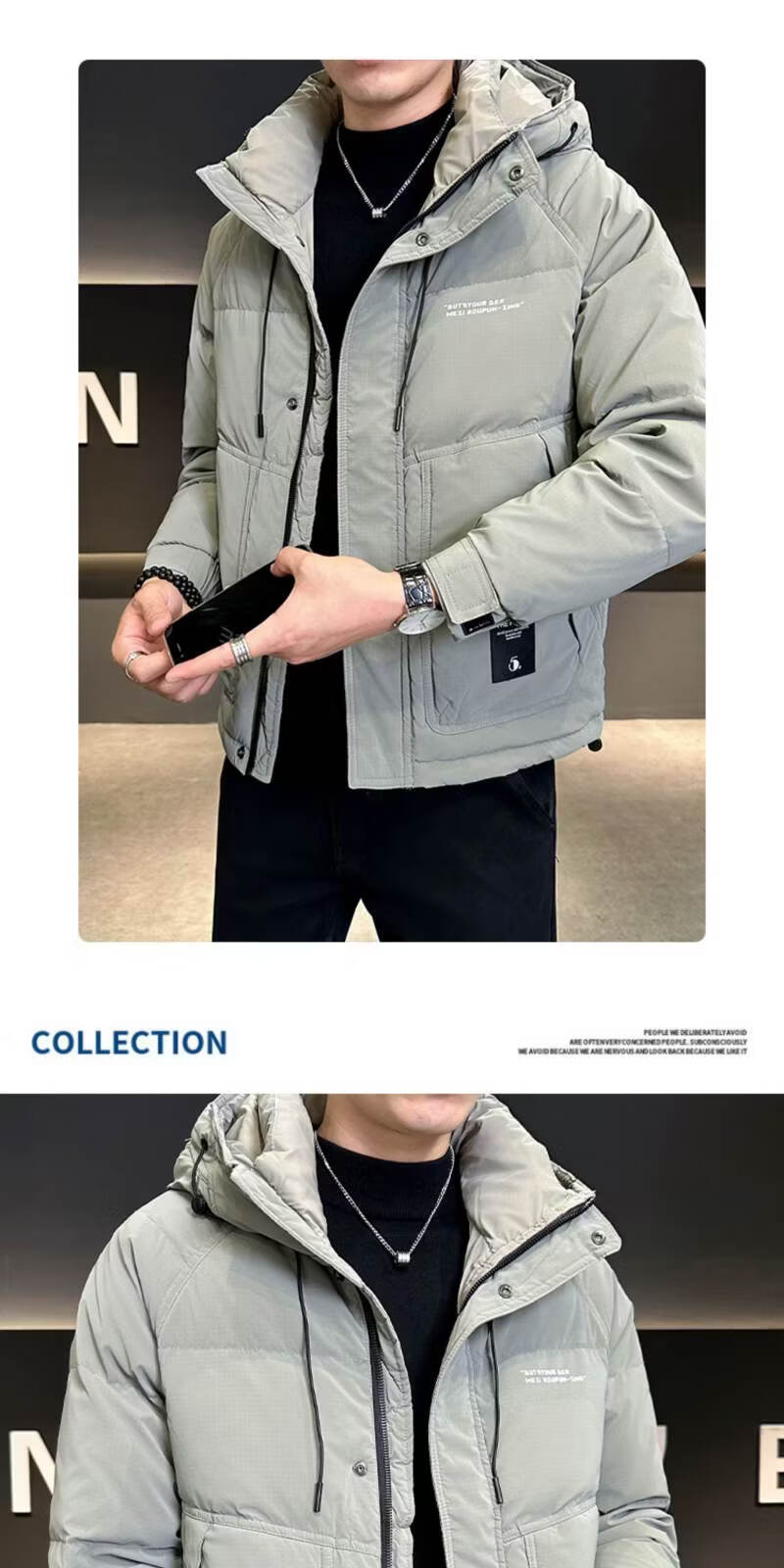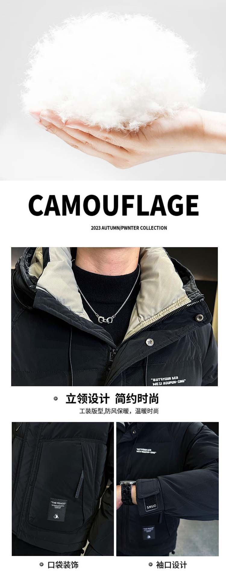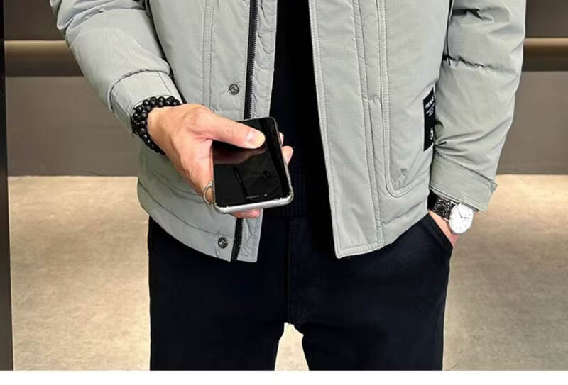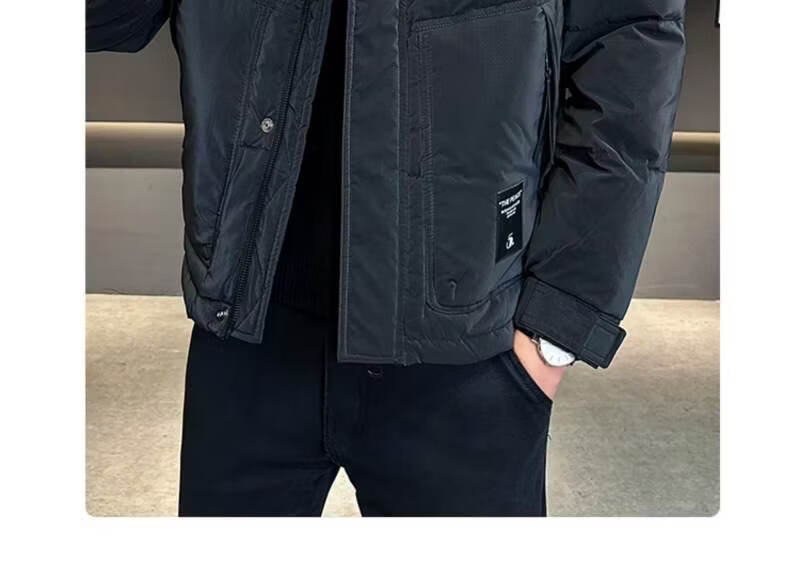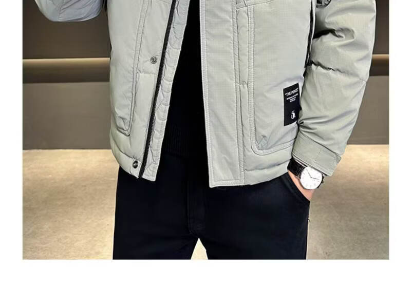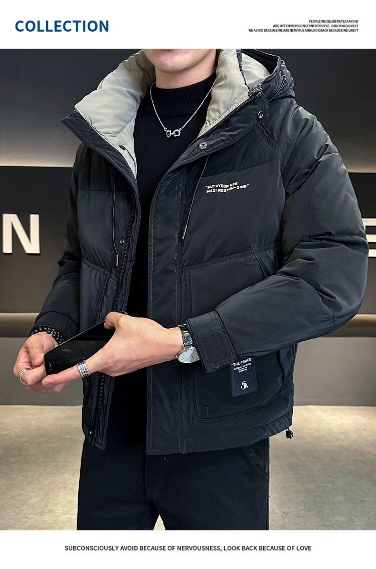 Snow Flying (SNOWFLYING) high-end winter down jacket men's hooded trendy brand 2025 new slim-fitting short handsome down top jacket Bean Gray 2XL Recommended 130-155Jin Jin equals 0.5 kg