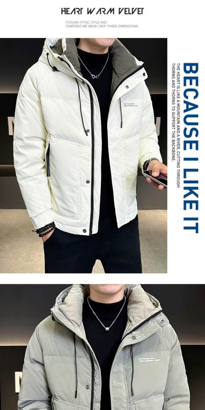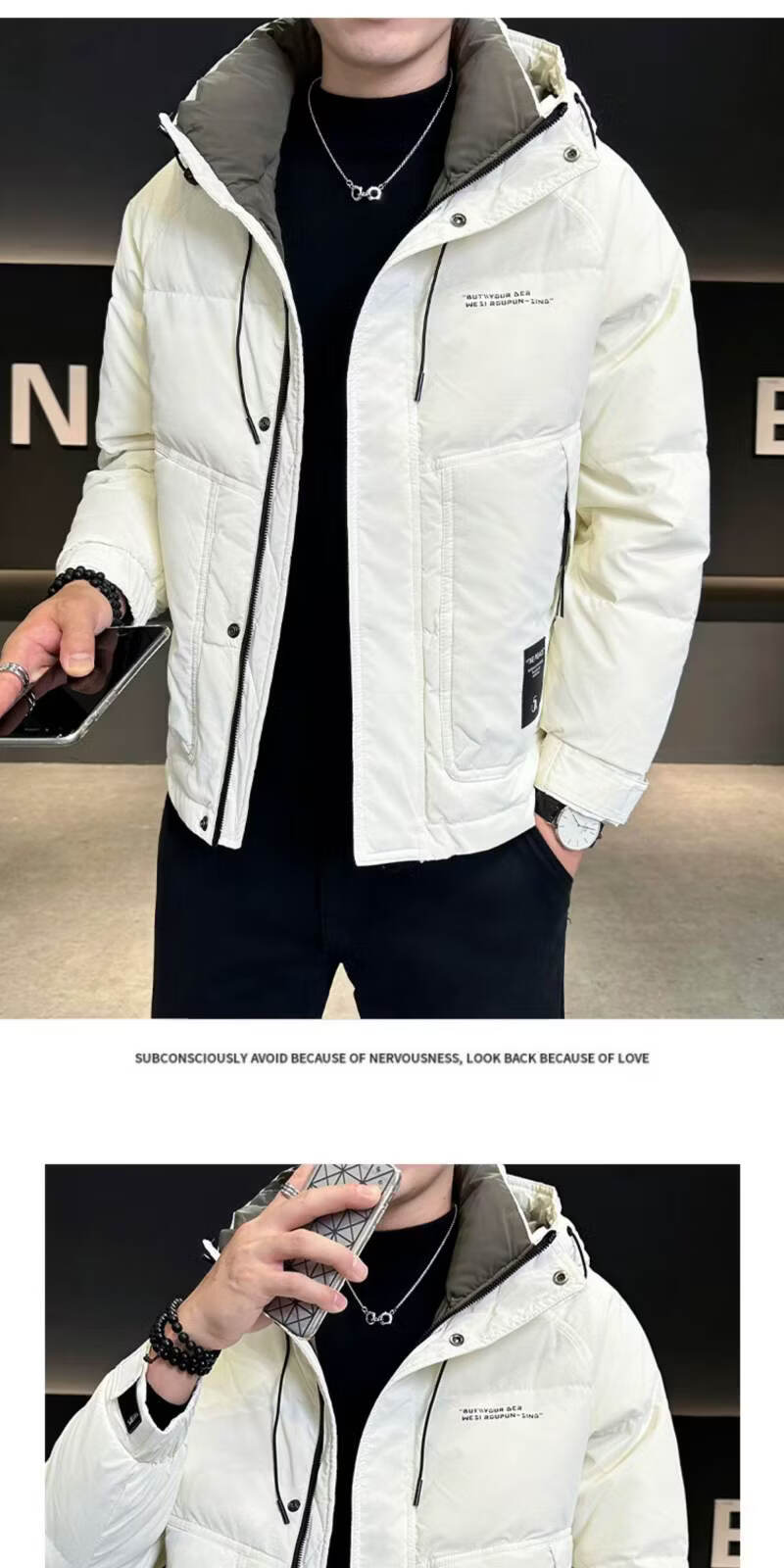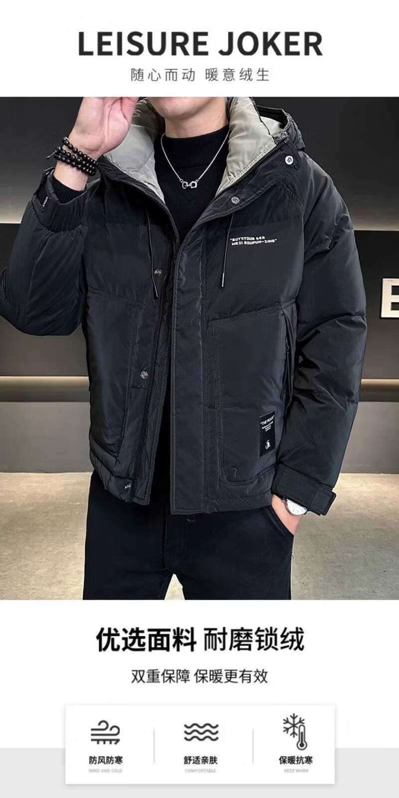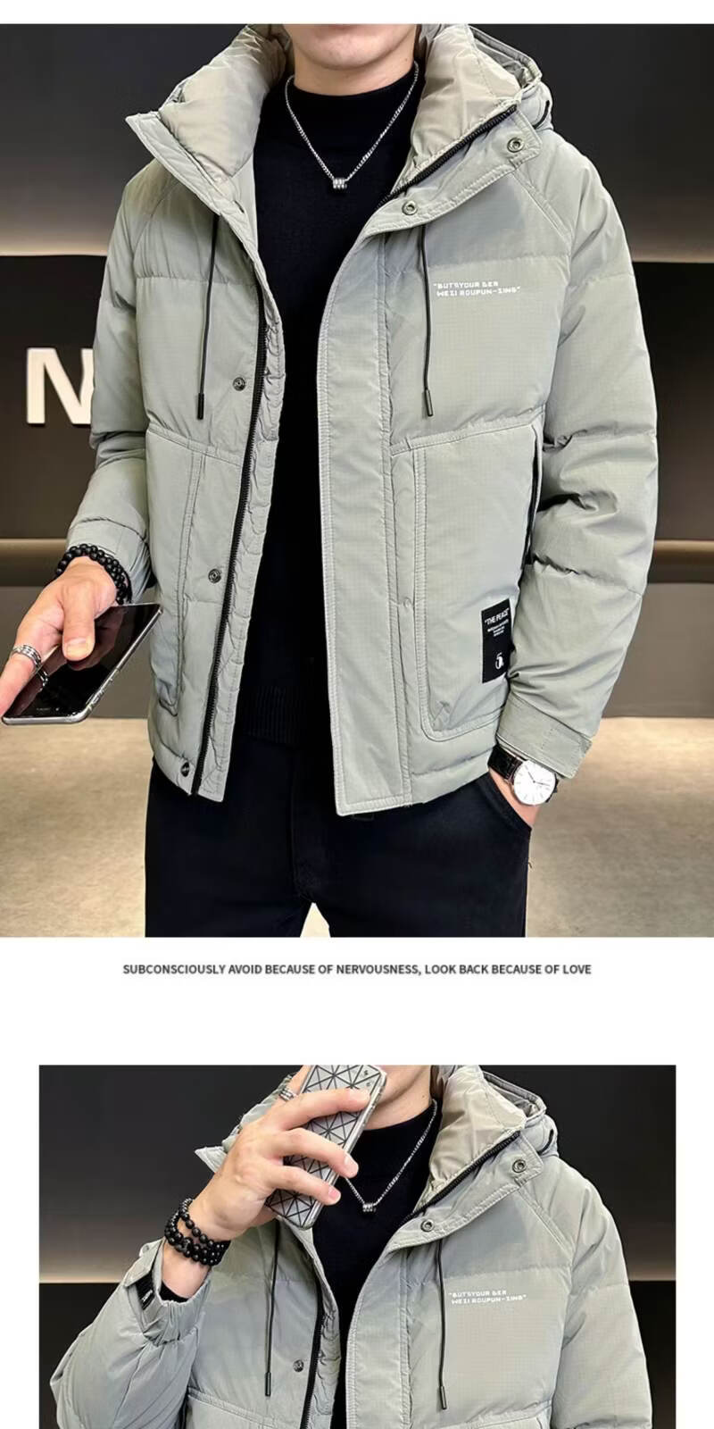 Snow Flying (SNOWFLYING) high-end winter down jacket men's hooded trendy brand 2025 new slim-fitting short handsome down top jacket Bean Gray 2XL Recommended 130-155Jin Jin equals 0.5 kg