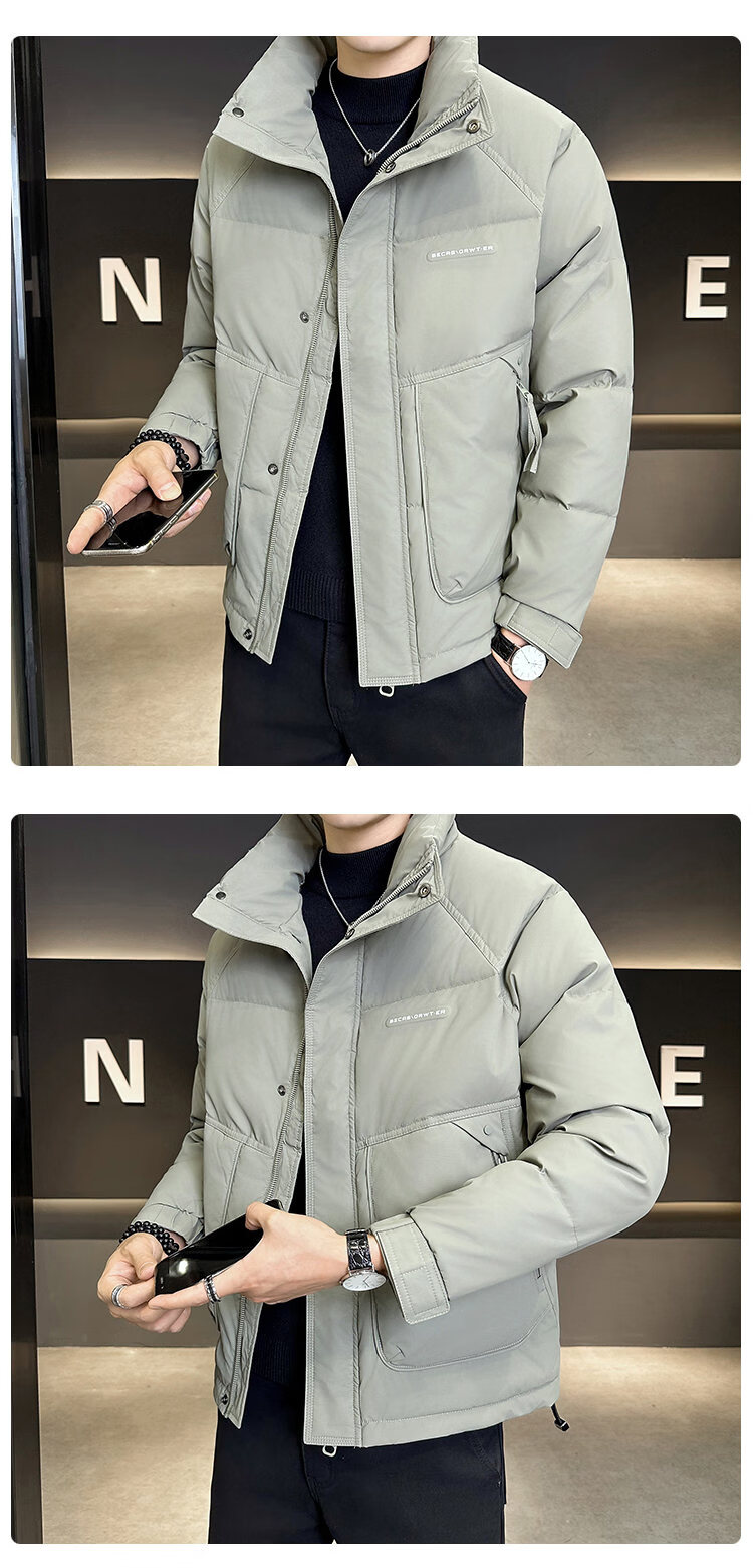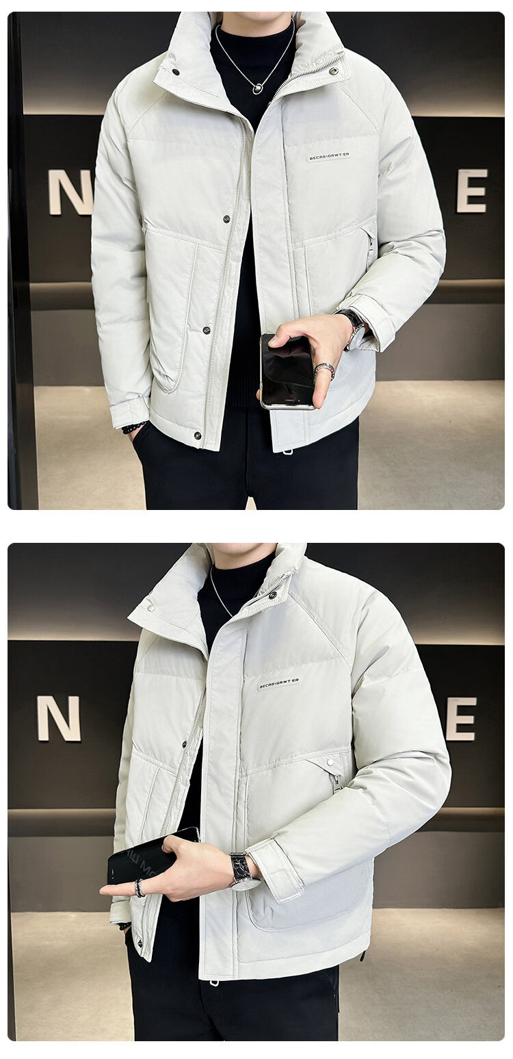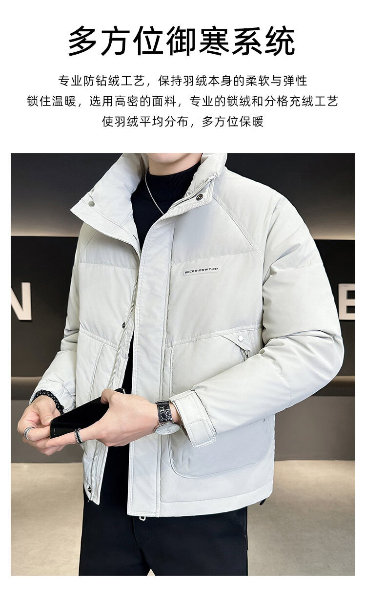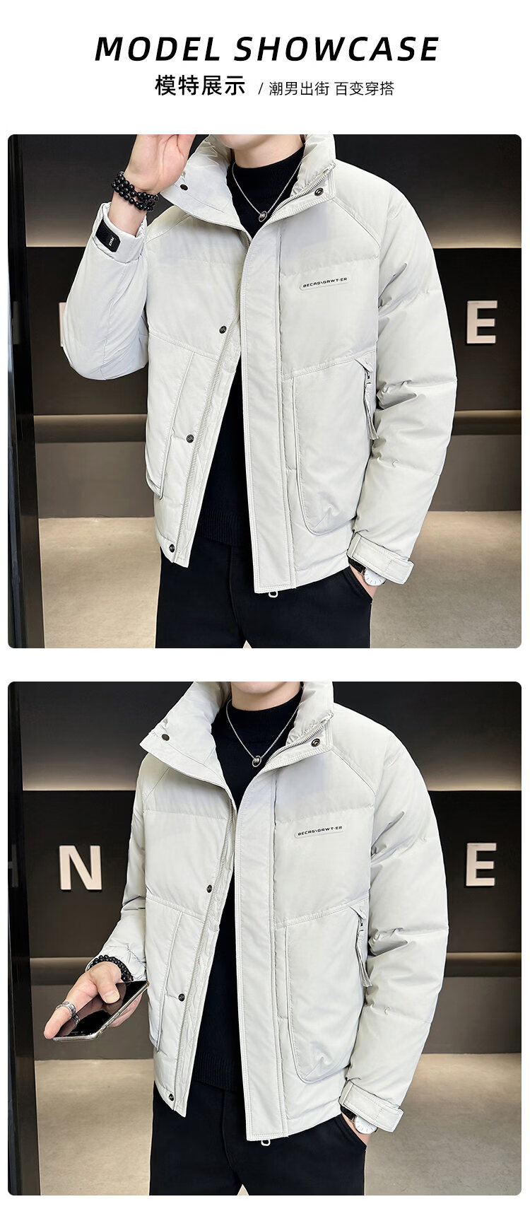 Snow Flying (SNOWFLYING) high-end winter trendy brand down jacket men's handsome white duck down short cold-proof jacket youth thickened stand-up collar clothes gray 2XL recommended 130-155Jin Jin equals 0.5 kg