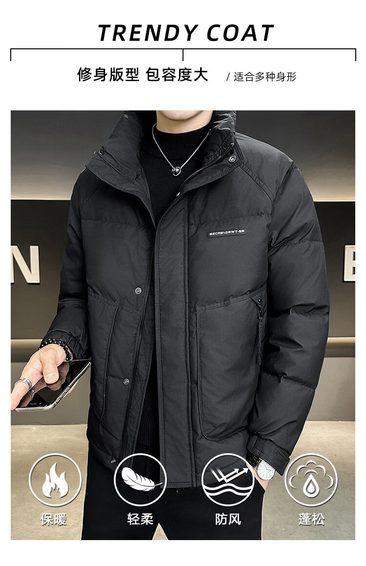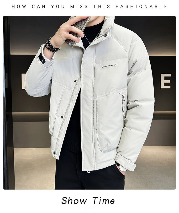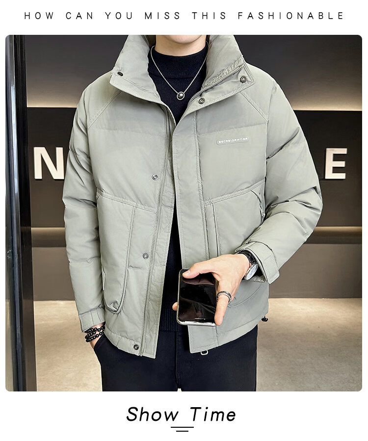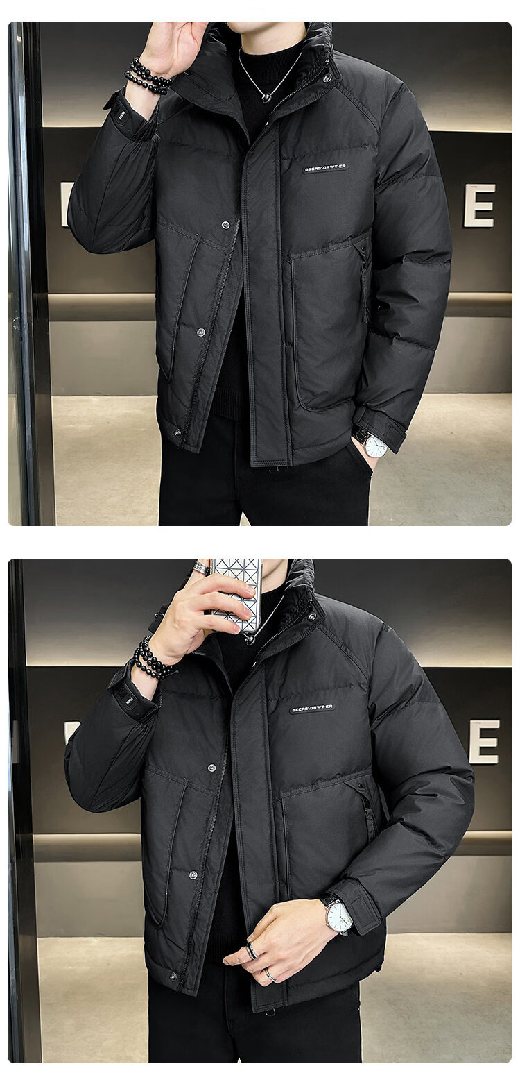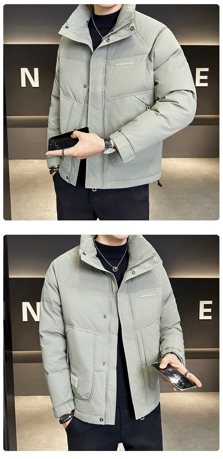 Snow Flying (SNOWFLYING) high-end winter trendy brand down jacket men's handsome white duck down short cold-proof jacket youth thickened stand-up collar clothes gray 2XL recommended 130-155Jin Jin equals 0.5 kg