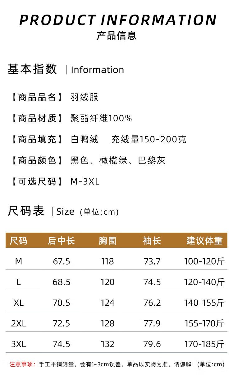 China (cm) 165 / 88-90 170 / 96-98 175 / 108-110 180 / 118-122 185 / 126-130