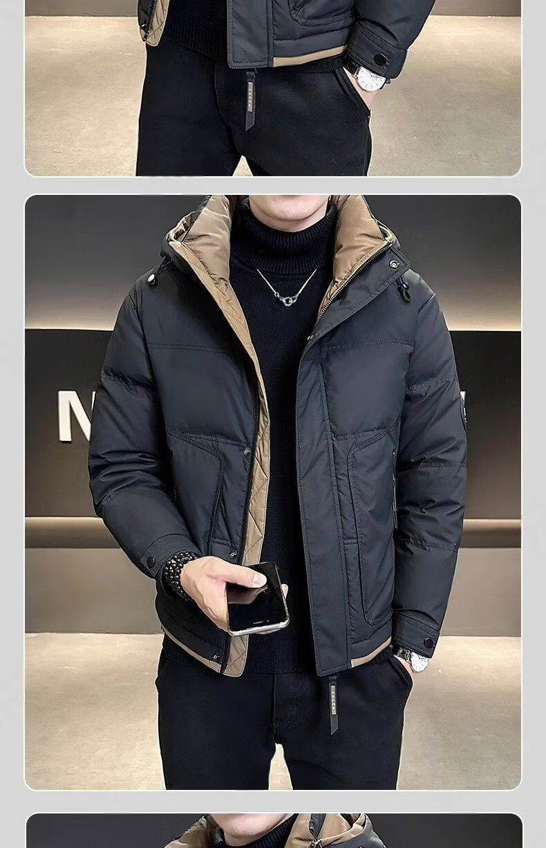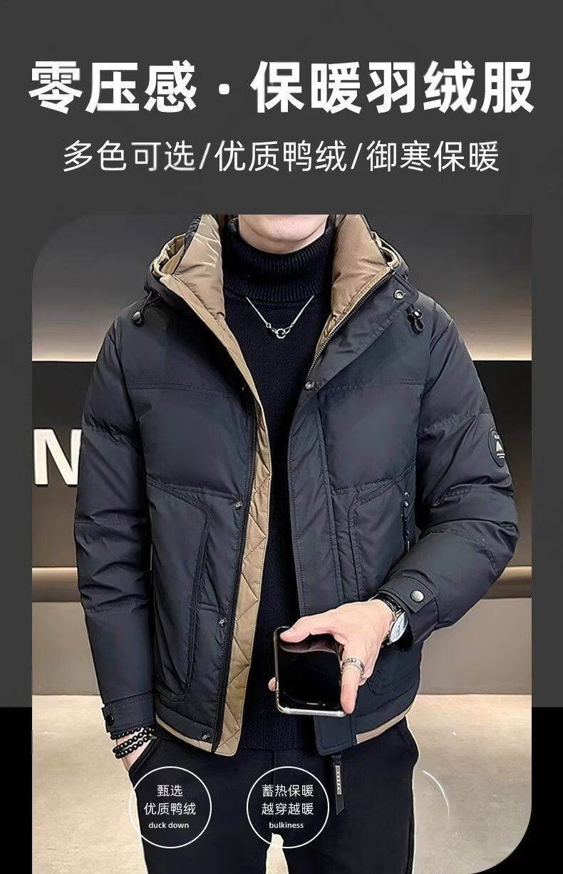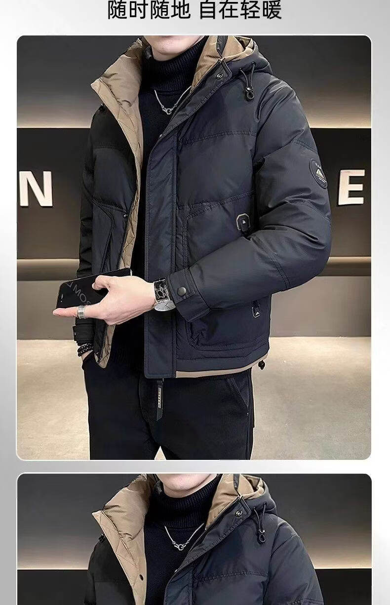 Snow Flying (SNOWFLYING) high-end hooded down jacket men's short winter 2025 new warm and thickened trendy brand high-end winter men's jacket black 2XL recommended 130-155Jin Jin equals 0.5 kg