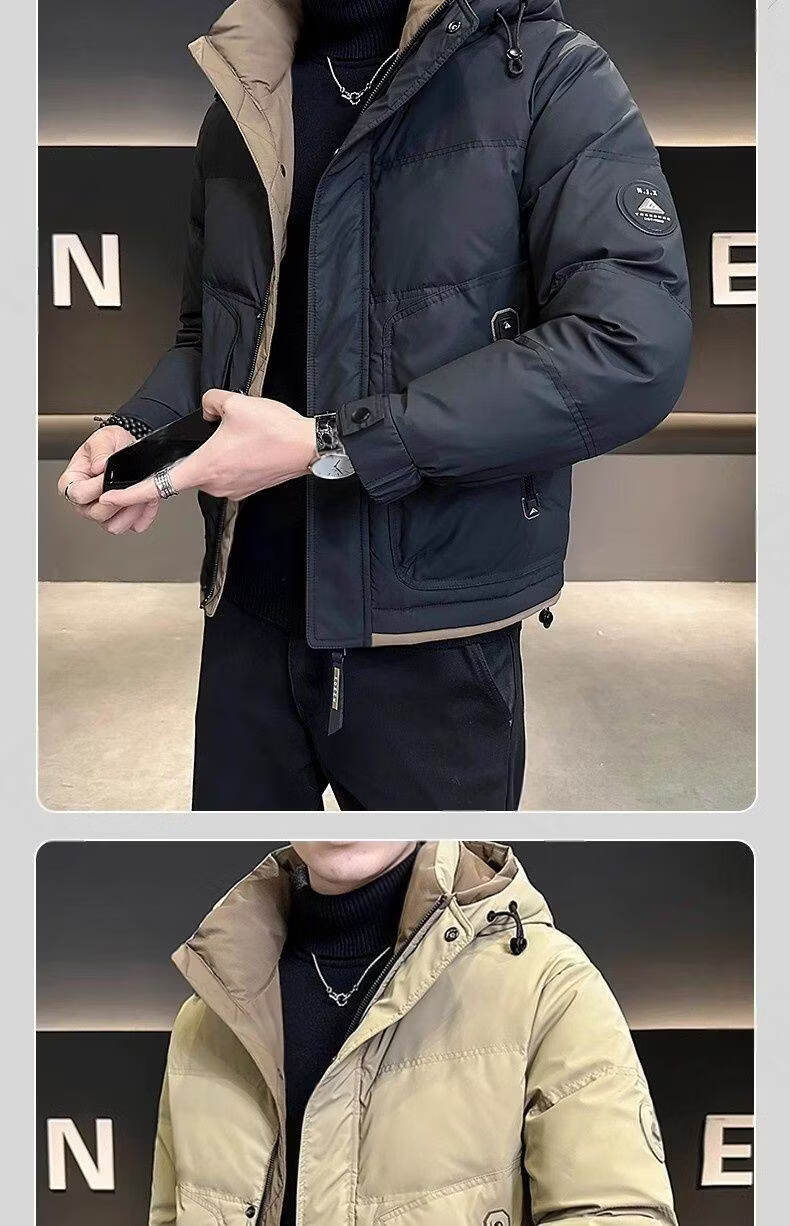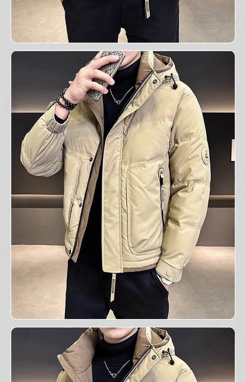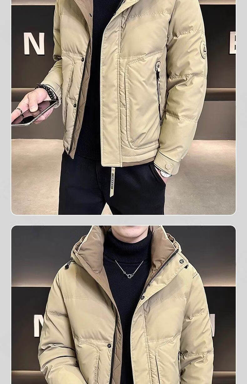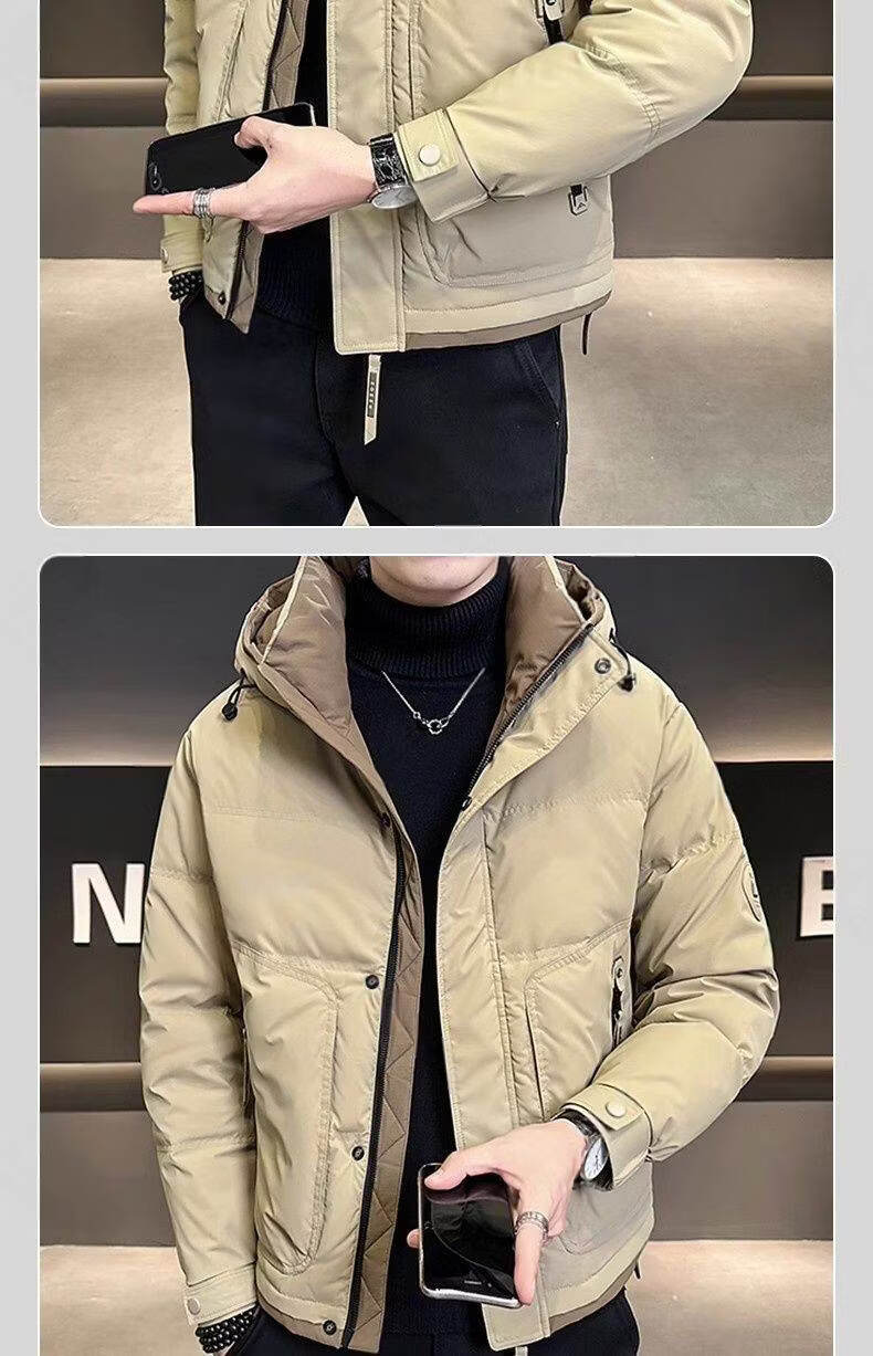 Snow Flying (SNOWFLYING) high-end hooded down jacket men's short winter 2025 new warm and thickened trendy brand high-end winter men's jacket black 2XL recommended 130-155Jin Jin equals 0.5 kg