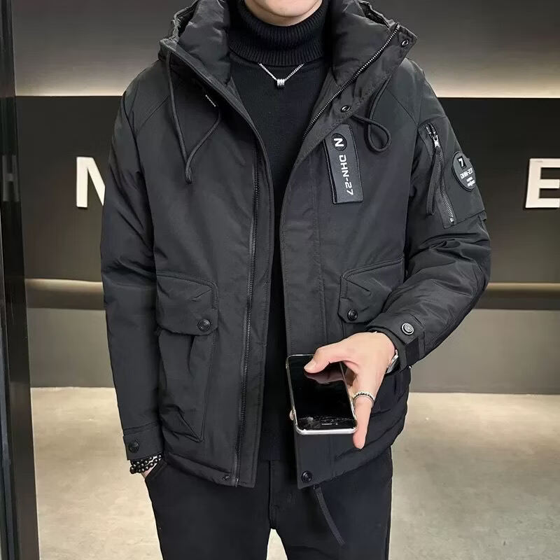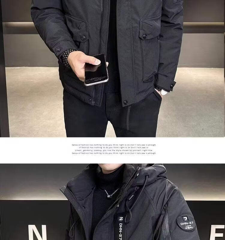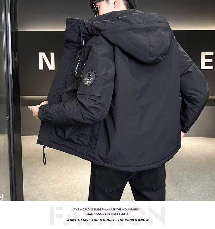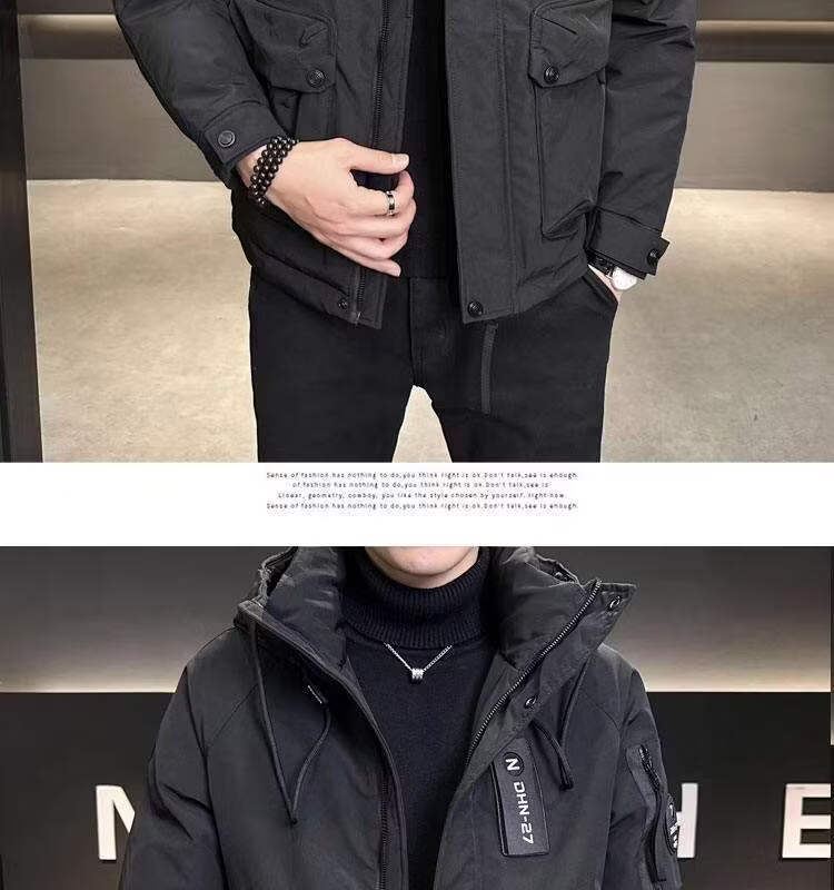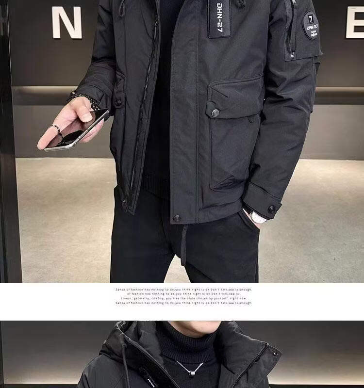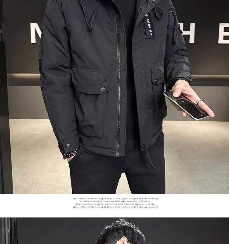Snow Flying (SNOWFLYING) Workwear Hooded Down Jacket Men's Autumn and Winter Thickened Coldproof Clothing 2025 New Trendy Fashion Short Top Men Black 2XL Recommended 130-155Jin Jin is equal to 0.5 kg