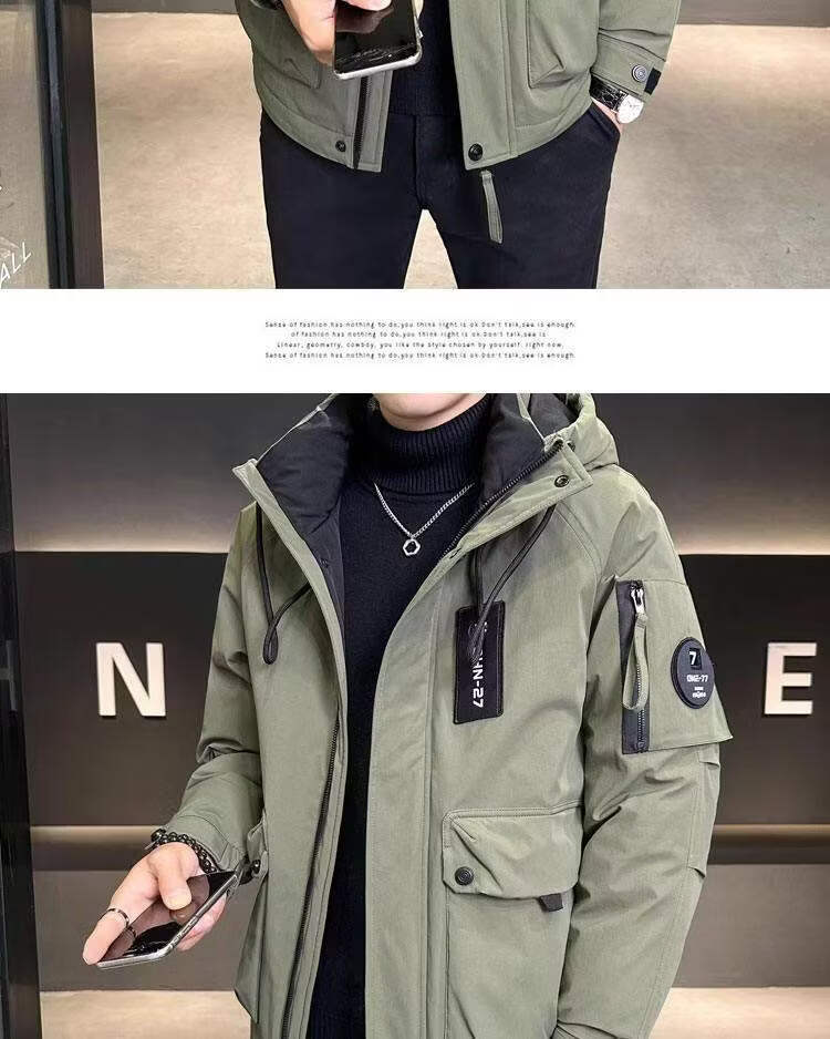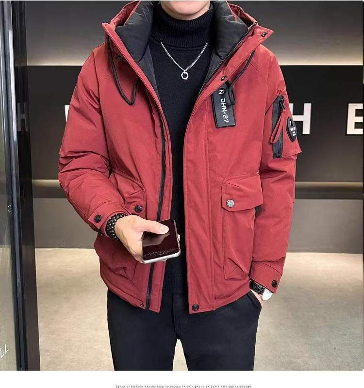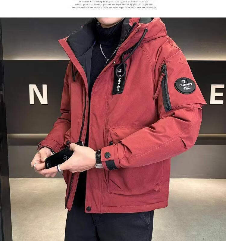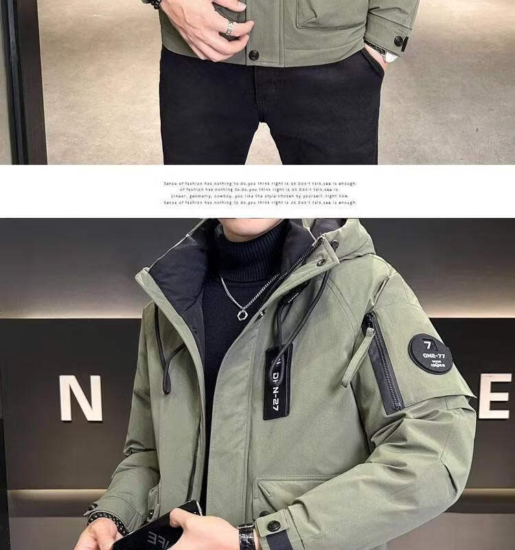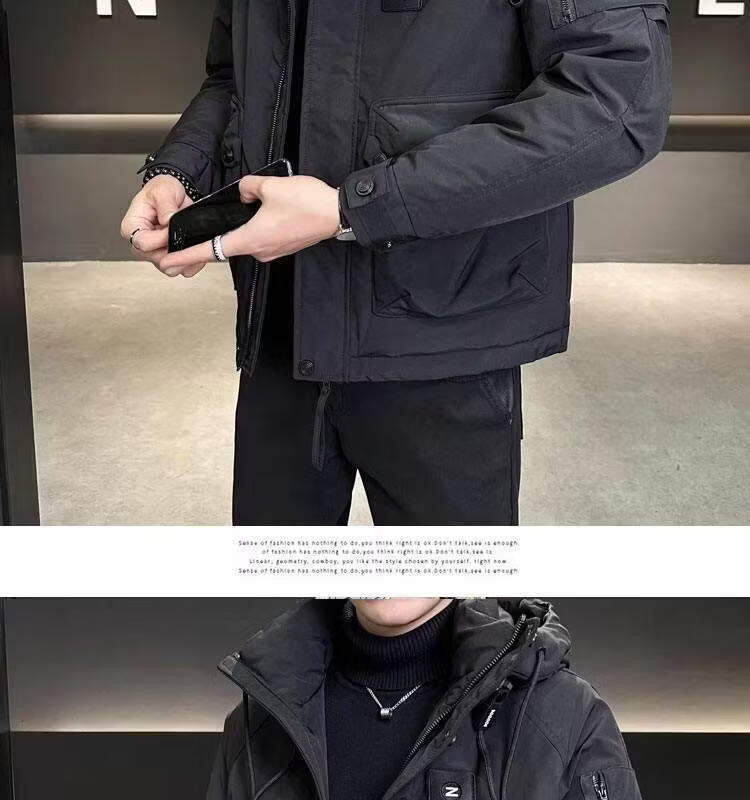 Snow Flying (SNOWFLYING) Workwear Hooded Down Jacket Men's Autumn and Winter Thickened Coldproof Clothing 2025 New Trendy Fashion Short Top Men Black 2XL Recommended 130-155Jin Jin is equal to 0.5 kg