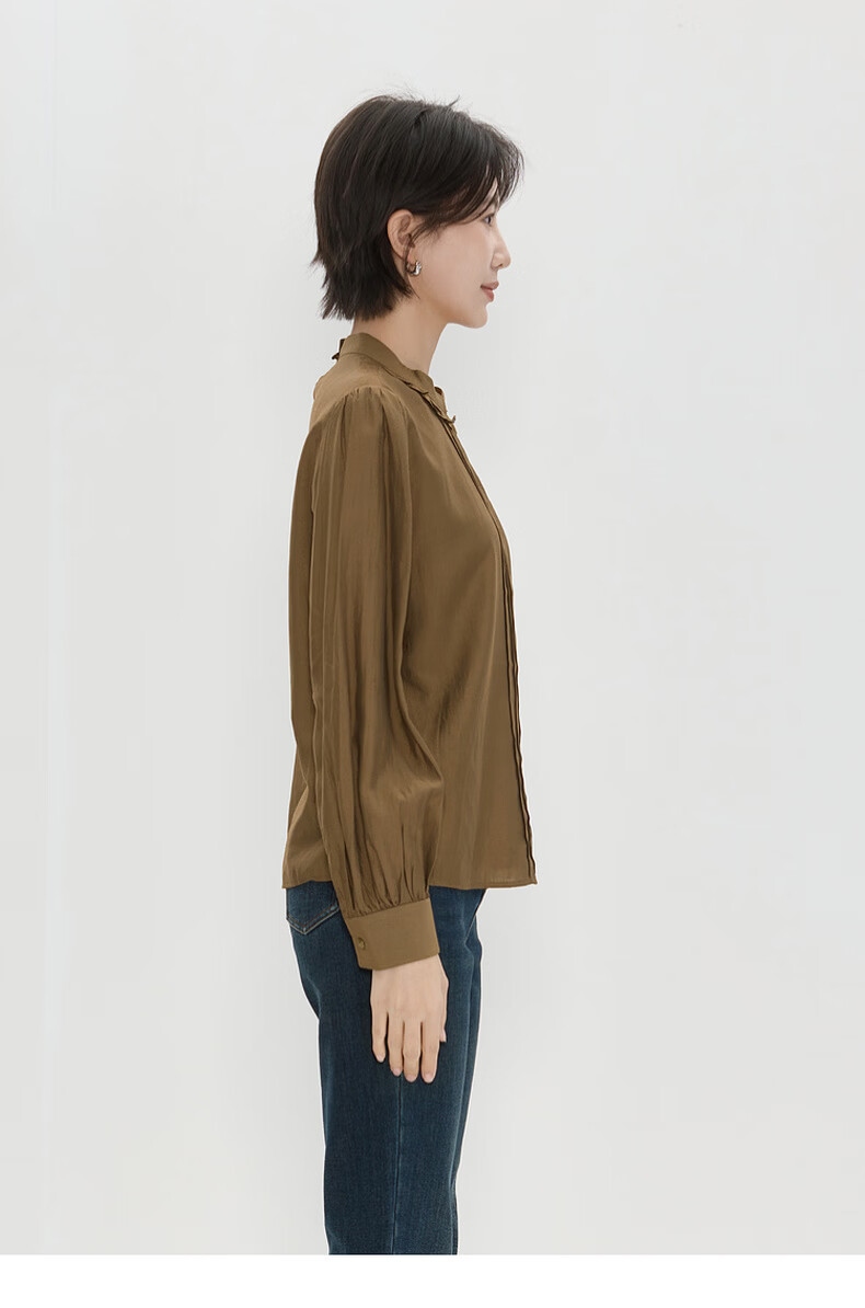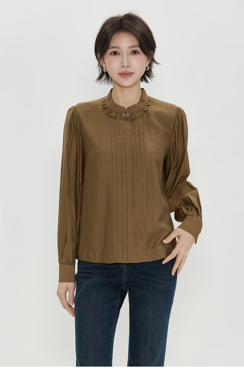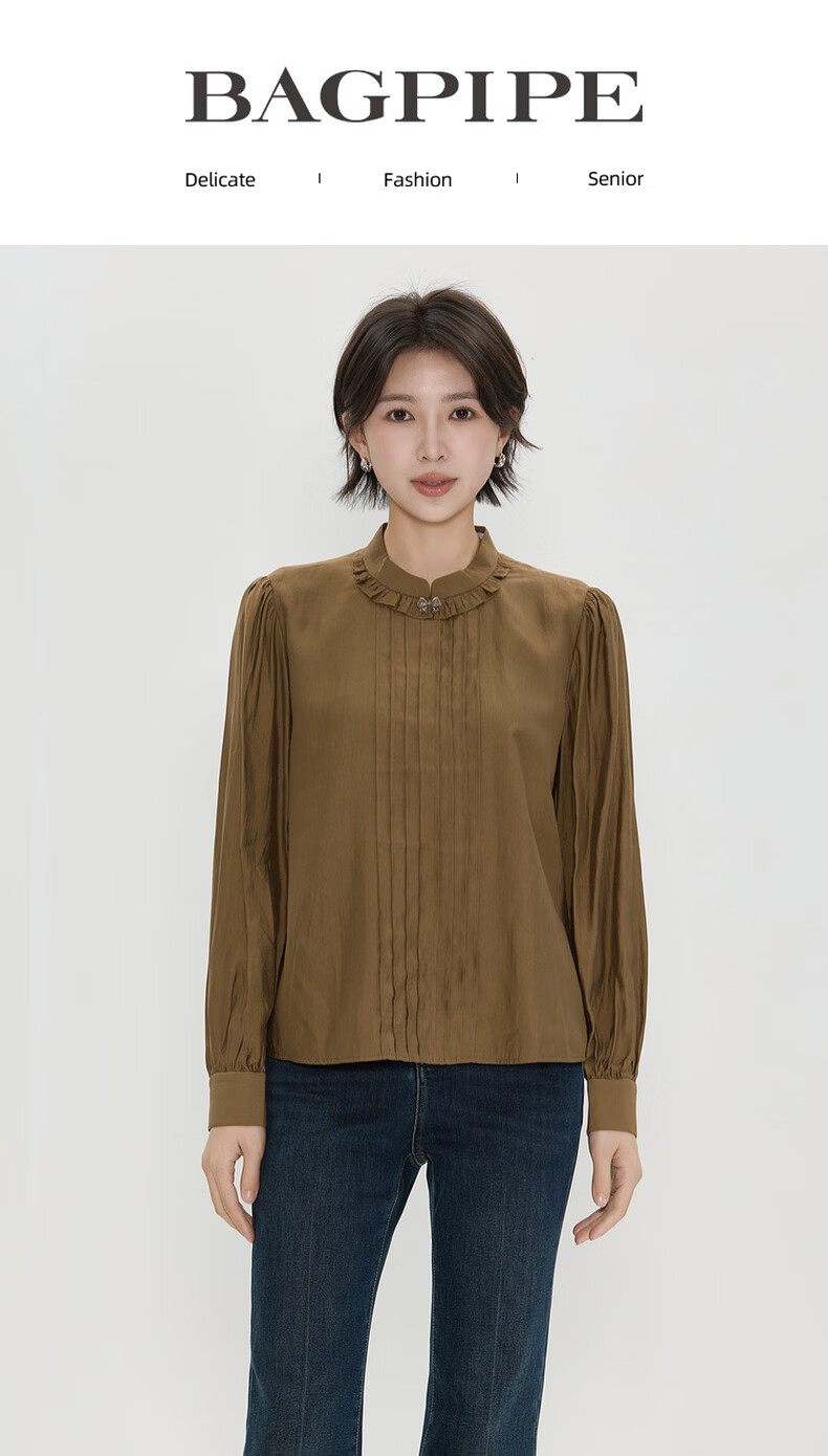 Bagpipe (Bagpipe) 2025 winter new style retro fashion regular casual style long-sleeved women's shirt versatile autumn and winter tops for women yellow green S 155