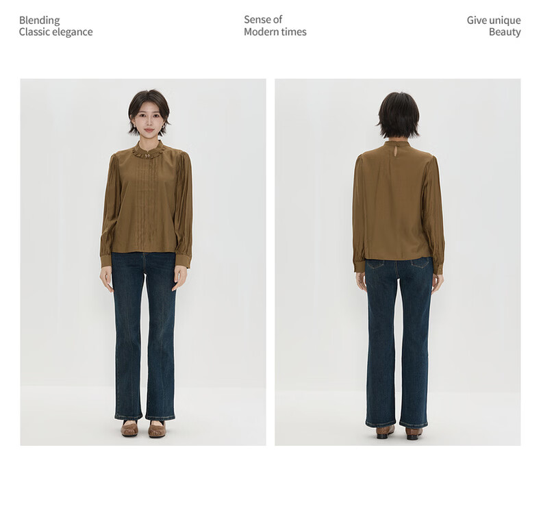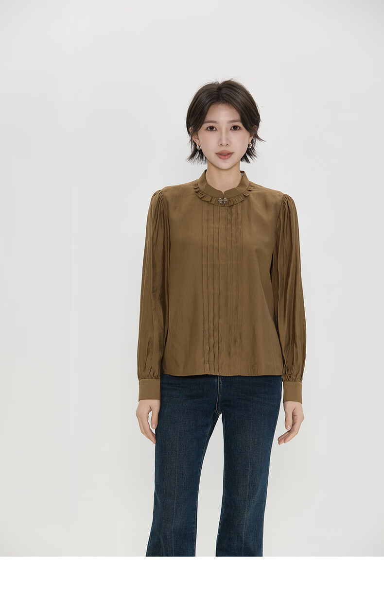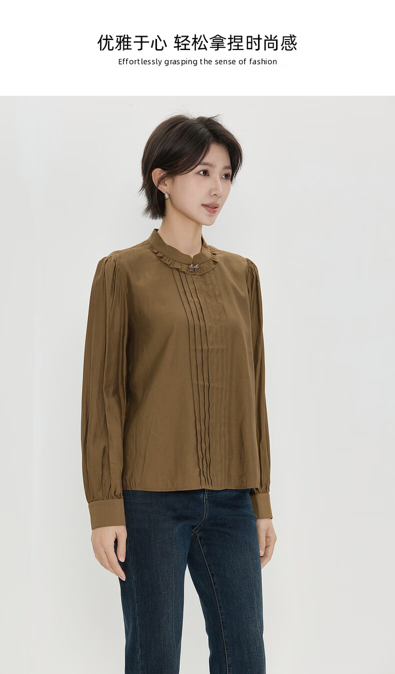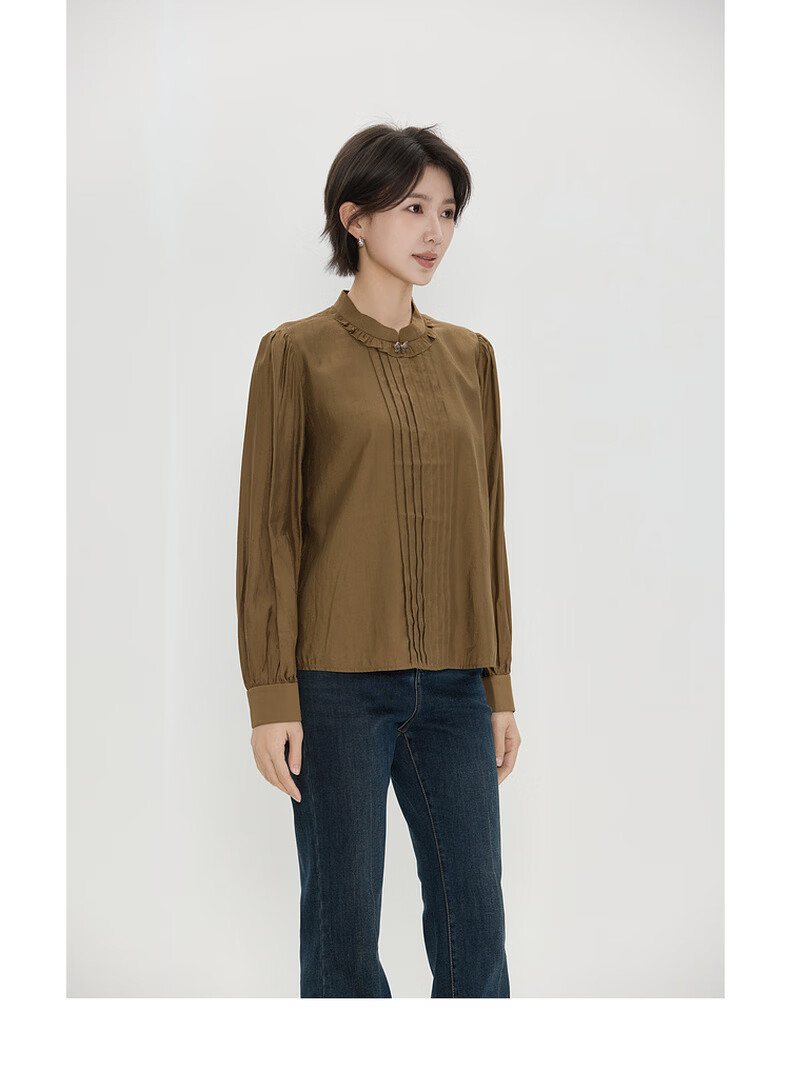Bagpipe (Bagpipe) 2025 winter new style retro fashion regular casual style long-sleeved women's shirt versatile autumn and winter tops for women yellow green S 155