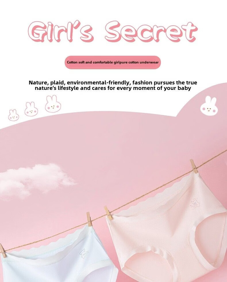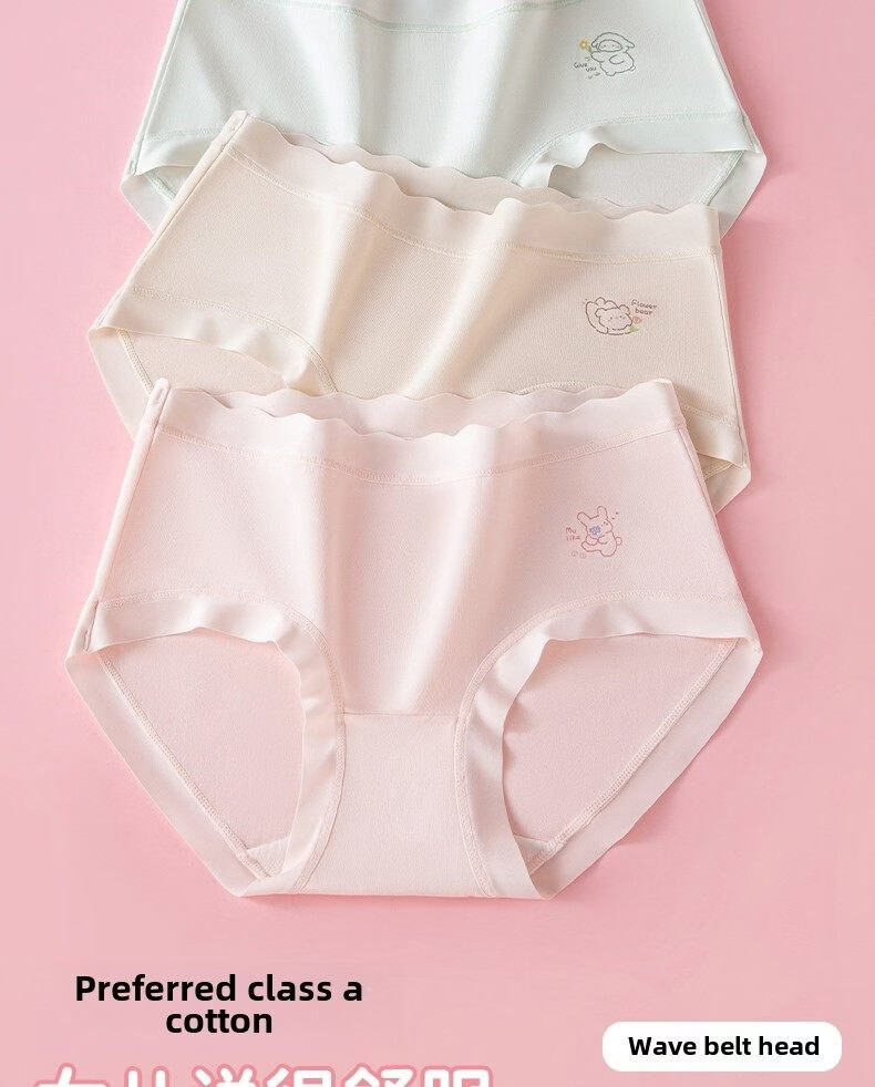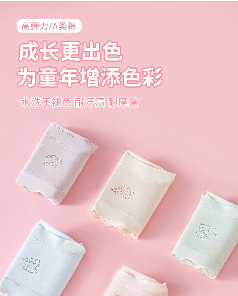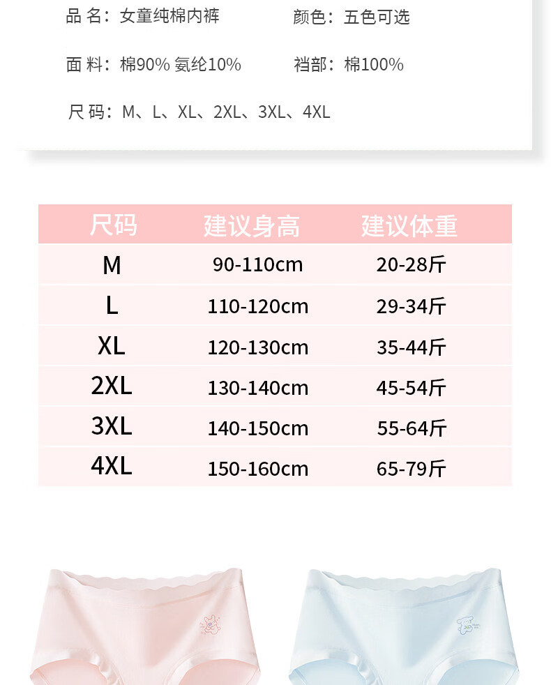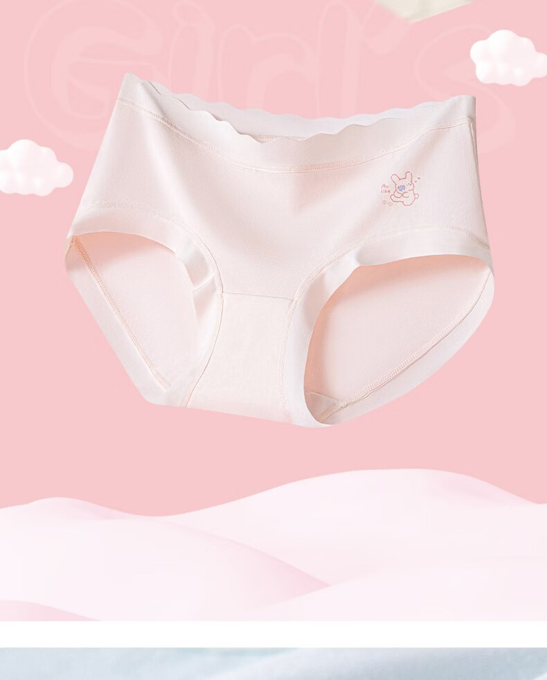 MiiOW children's underwear girls' butt-free 2025 new primary school students, middle and large children's antibacterial cotton crotch briefs, fresh pink-fresh blue-fresh green-fresh purple 4 pieces, one size fits all, M recommended (90-110cm 20-28Jin Jin equals 0.5 kg)