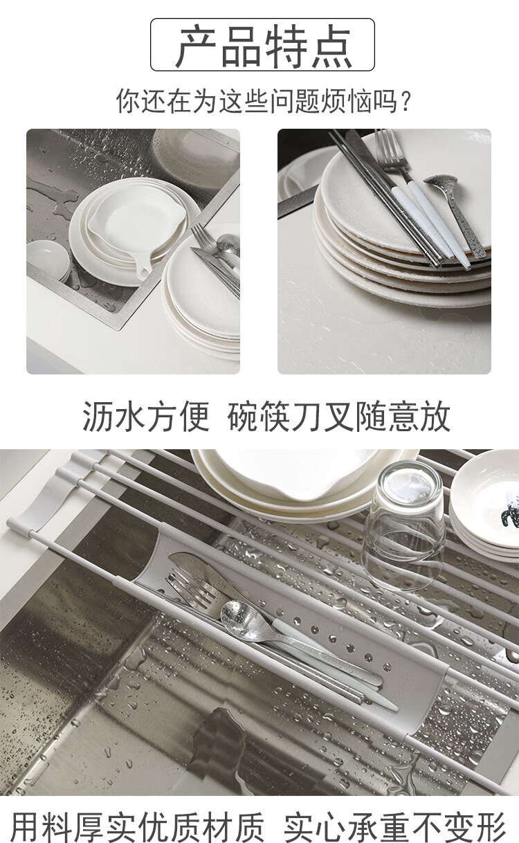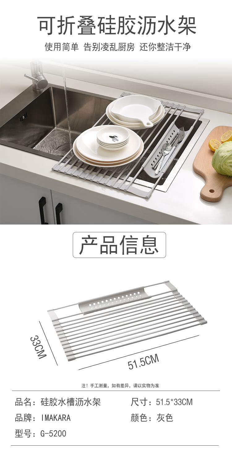 Imakara kitchen dishware and chopsticks drain rack sink side drain basket drainer dishwashing sink dishwasher rack dish rack artifact foldable telescopic sink rack - silicone non-slip