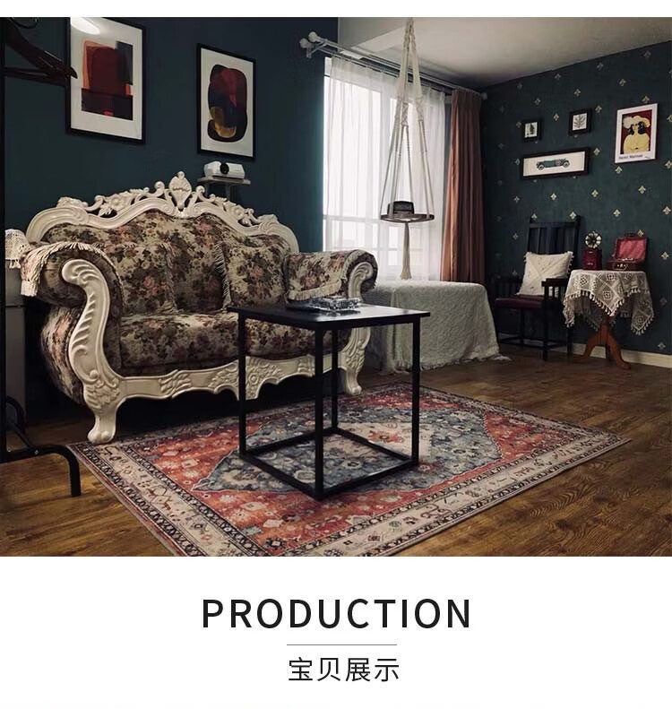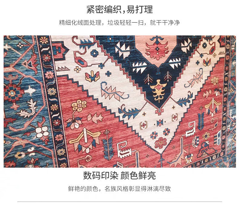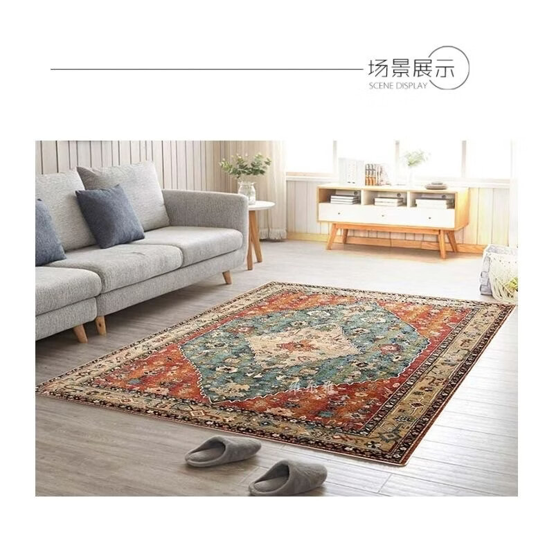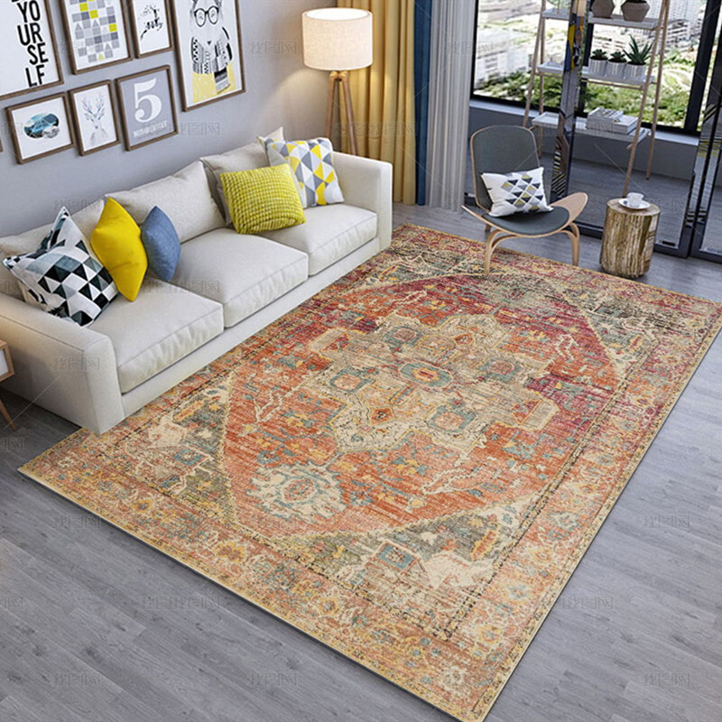 Fantasy Nordic Retro Carpet Bedroom Living Room Sofa Coffee Table Mat Bohemian Ethnic Style Home Bedside Blanket Royal Blue 140x200cm (Small Living Room Carpet)