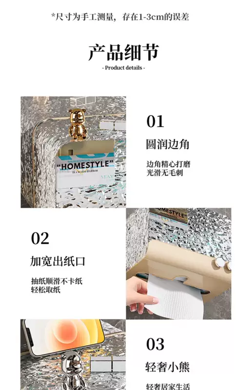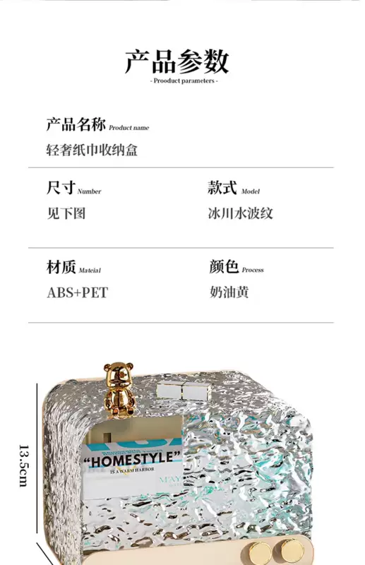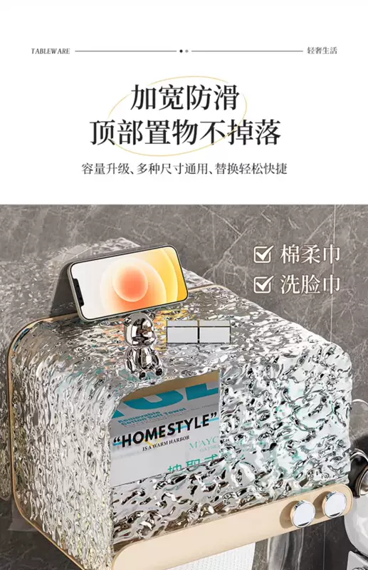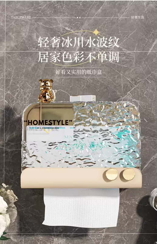 Yusenyi face towel storage box wall-mounted tissue box high-end light luxury style home living room bathroom toilet paper box ordinary thin tissue box