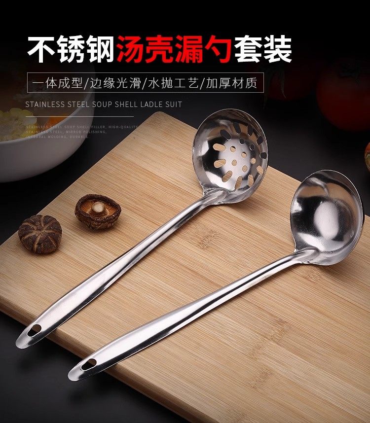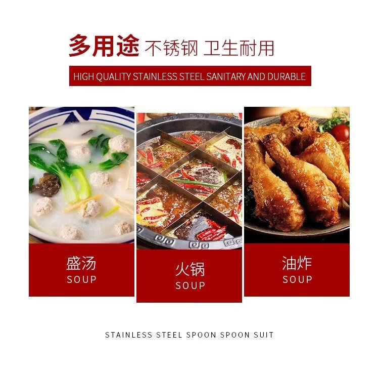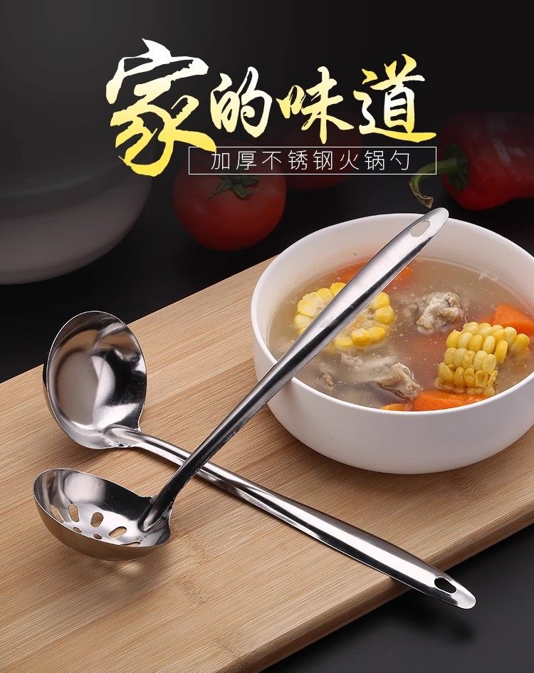 Li Shenchang's thickened stainless steel soup spoon colander large and small soup and porridge long-handled spoon household kitchen hot pot 1 hot pot spoon