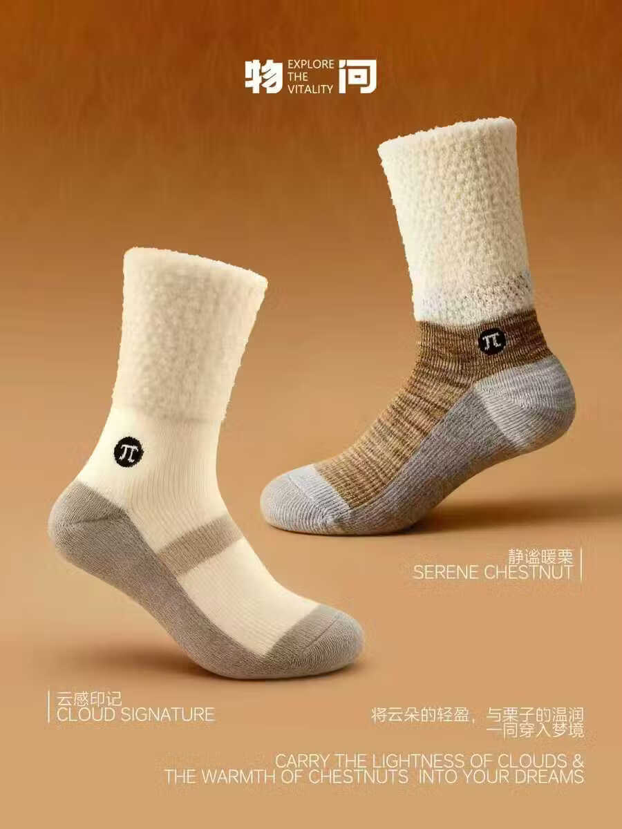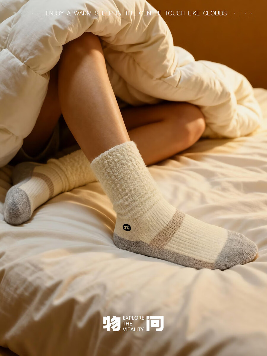 Wuwen Autumn and Winter Wool Thickened Sleeping Socks Warm and Unrestricted Home Socks Comfortable and Breathable Postpartum Socks Sleeping Socks Milky White One Size