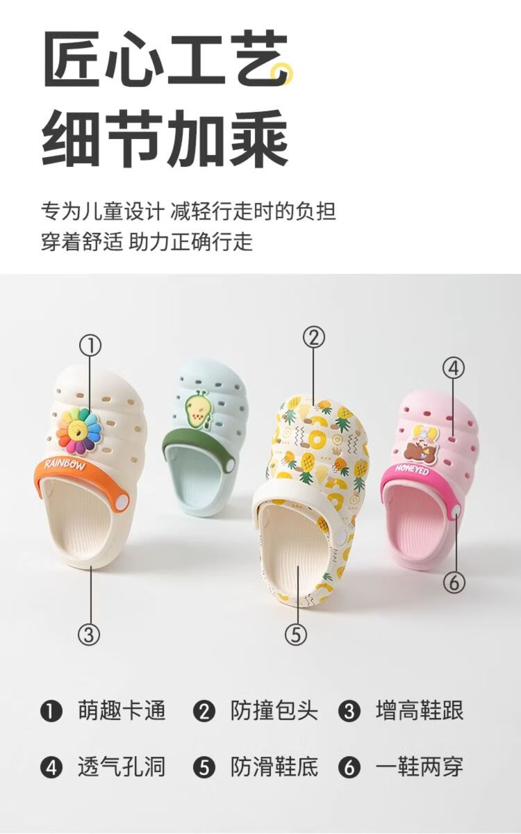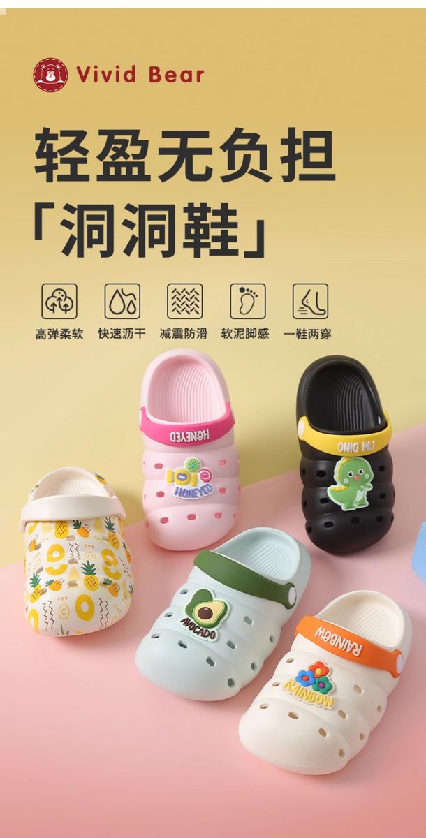 Kids King VividBear children's baby summer sandals home slippers out caterpillar EVA hole shoes black 10.5 17 size 1718