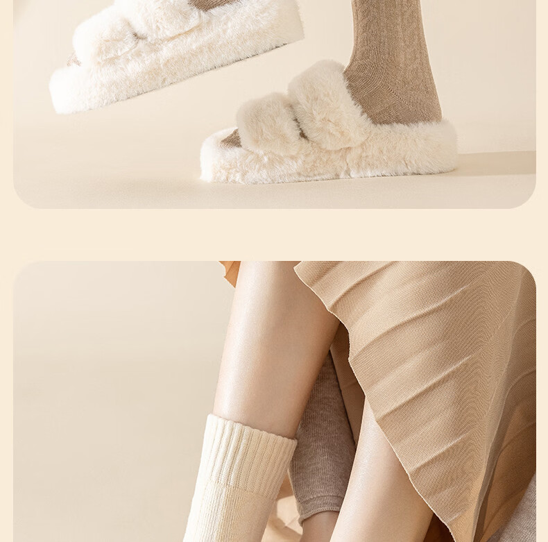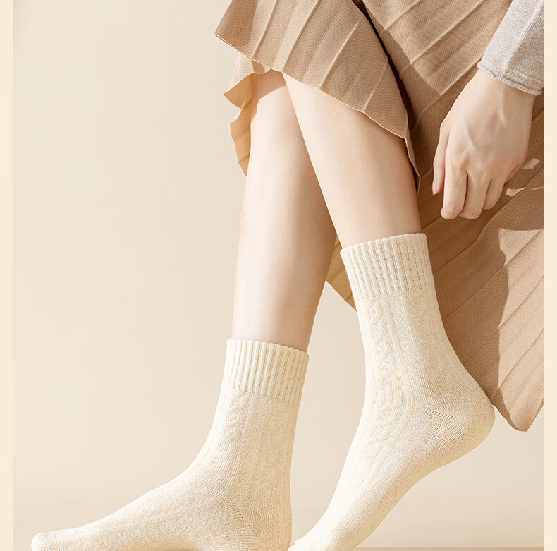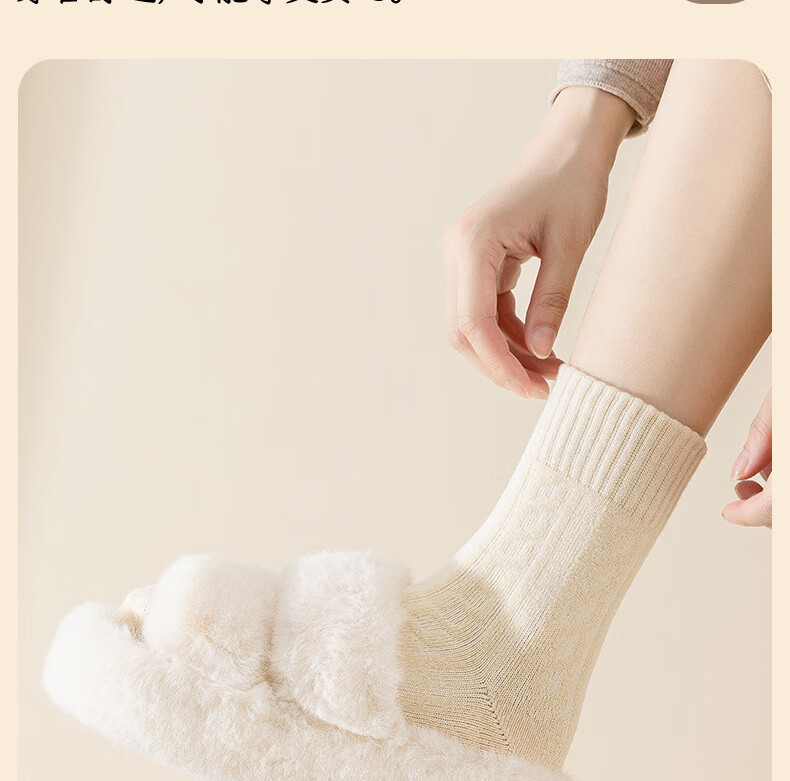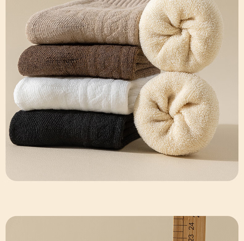 Socks for women in winter, plus velvet and thickened, warm mid-calf cotton socks, 2025 new popular autumn and winter terry confinement stockings, 5 pairs/thickened warm terry, white, beige, khaki, coffee, black, one size fits all (3440 yards), collect and purchase to enjoy priority delivery
