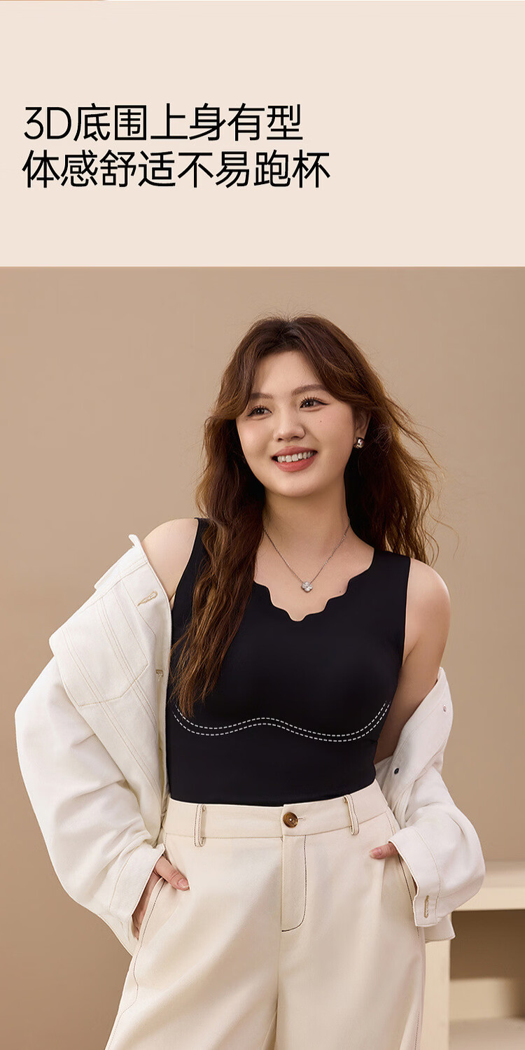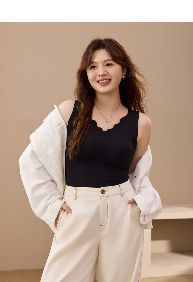 Comes with chest pad vest sling plus size women's soft skin-friendly bottoming shirt fat mm autumn new style black XL /2