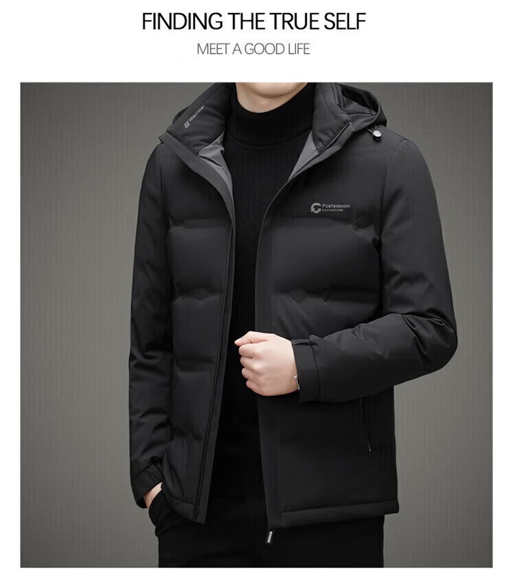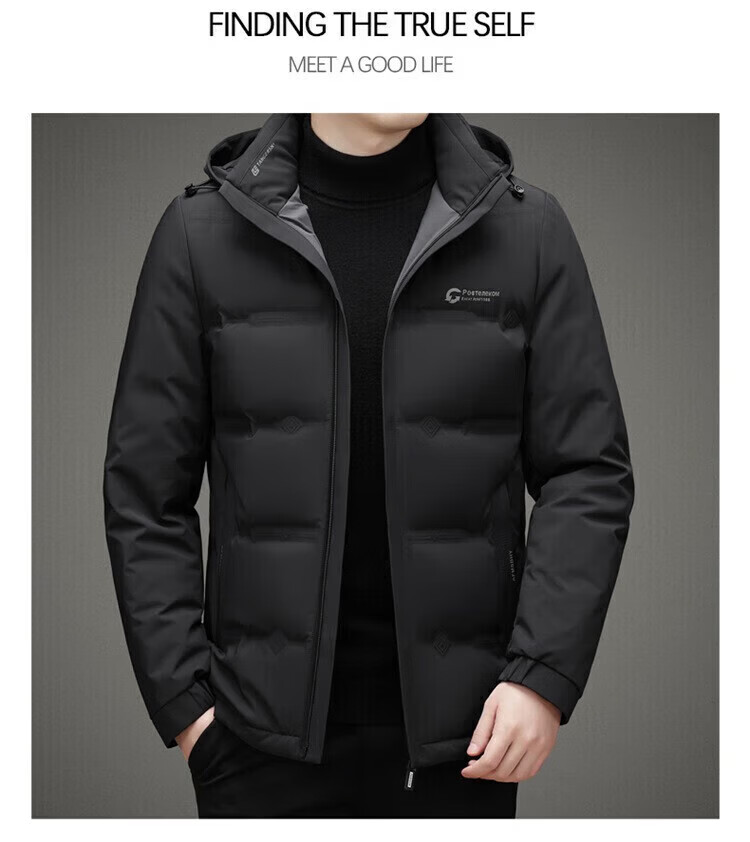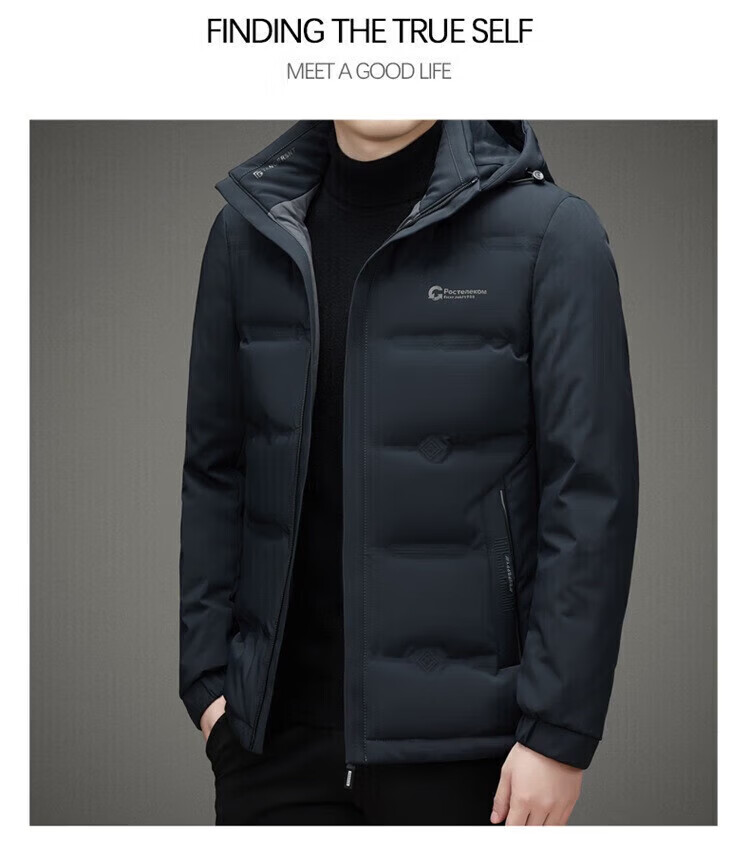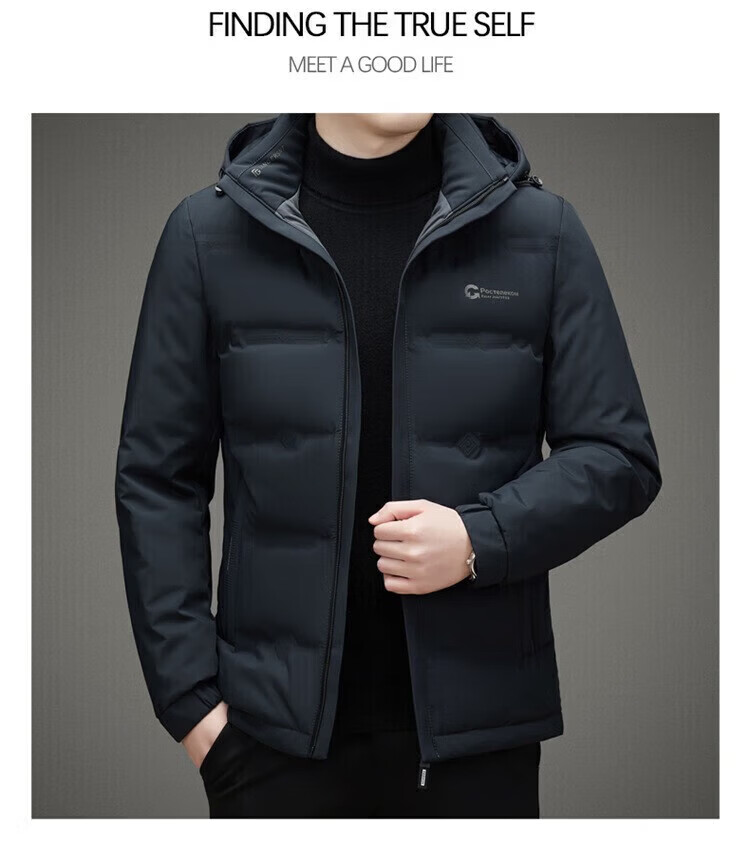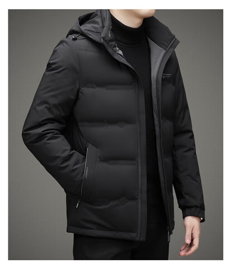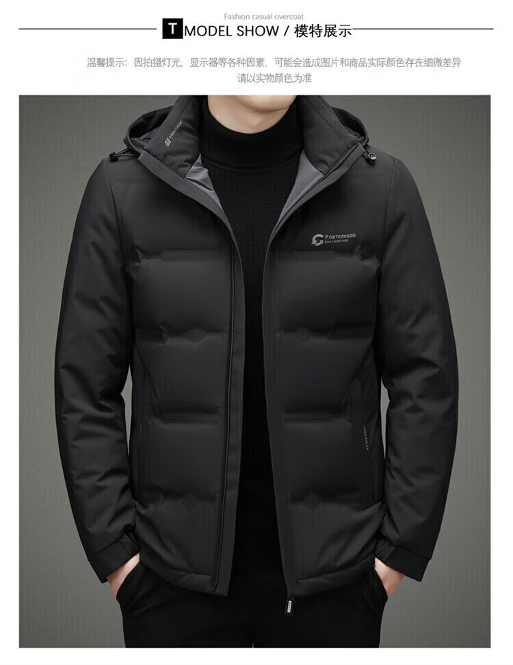 LILANZ down jacket men's removable hood winter daddy thickened jacket autumn and winter new men's down top black 14XL (180)