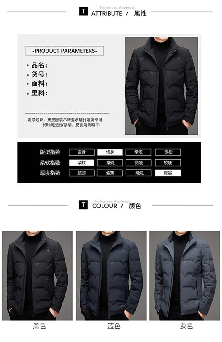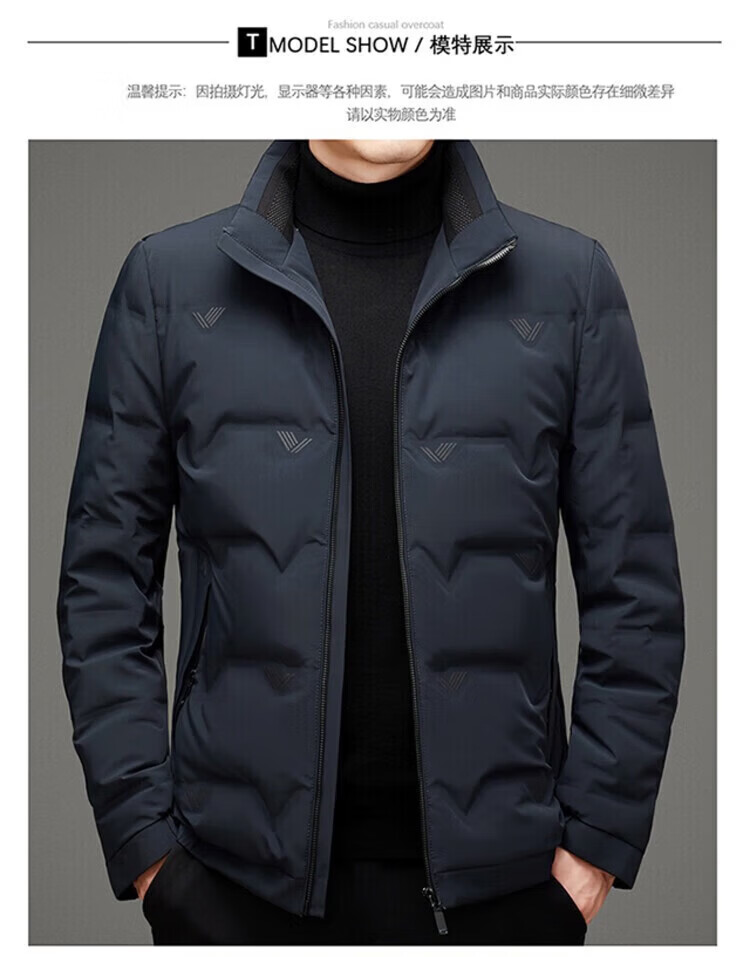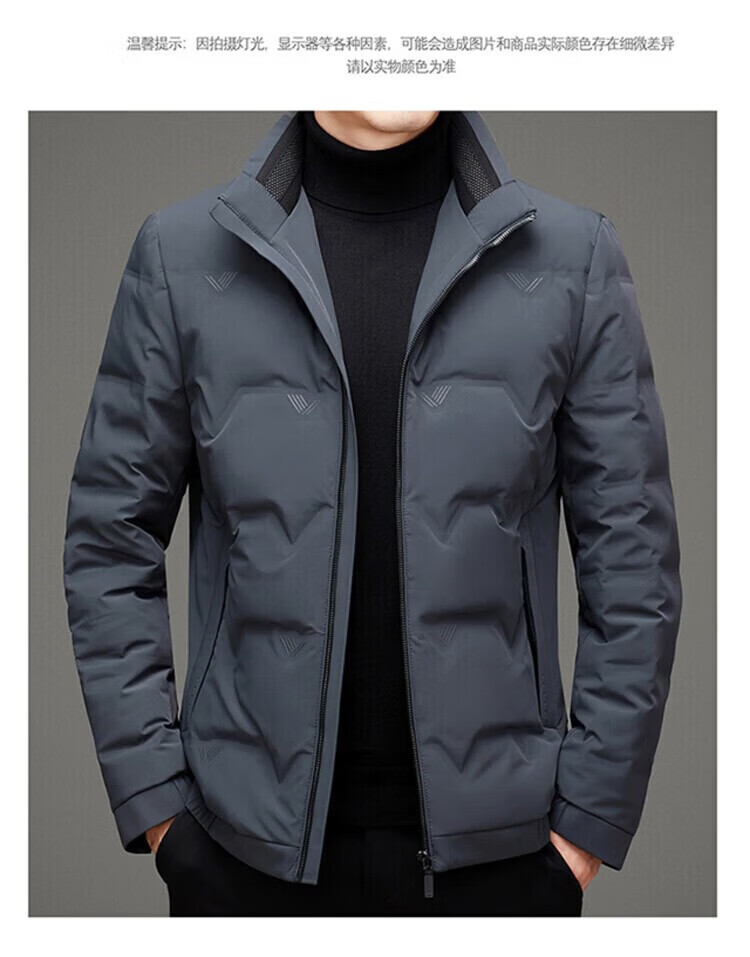 利郎(LILANZ)男装鹅绒服冬季高端白鹅绒立领加厚保暖羽绒服短款外套男中年 蓝色 2XL (185) 建议150-164斤