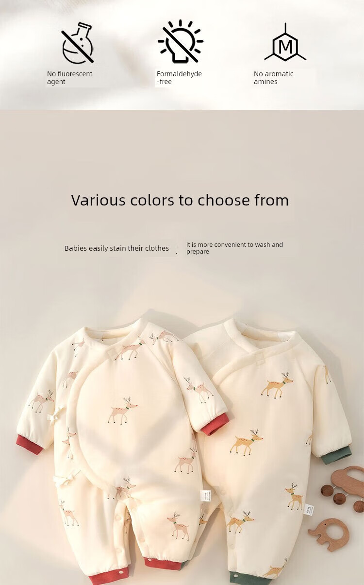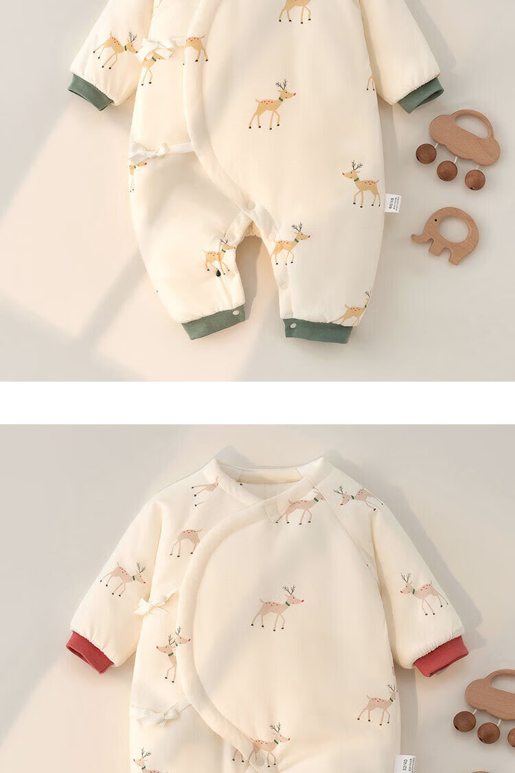 YEE SI Ying's same style purchase product newborn cotton coat, autumn and winter quilted thickened warm baby jumpsuit, monk turmeric deer (thickened 180g weight) 52 cm for pregnancy or postpartum baby