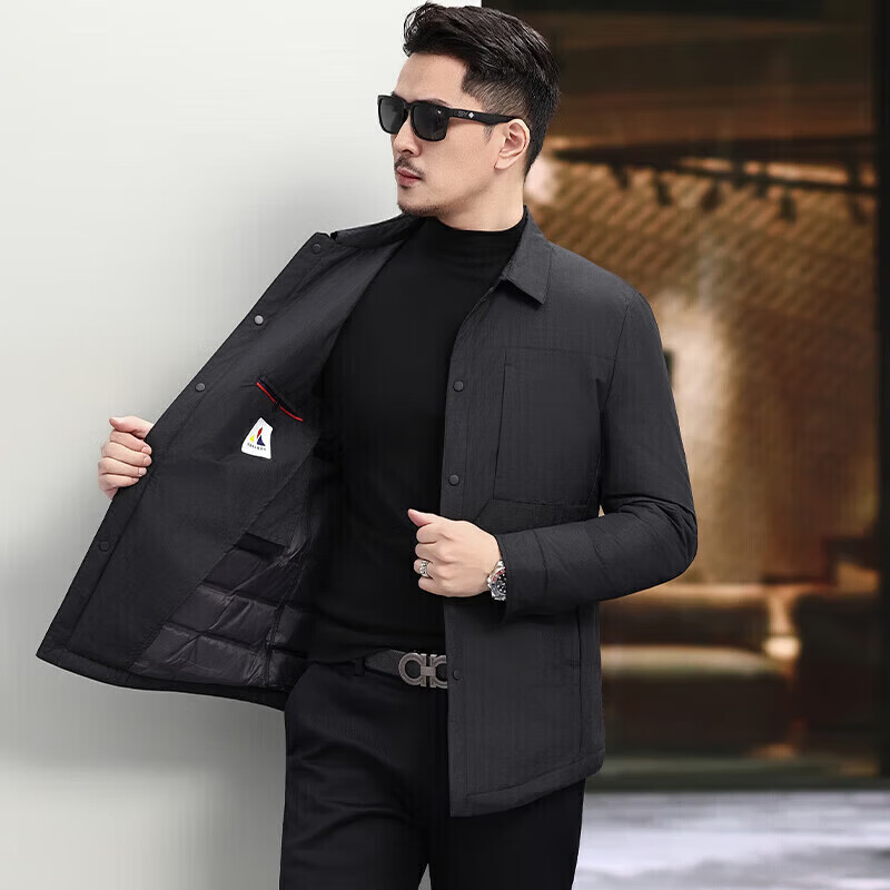 LILANZ Autumn and Winter New Business Down Jacket Men's Lightweight Commuting Warm Lapel White Duck Down Jacket Thick Jacket Black M