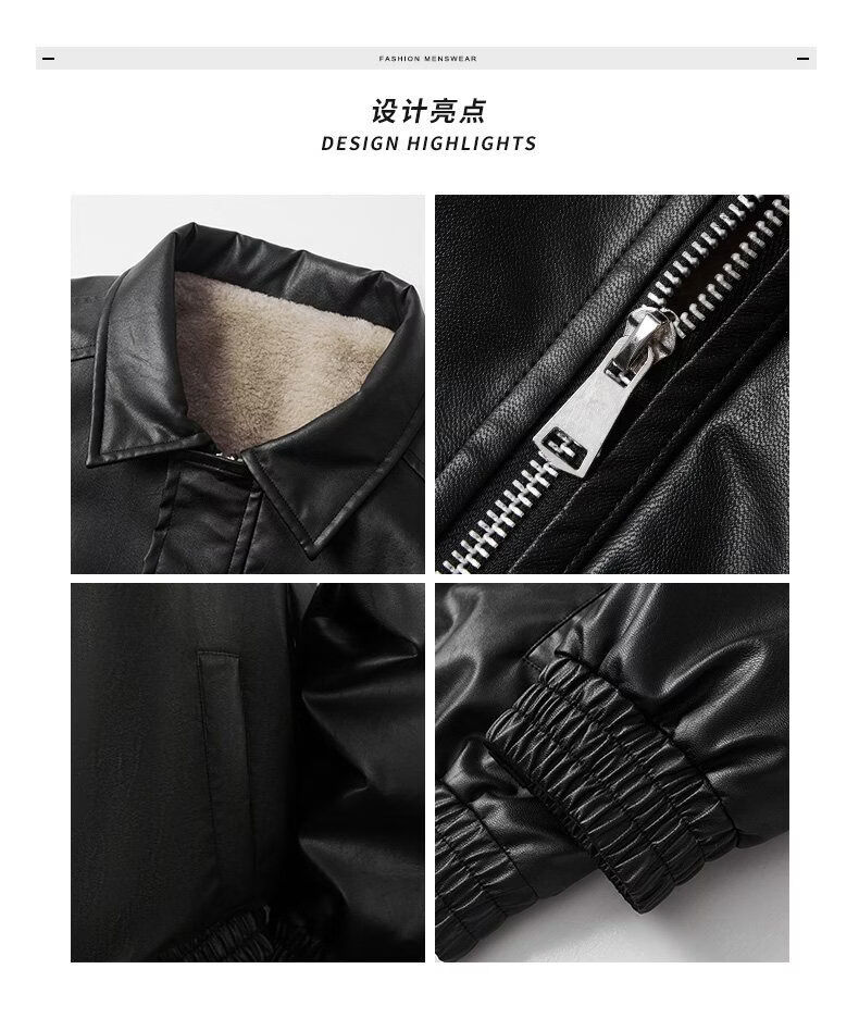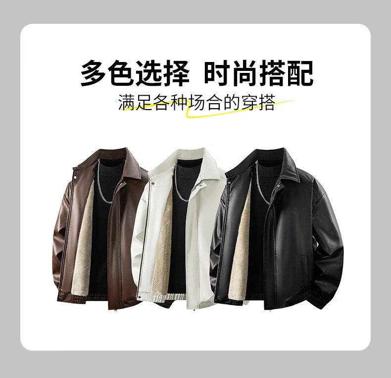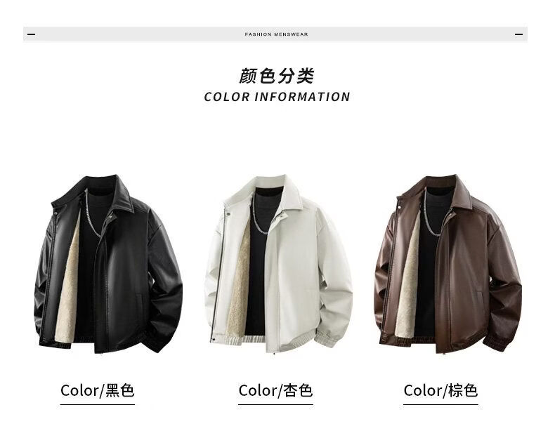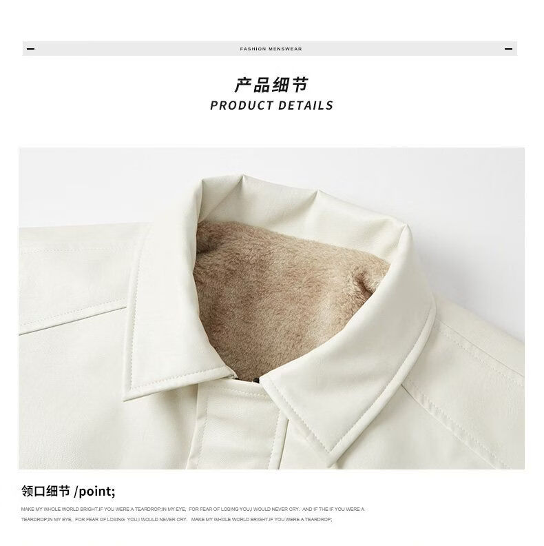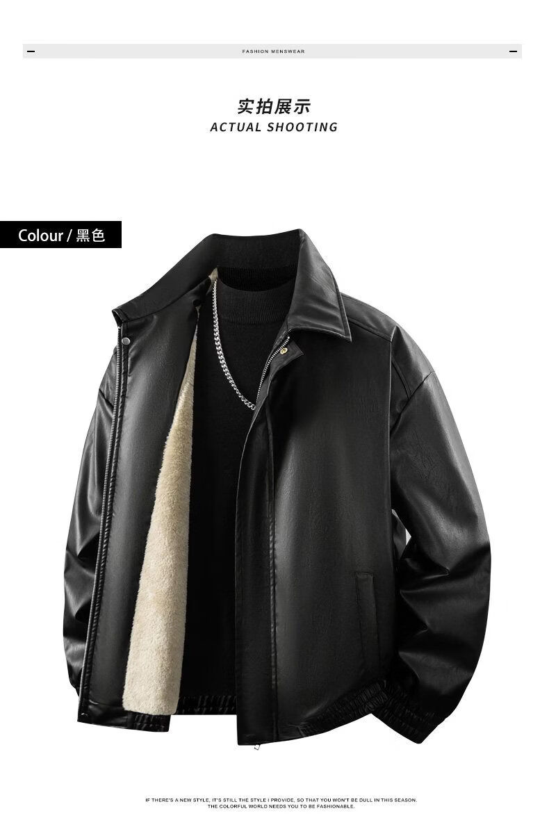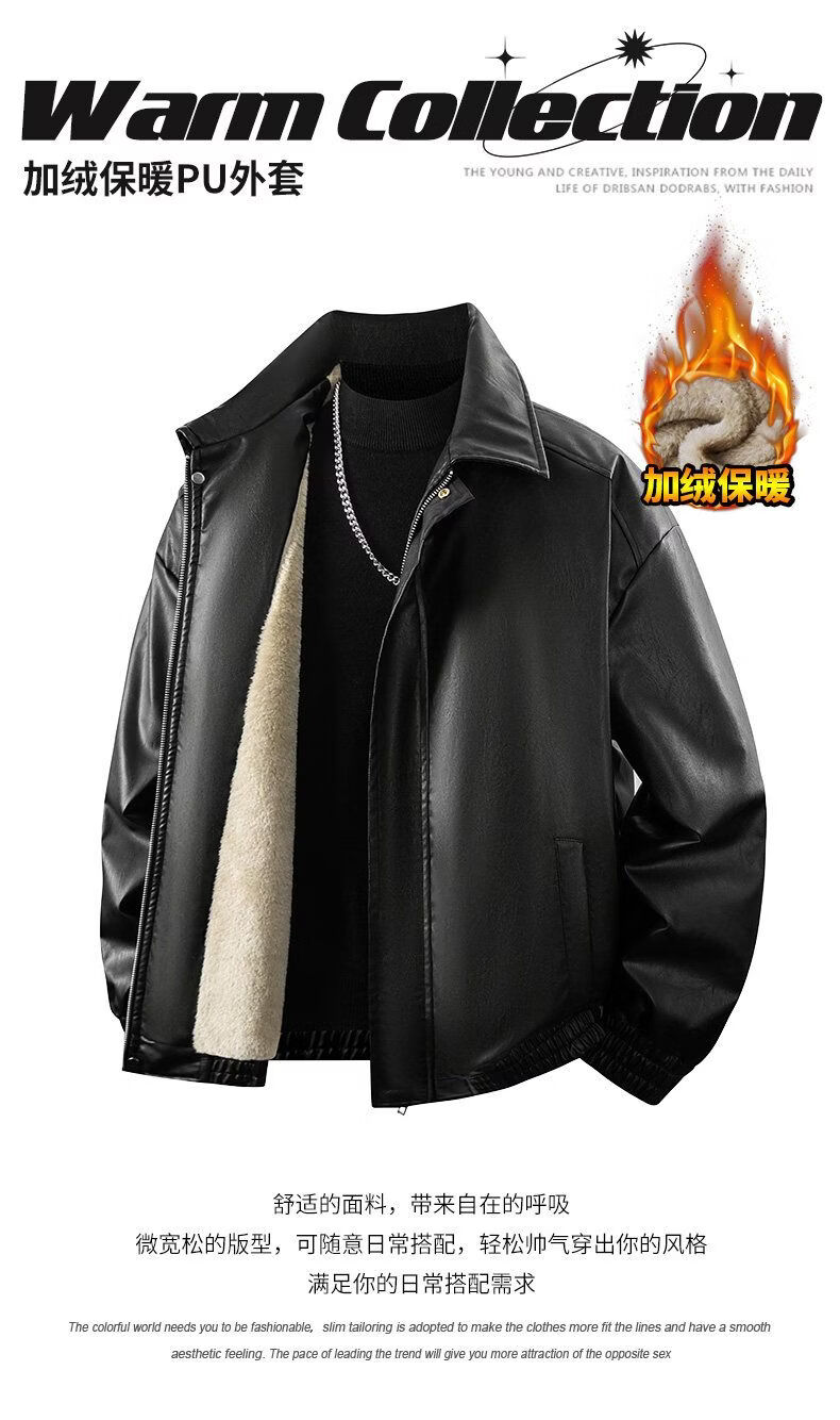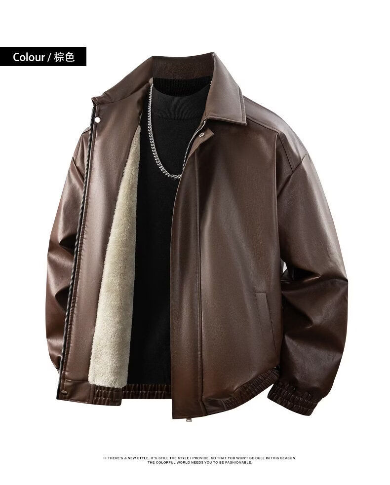 JEEP SPIRIT элитная зимняя кожаная мужская куртка с бархатом и утолщенным теплым лацканом, ветро- и морозоустойчивая кожаная куртка в мотоциклетном стиле, топ коричнево-зимний плюс бархат M (вес 90-125ЦзиньЦзин равен 0,5кг)