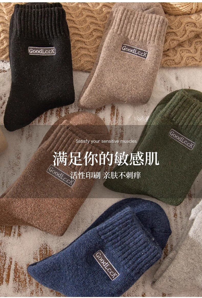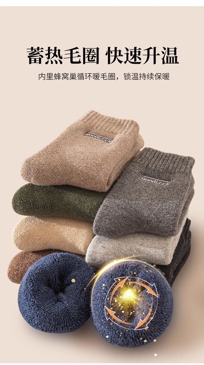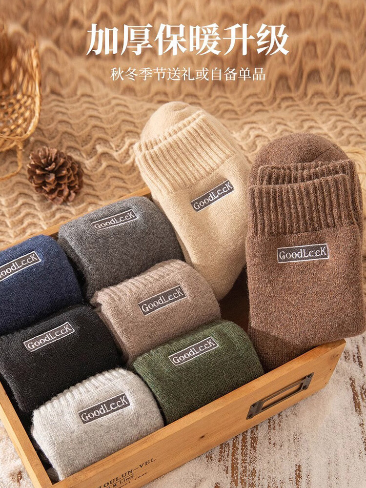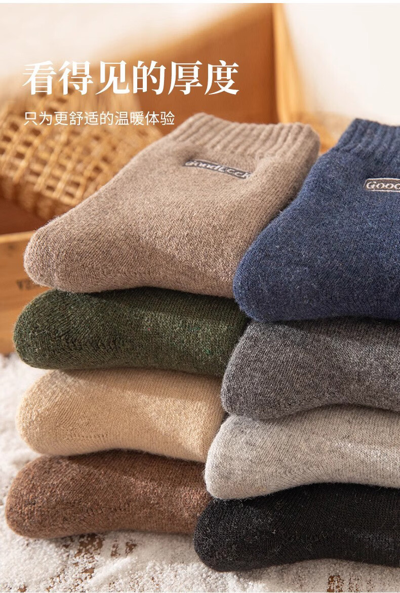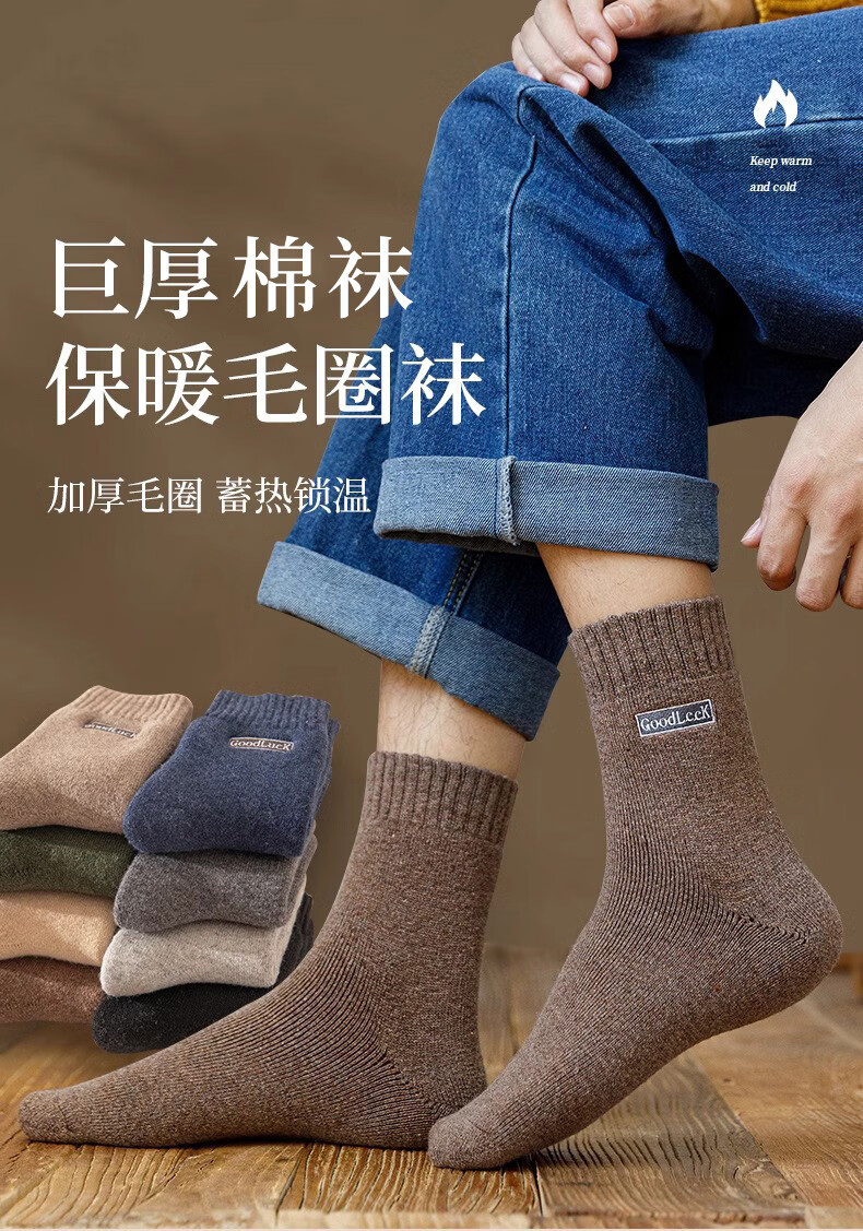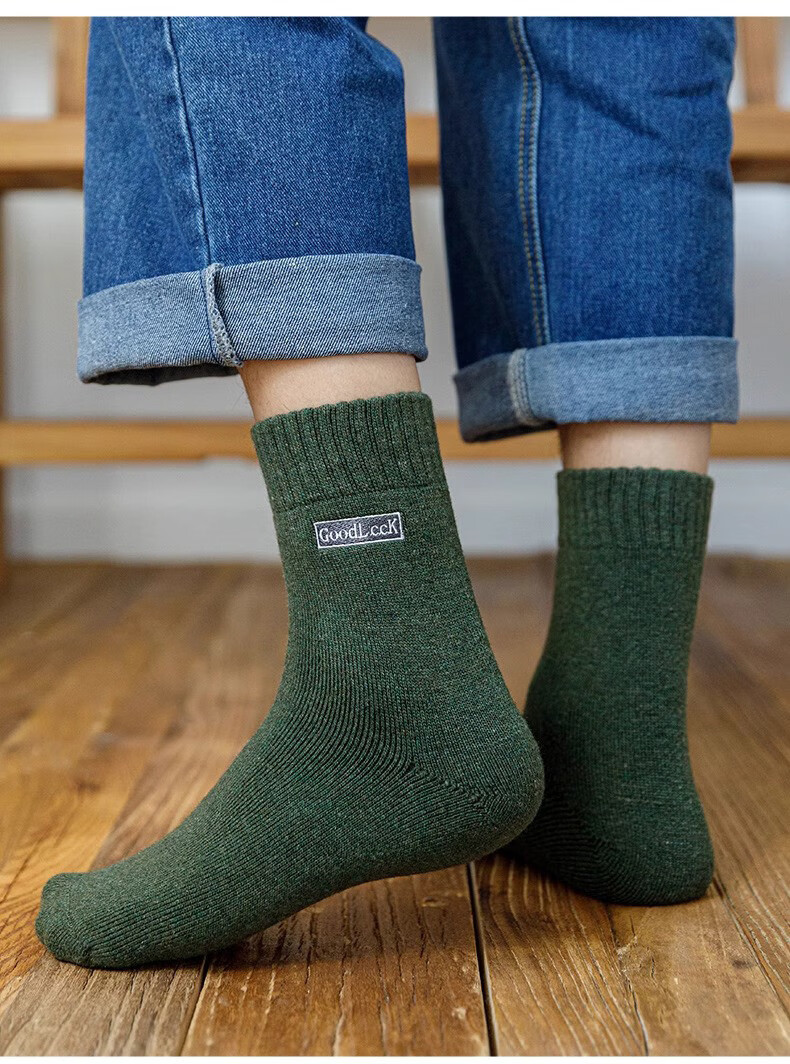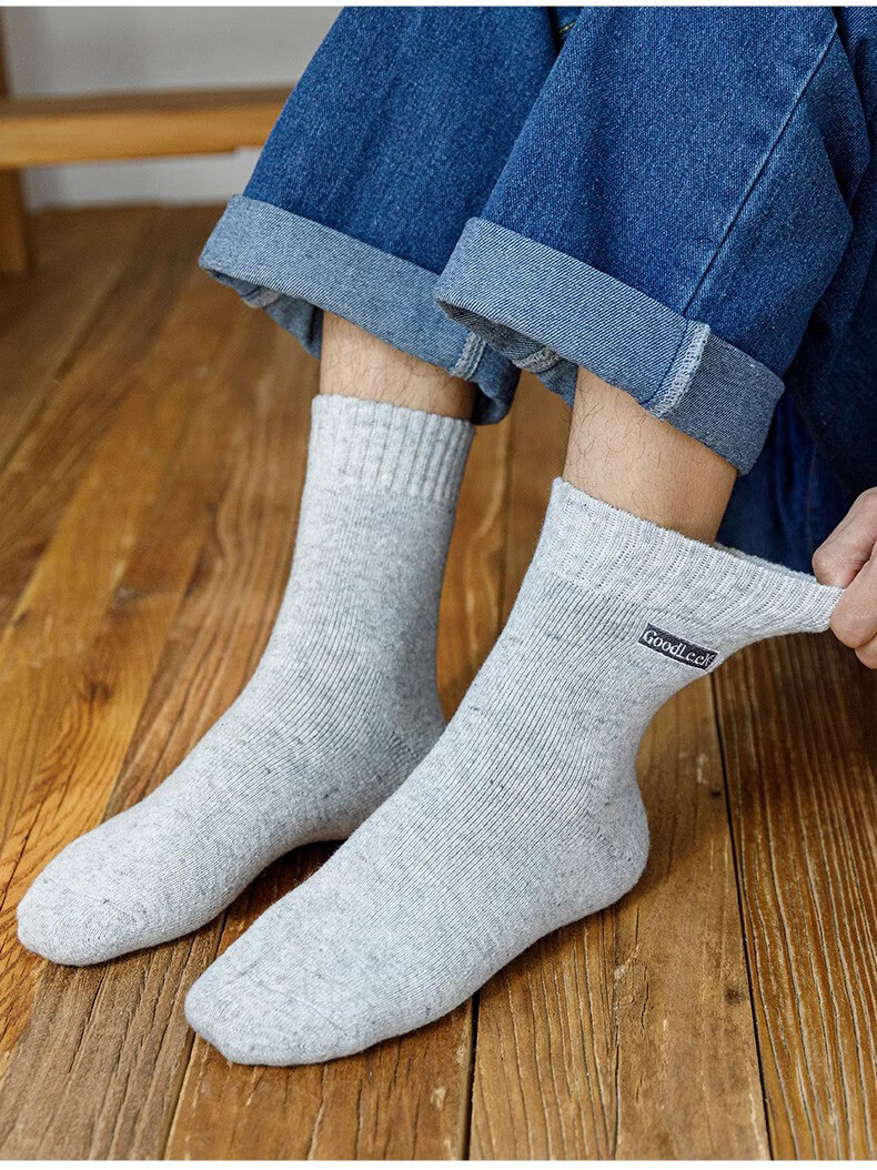 Zhuji Socks Men's Winter Thickened Terry Socks Pure Cotton Deodorant Mid-Tube Socks Plus Velvet Floor Socks Sleep Socks Fever 4 Pairs Light Gray Dark Gray Black Blue One Size