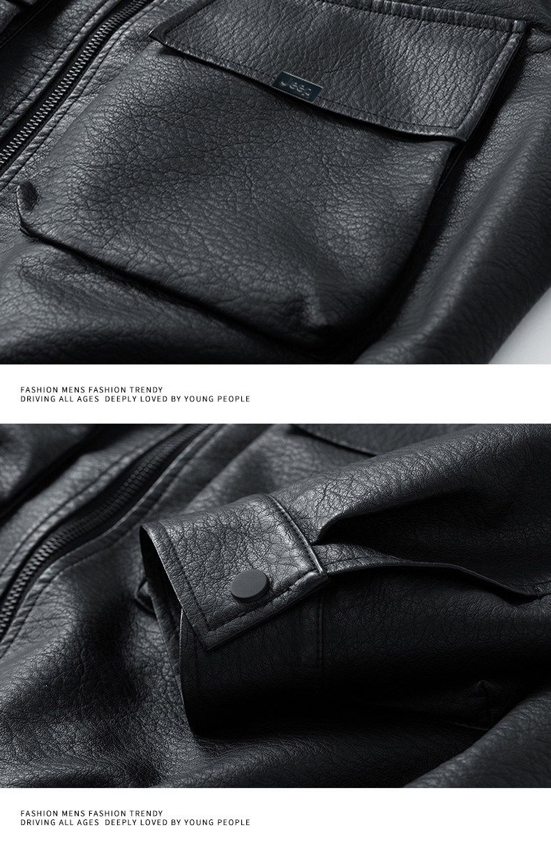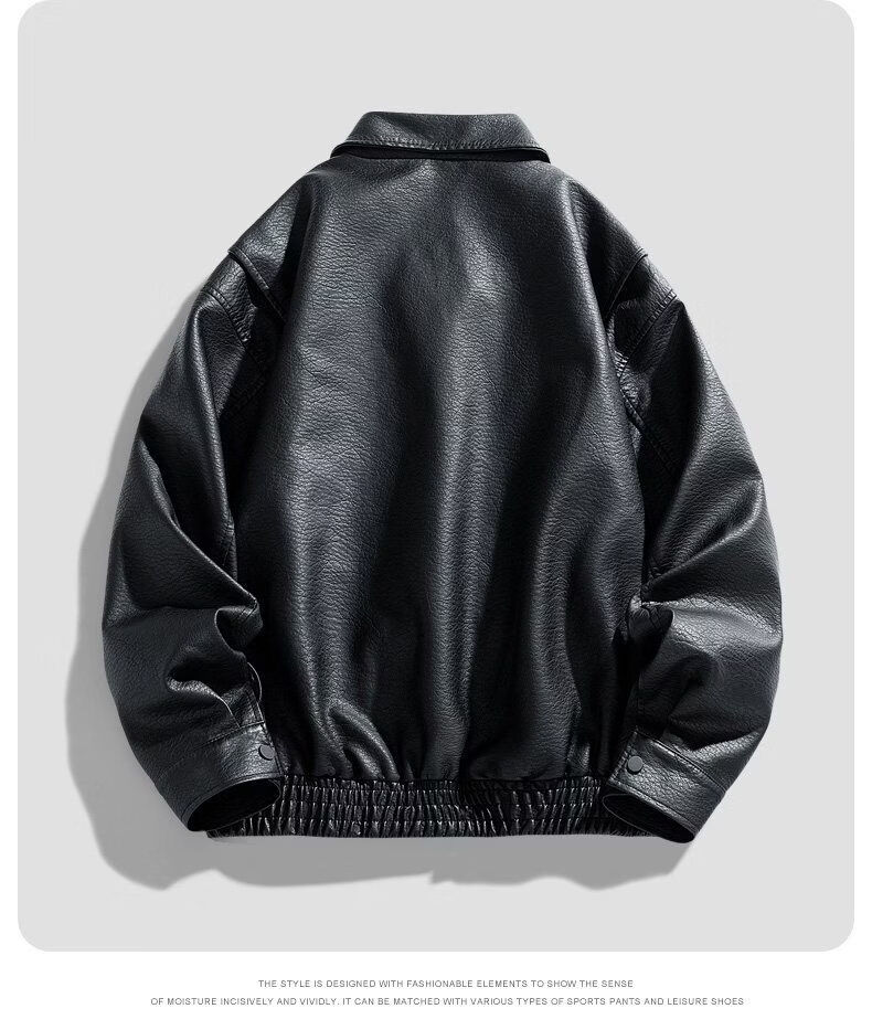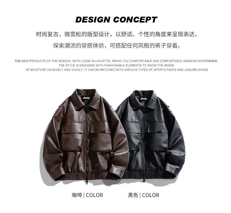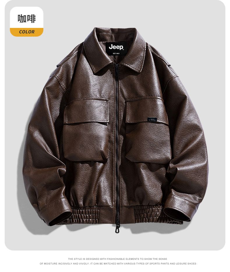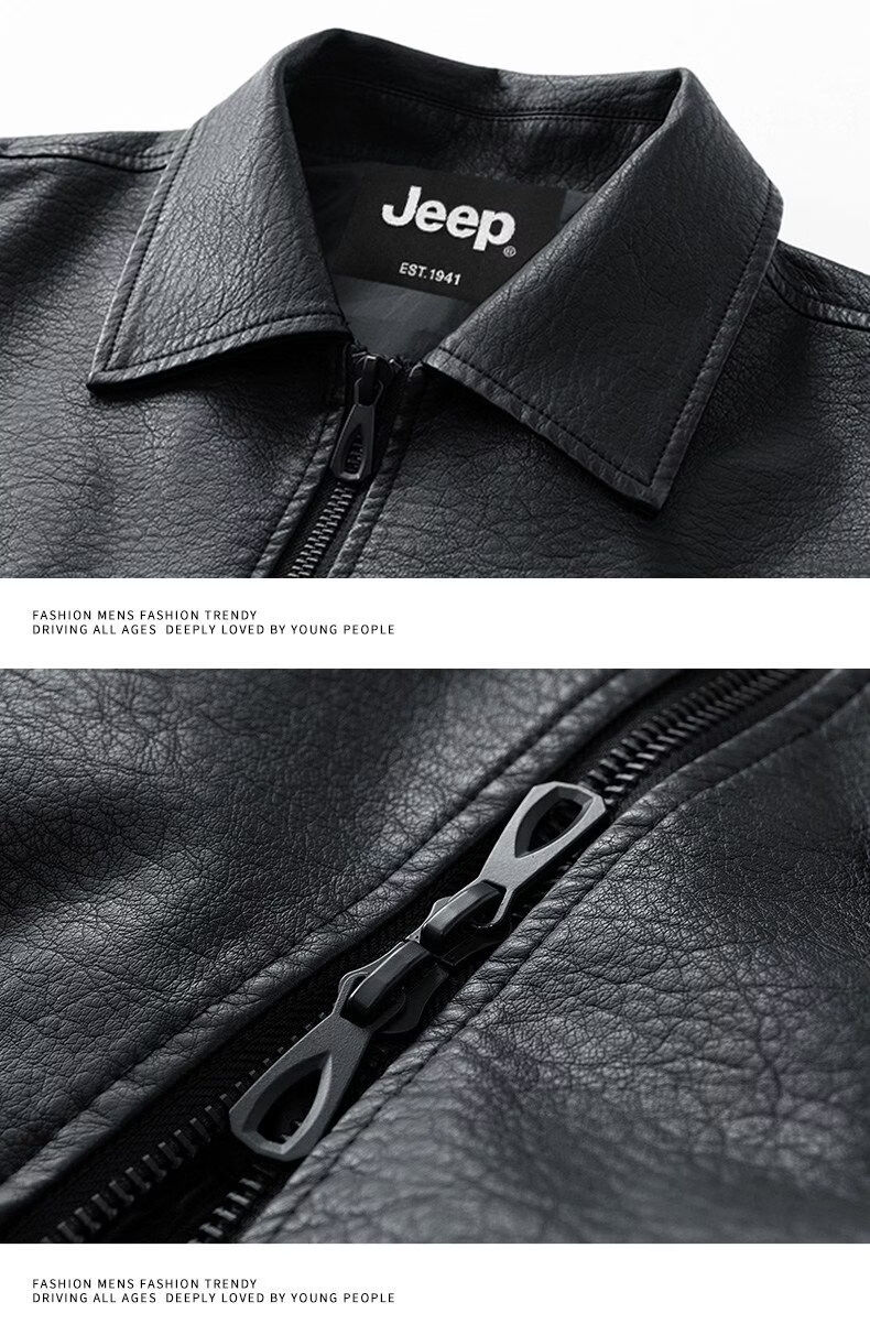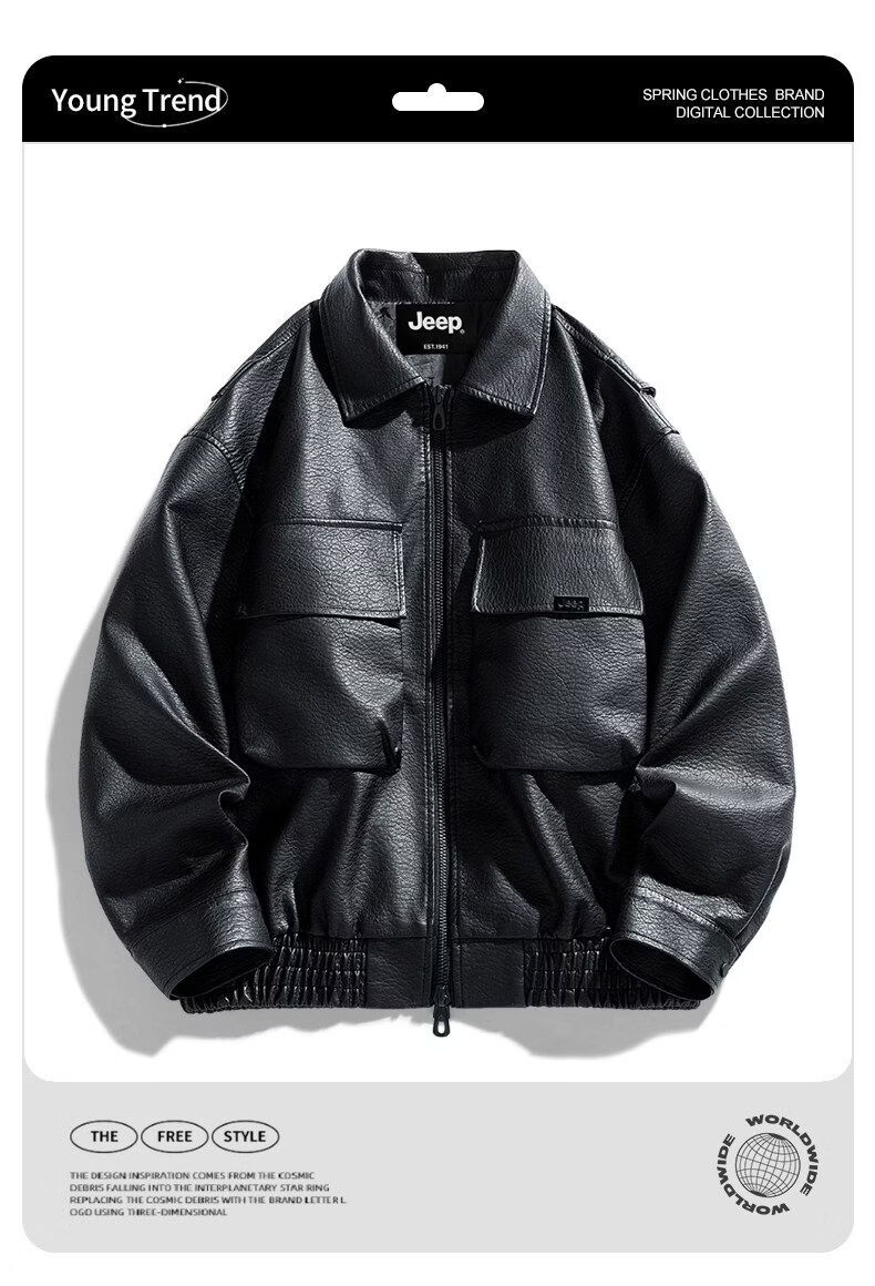 JEEP SPIRIT高端美式PU皮衣外套男款季2025新款宽松休闲百搭机车服夹克 黑色  M 120-150斤