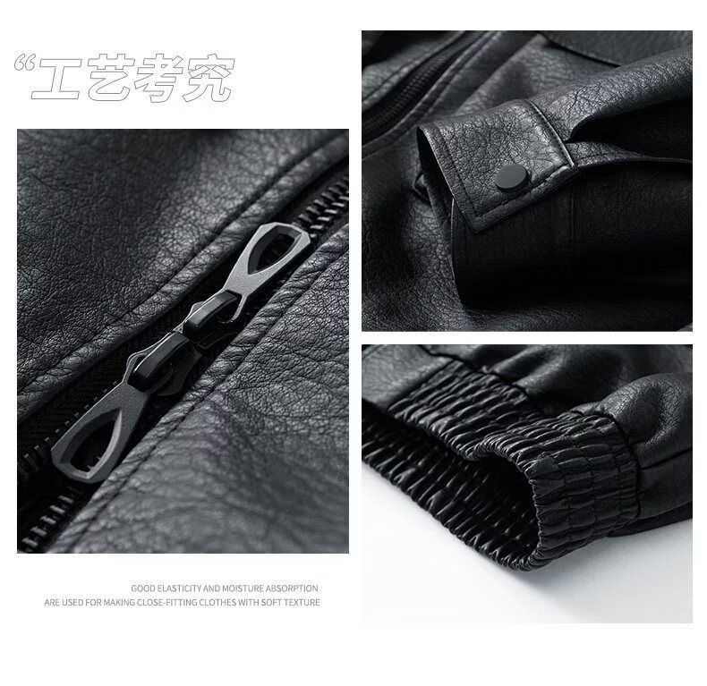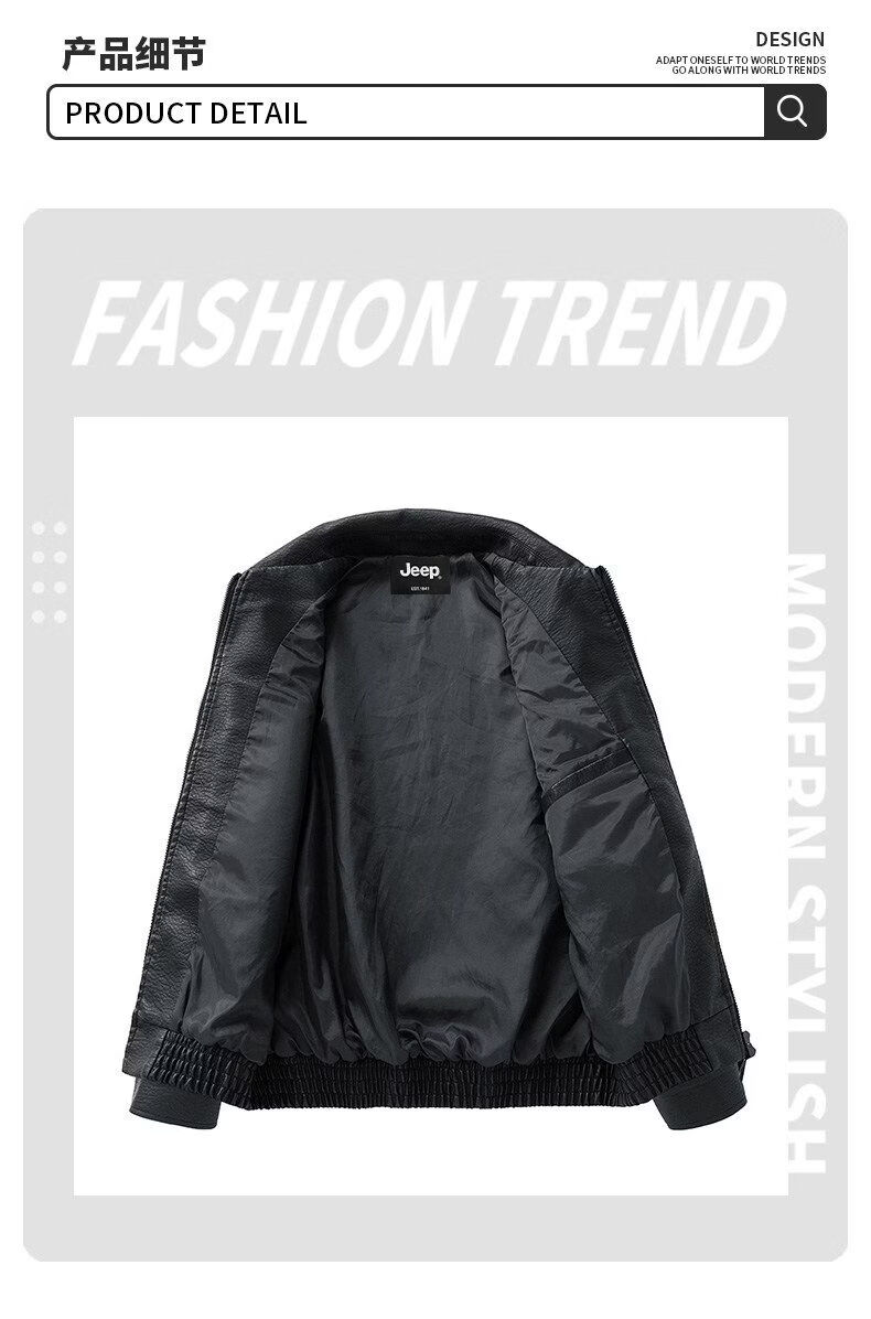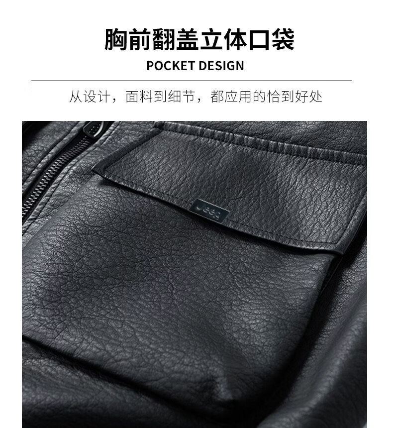 JEEP SPIRIT高端美式PU皮衣外套男款季2025新款宽松休闲百搭机车服夹克 黑色 M 120-150斤