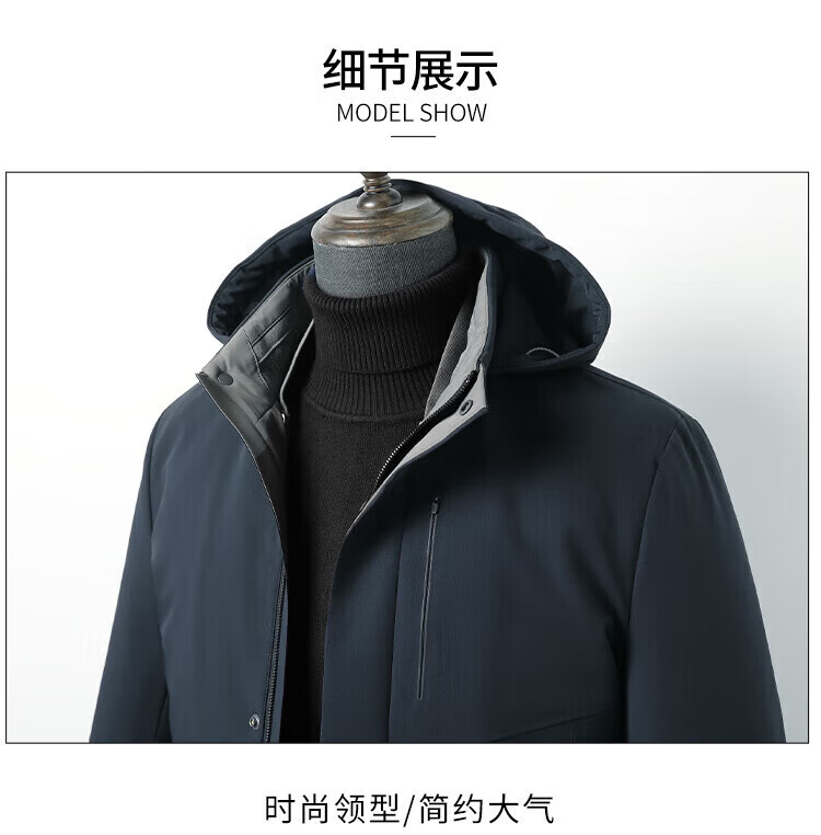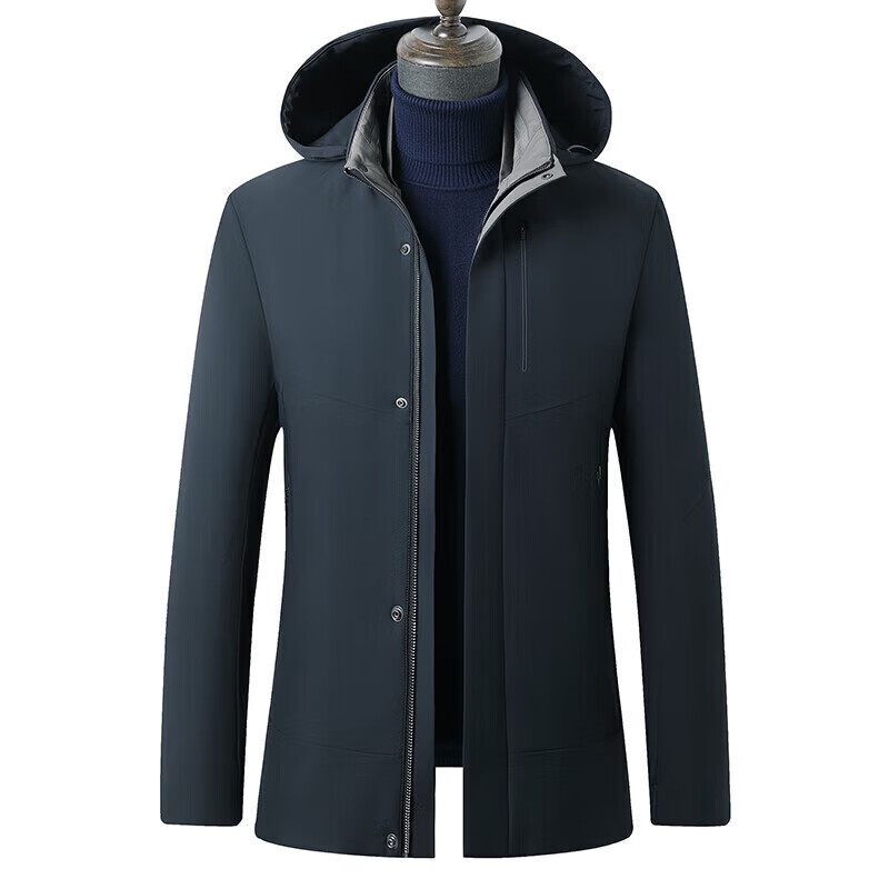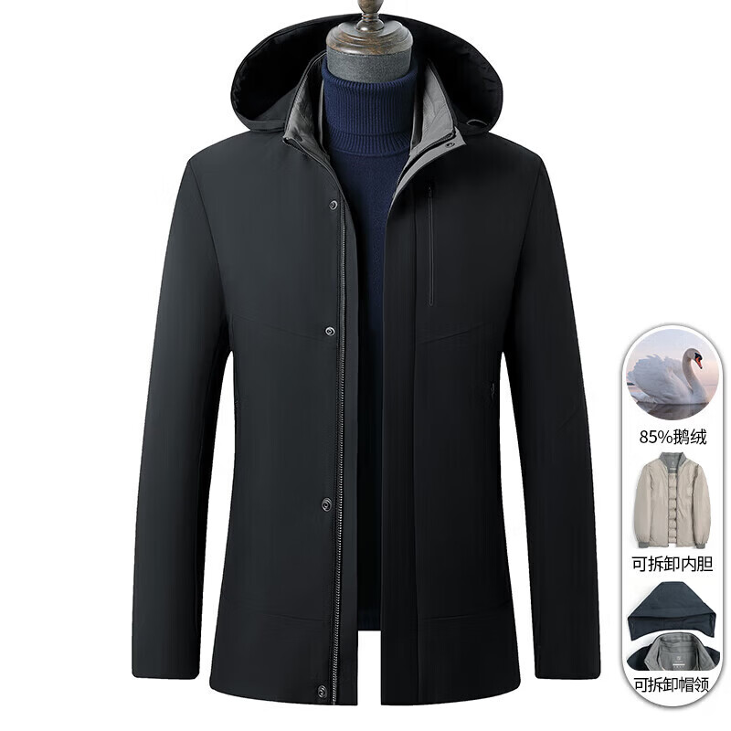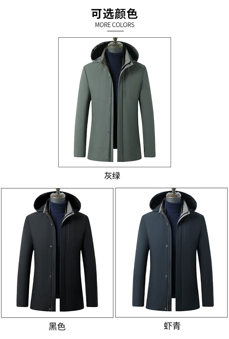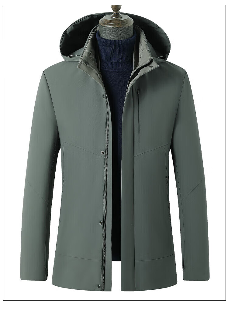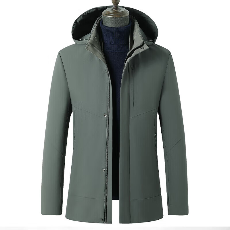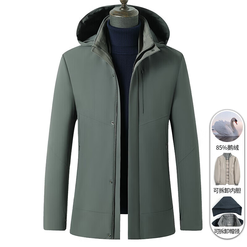 利郎(LILANZ)鹅绒羽绒服男士连帽中长款商务休闲冬季新款加厚爸爸冬装外套 灰绿 M 170