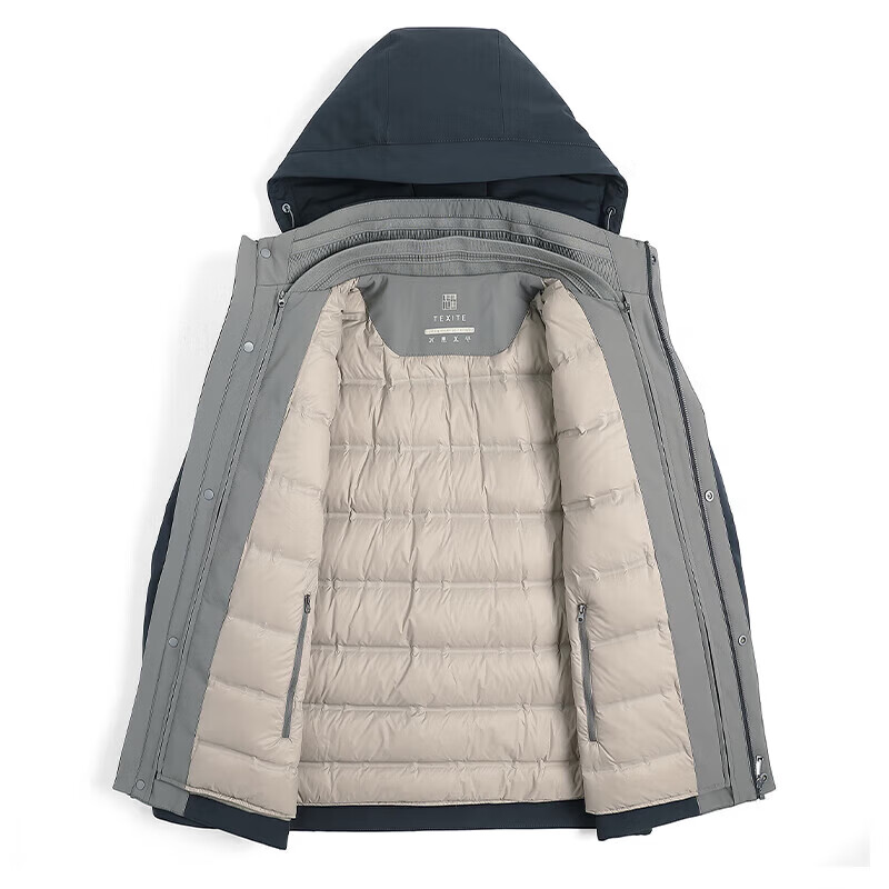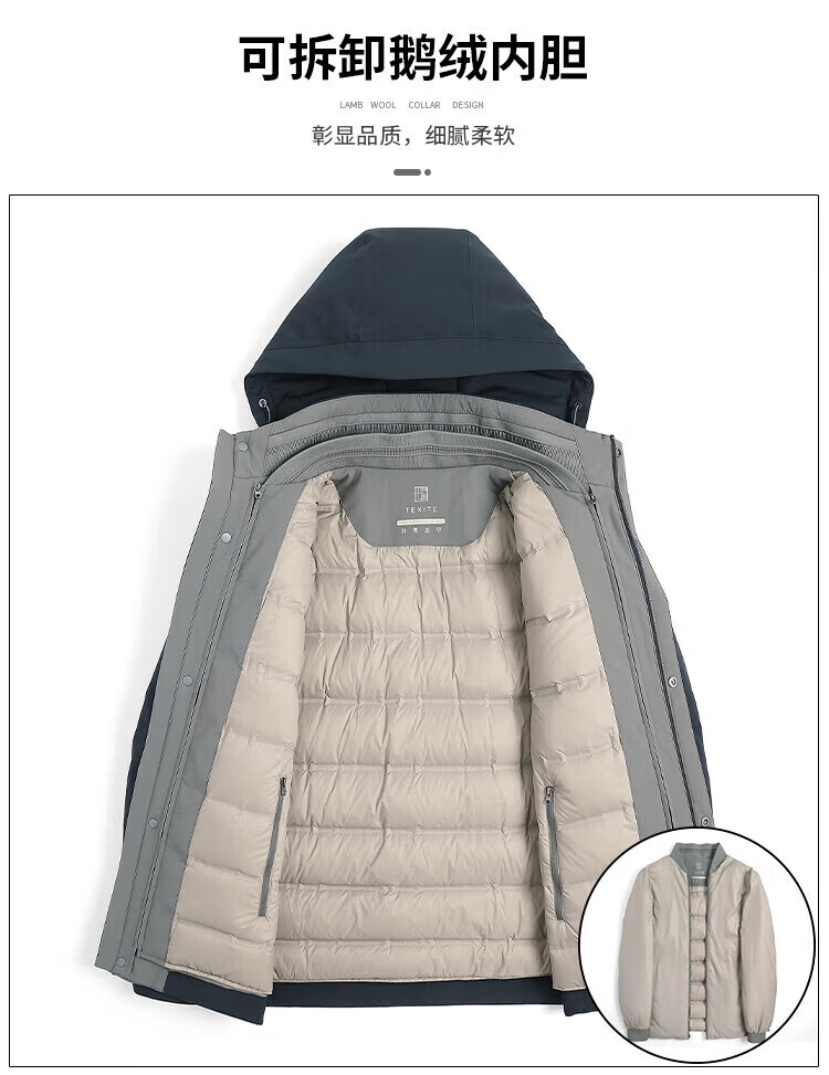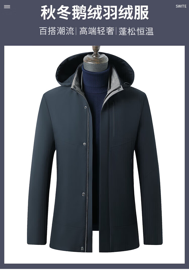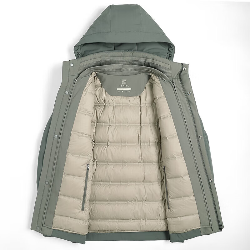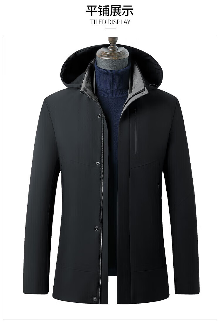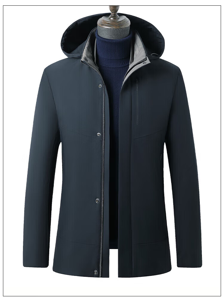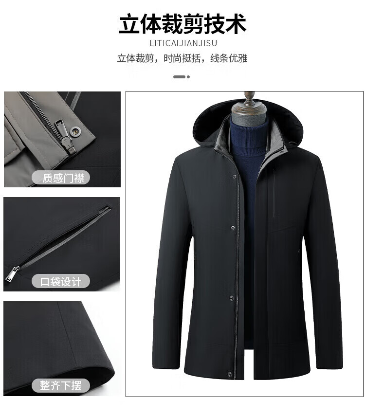 利郎(LILANZ)鹅绒羽绒服男士连帽中长款商务休闲冬季新款加厚爸爸冬装外套 灰绿 M 170