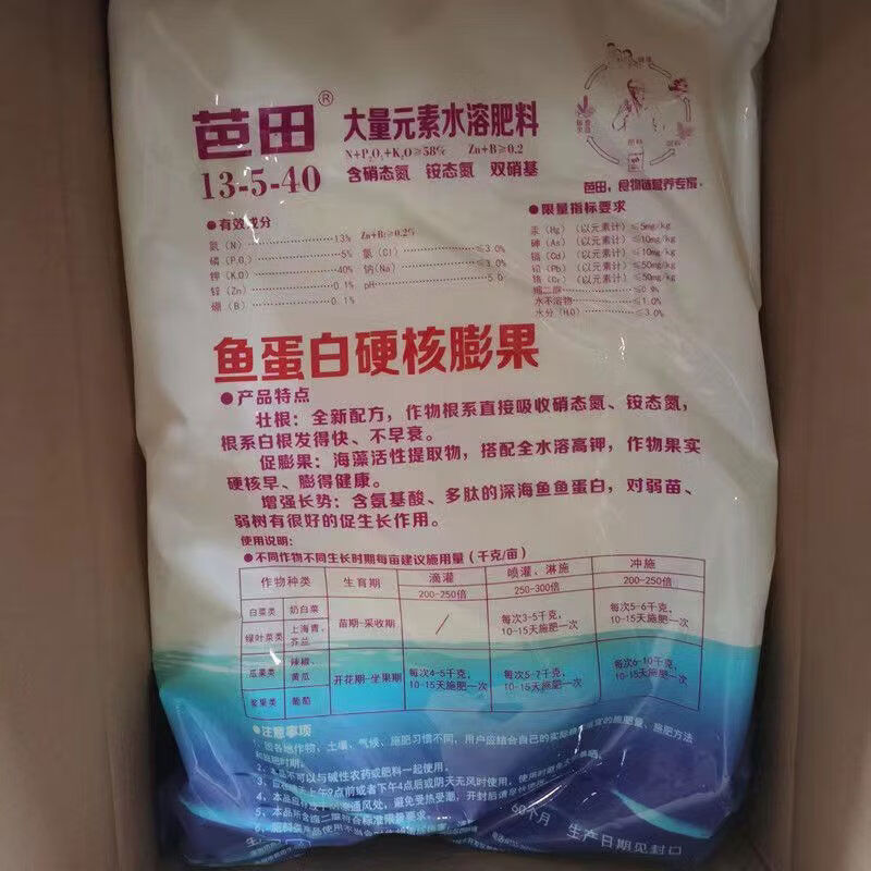 Batian fish protein, large amount of elements, water-soluble fertilizer, fertilized fruit tree root fertilizer, fruit expanding fertilizer, balanced high phosphorus and high potassium fertilizer, high potassium 13-5-40, 2 bags x 10kg per box